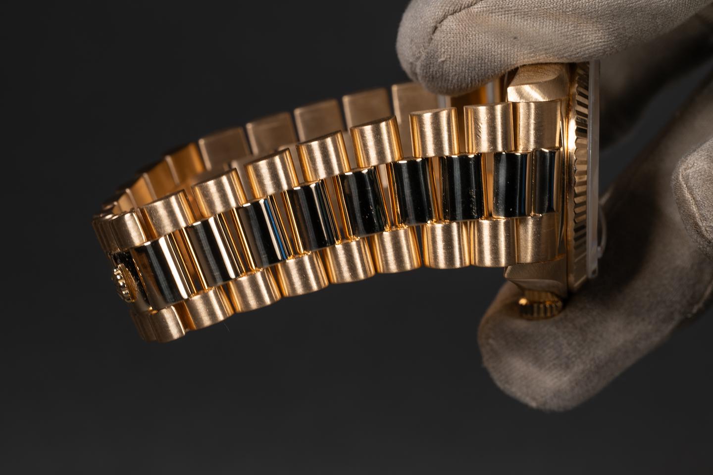 Bracelet: The 22-link 18K yellow gold President bezel is also in excellent condition, showing only very light stretch for its age.