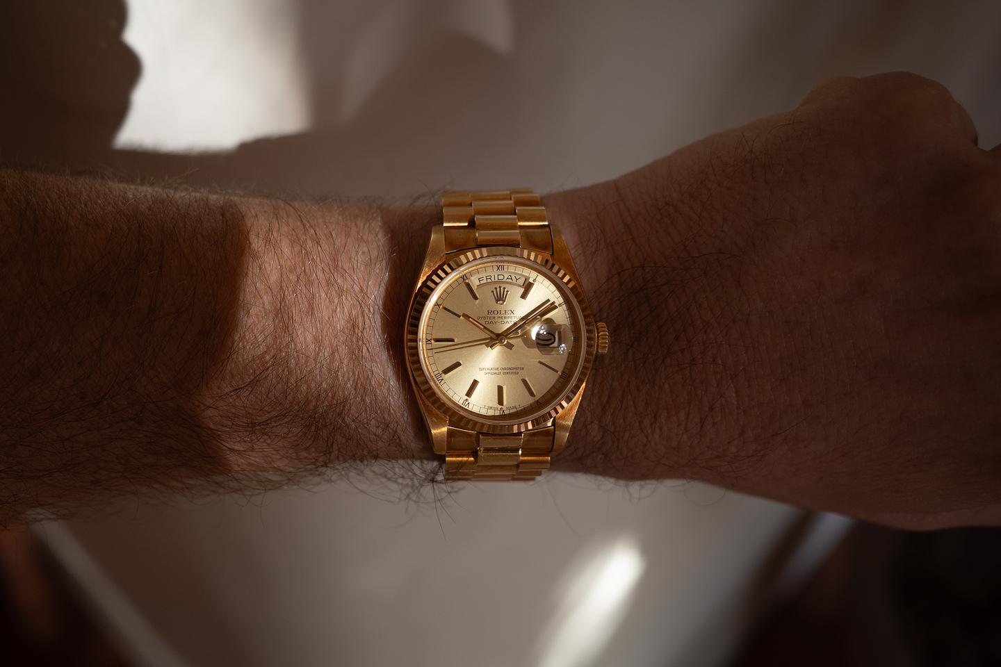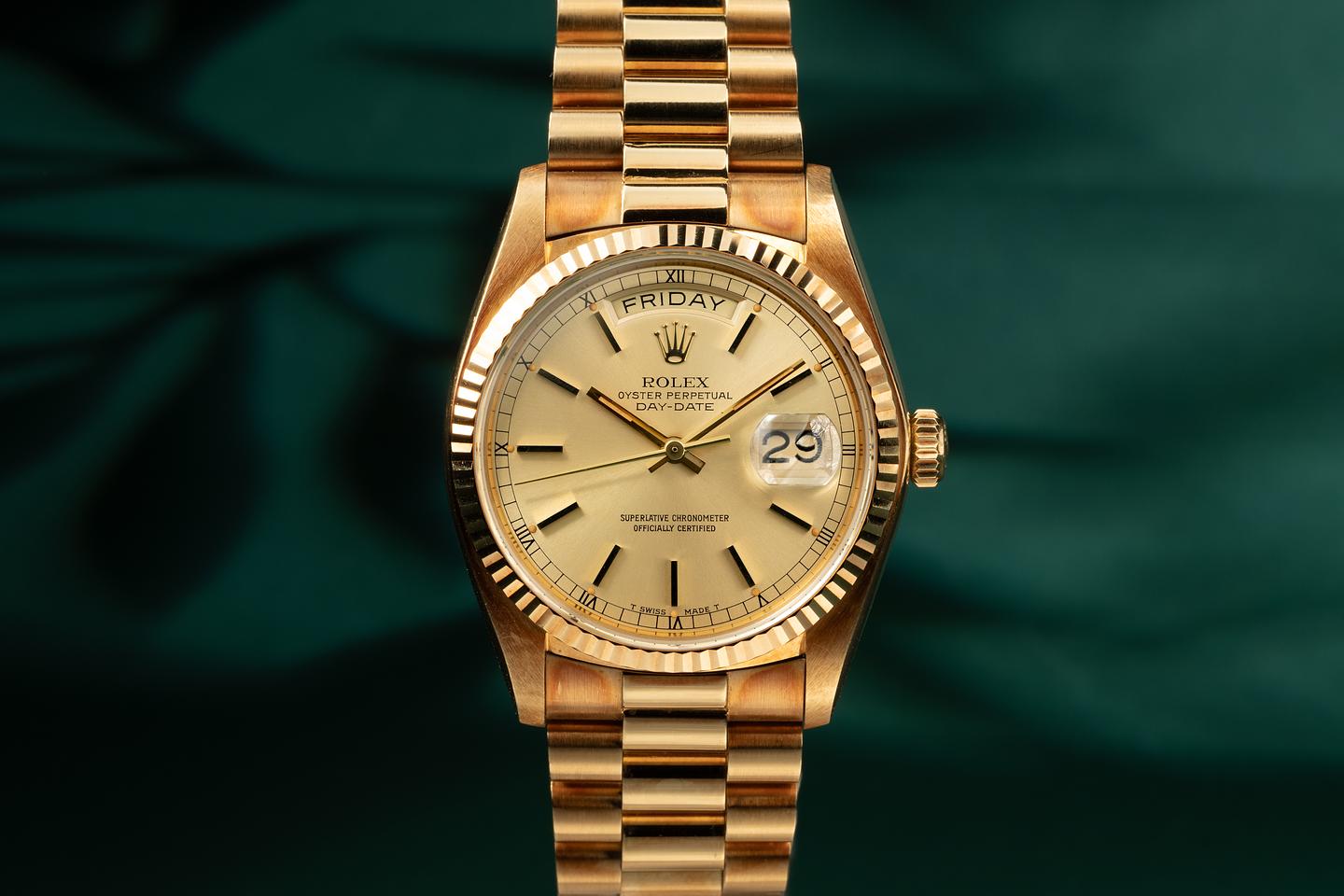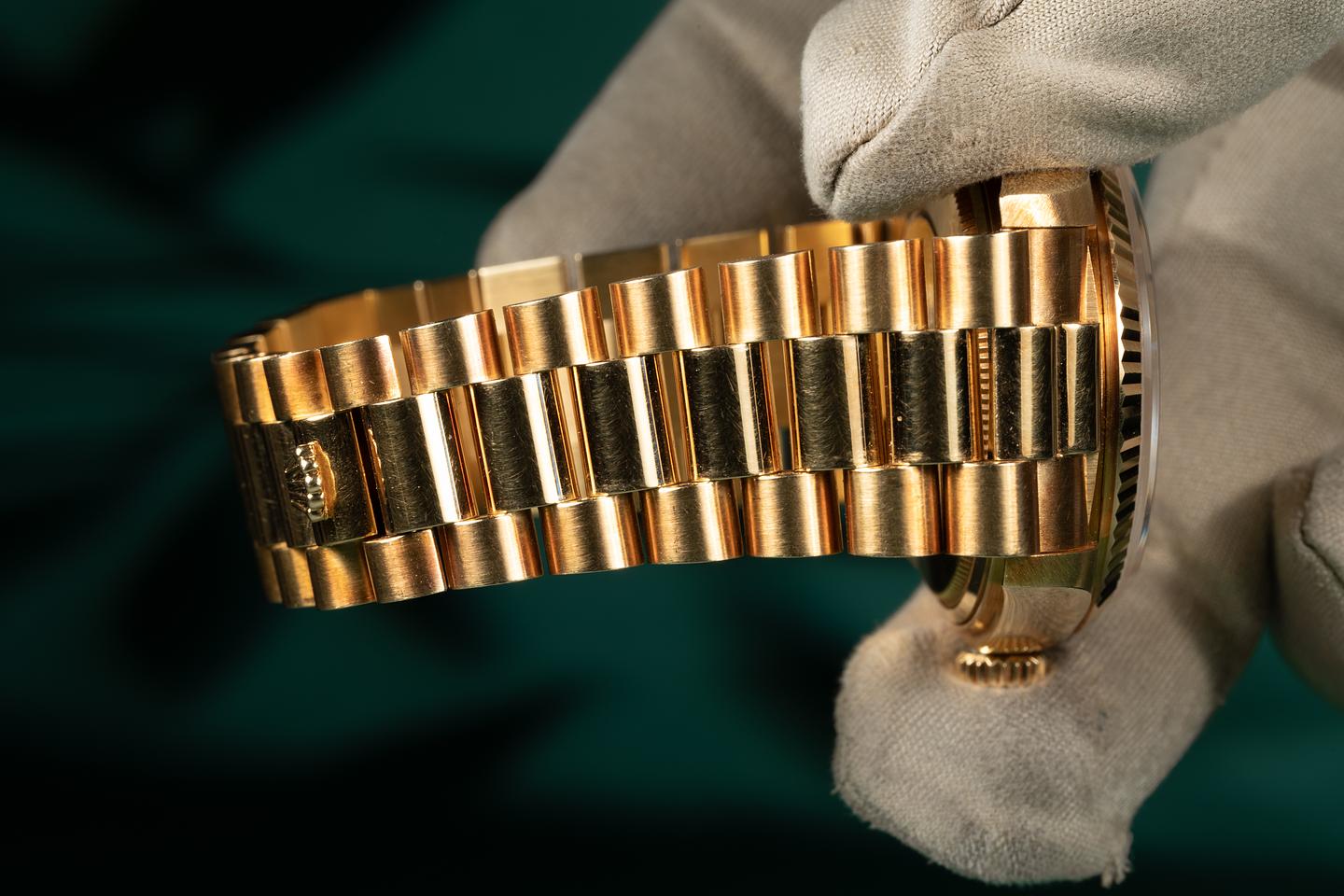 Bracelet: The 21 link 18K yellow gold President bracelet is excellent showing a warm rosy patina that matches the case and bezel. The bracelet shows only very light stretch for its age. The clasp is stamped with a matching 1979 date code.