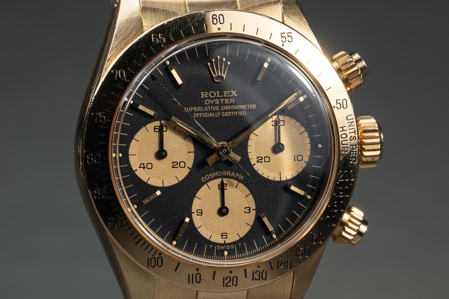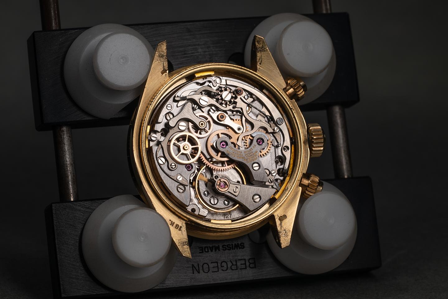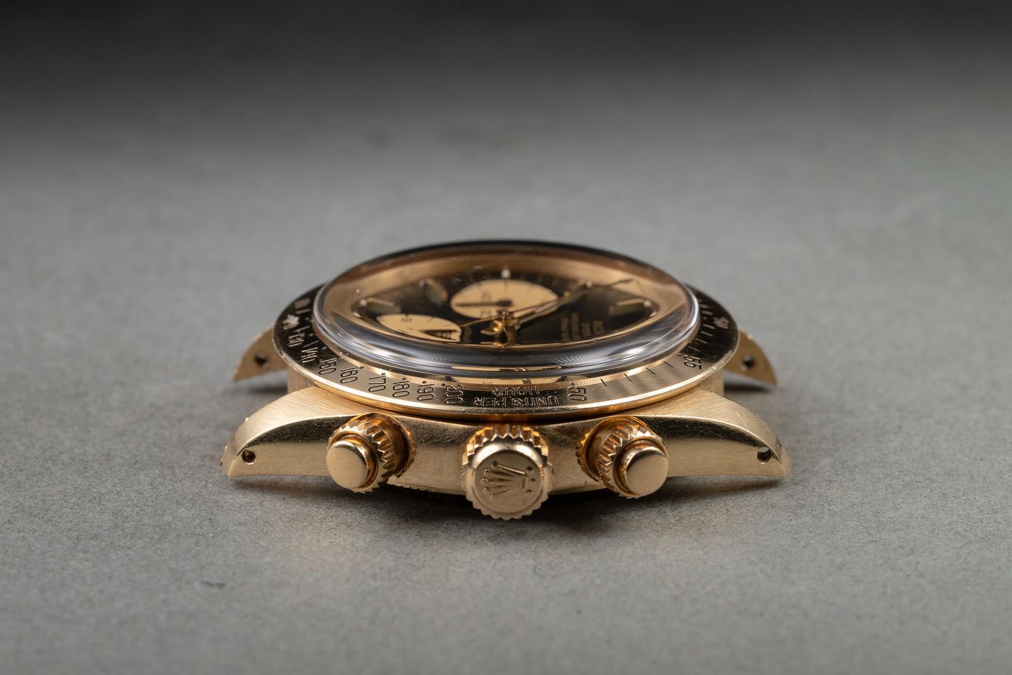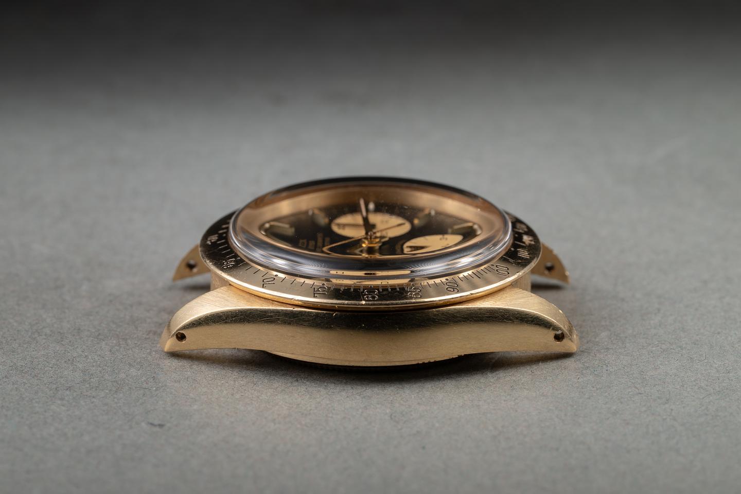 Case: The unpolished 18K yellow gold case is excellent, showing only very light wear to the visible portions of the case. There is some springbar wear on the back side of the lugs. The 18K yellow gold bezel is also in excellent showing only light wear from use.