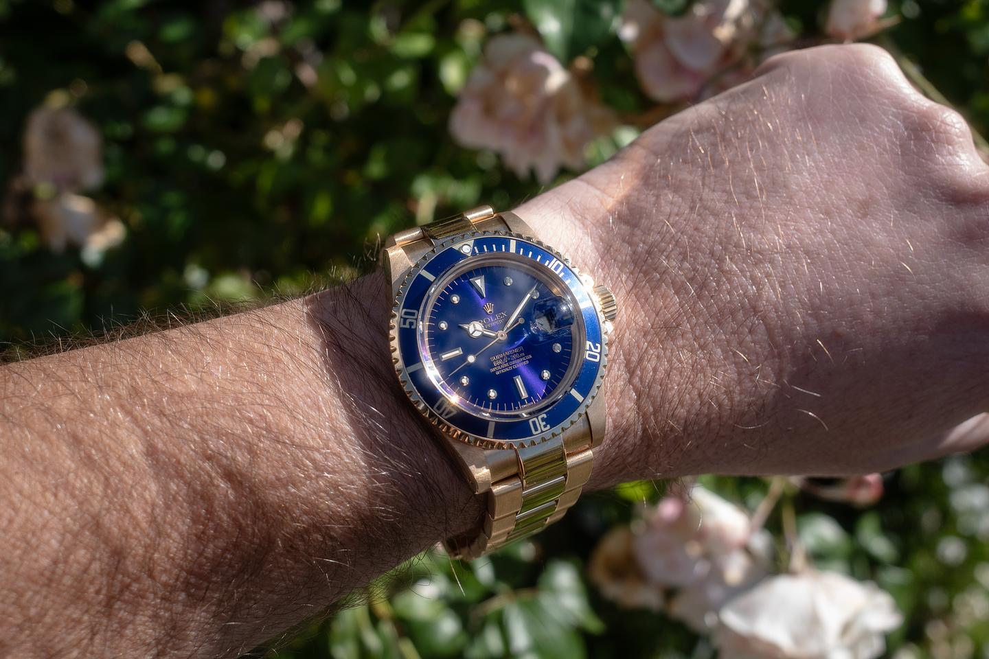 Case: The case has just returned from polishing, showing sharp, prominent bevels. The blue bezel insert is also in excellent condition, showing only light wear from use.