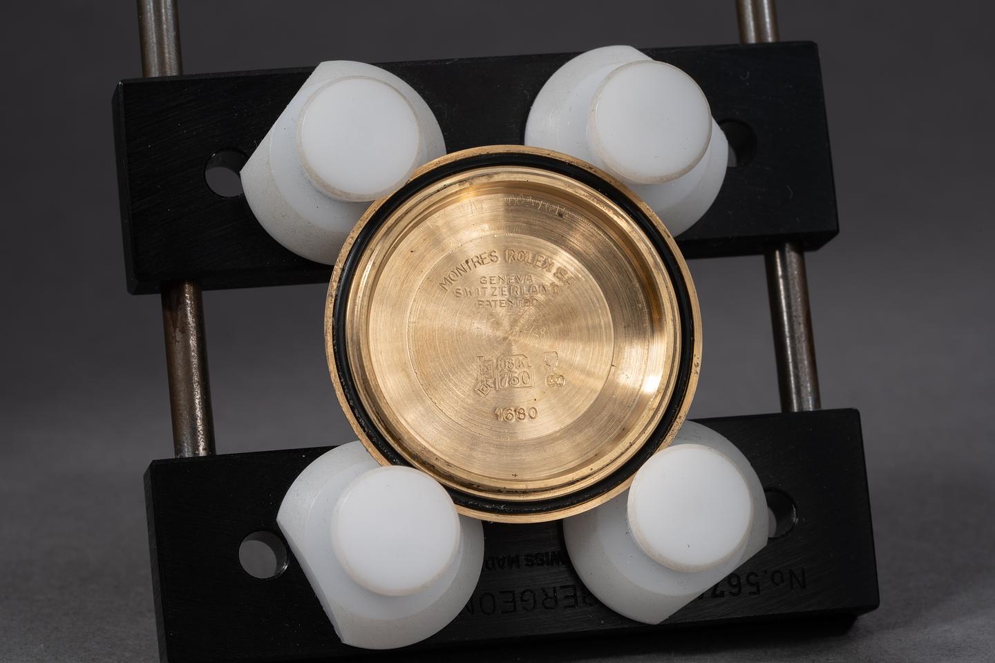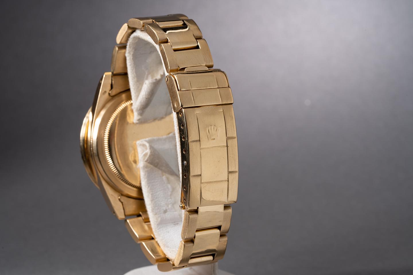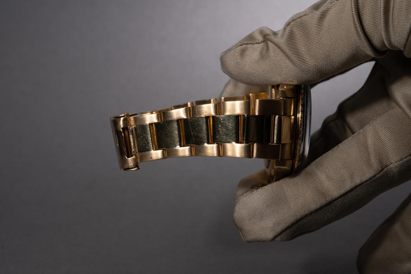 Bracelet: The 11 link 18k yellow gold Oyster bracelet is excellent showing average stretch for its age. The clasp