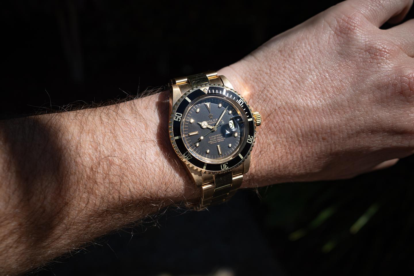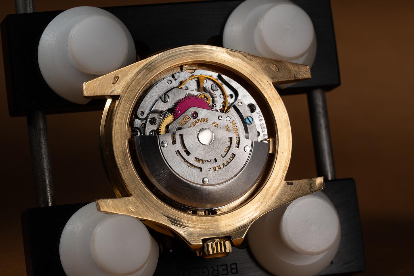 Case: The thick and even case is excellent showing sharp prominent bevels and only light wear from use. The black bezel insert is also in excellent condition showing only light wear from use.