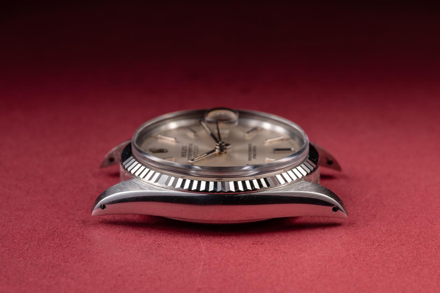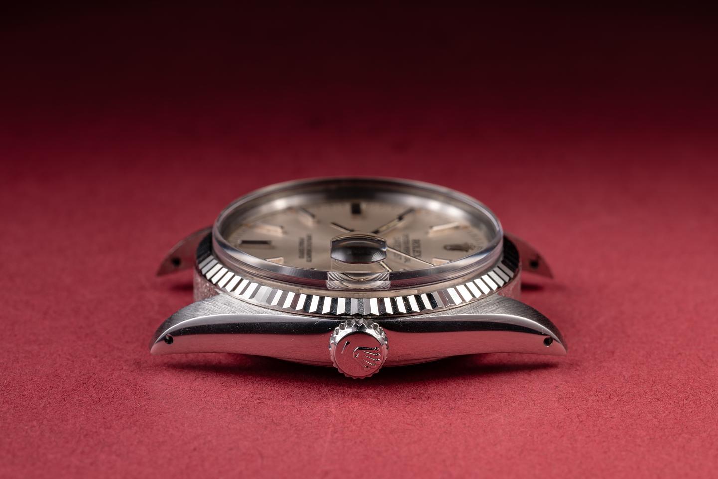 Case: The sharp 36mm case is excellent, showing only light wear from use. The sharp 18K white gold fluted bezel is also in excellent condition, showing only light wear from use.