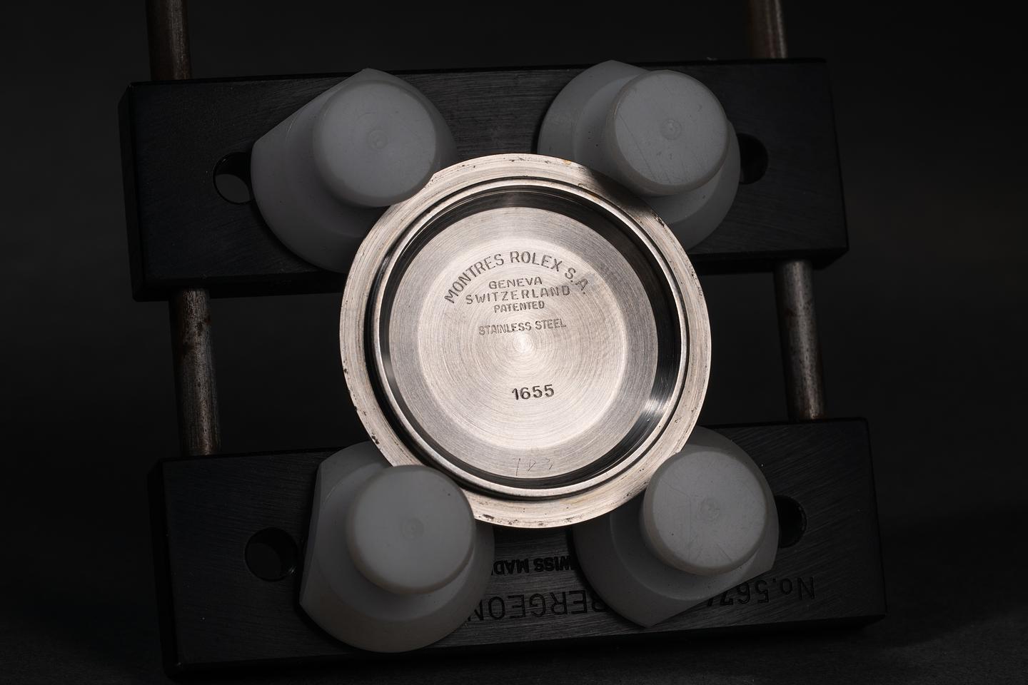 Case: The previously polished case is excellent, showing prominent bevels and only light wear from use. The stainless bezel is also in excellent condition, showing only light wear from use.