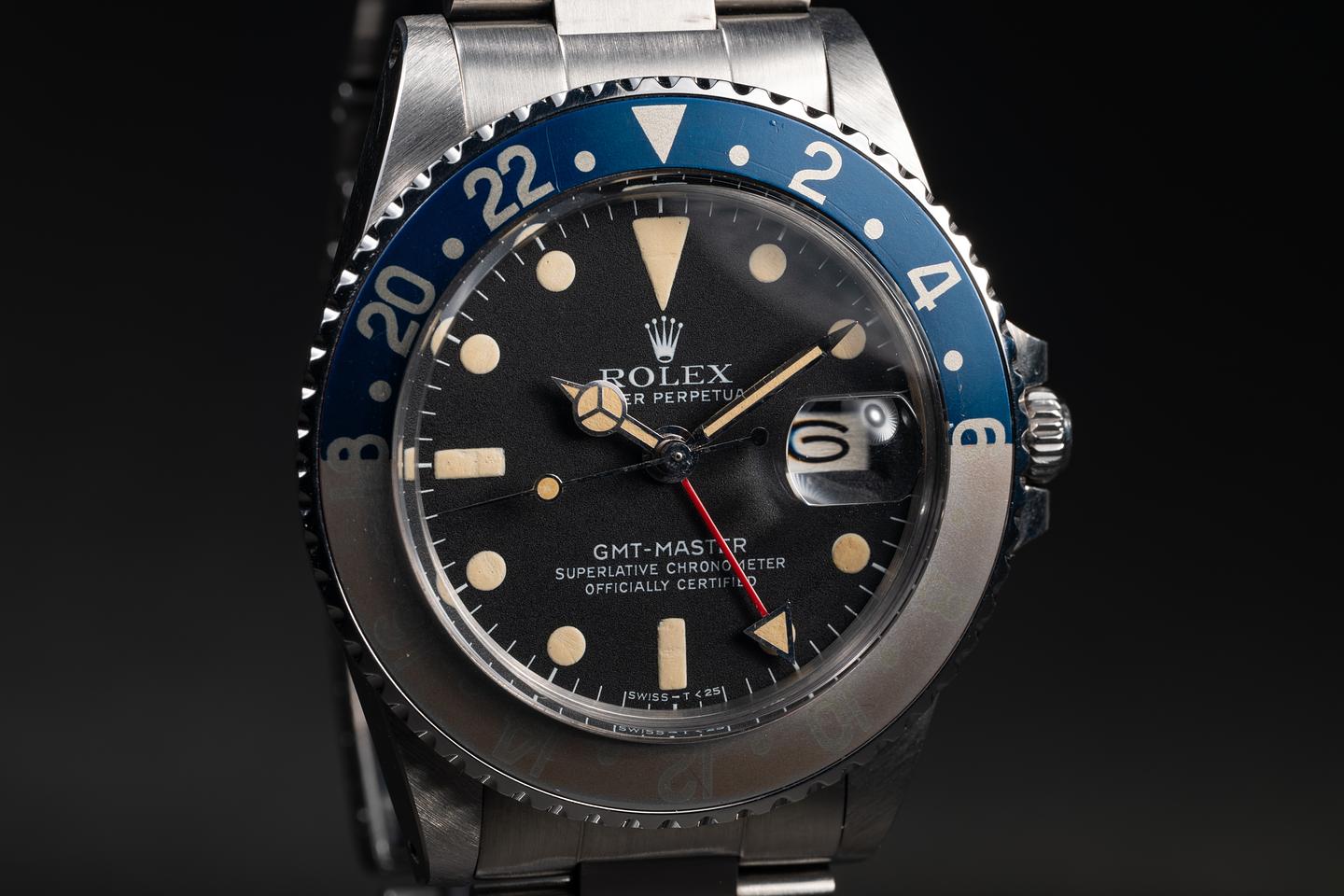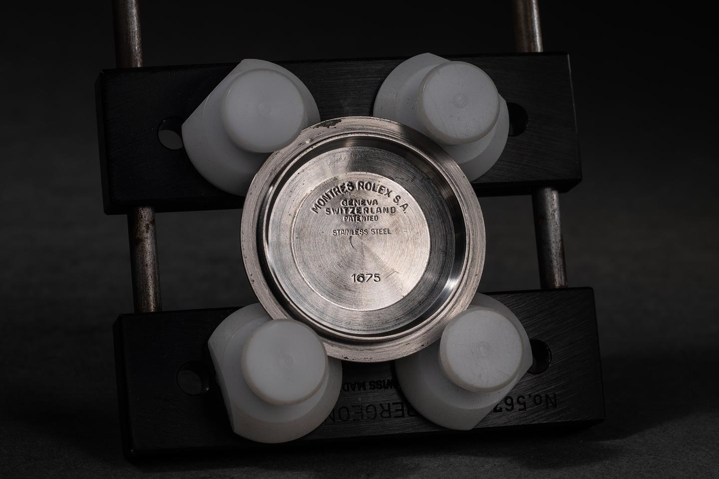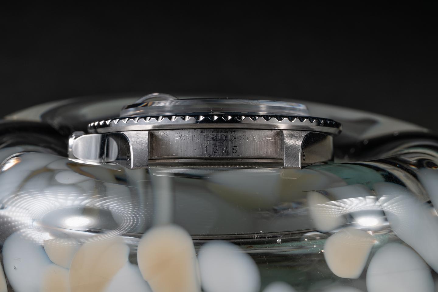 Case: The recently polished case is excellent, showing sharp, prominent bevels and only very light wear. The bezel insert is also in excellent condition, showing extensive fading to what was the red portion of the insert.
