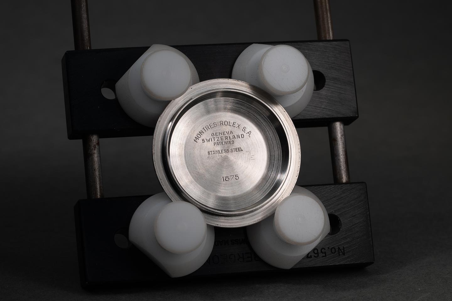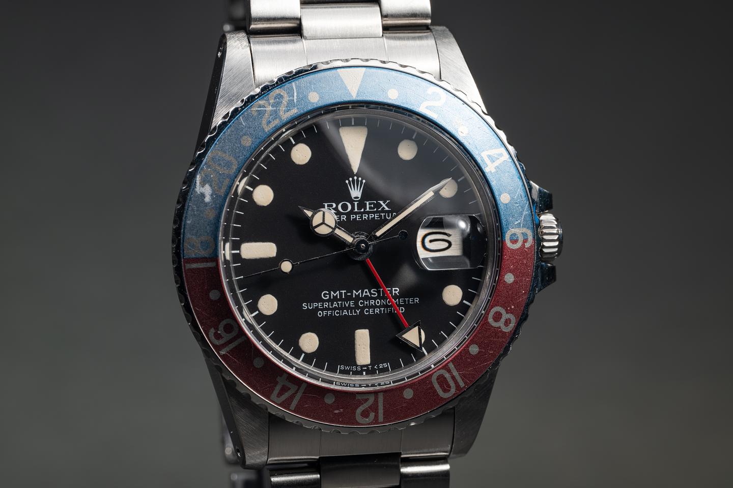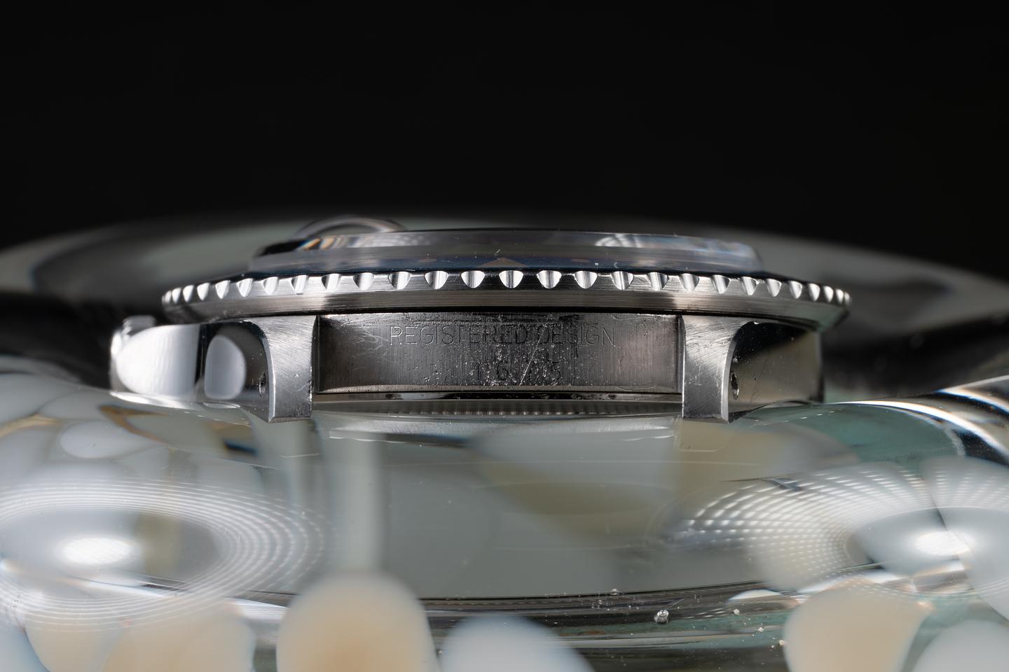 Case: The previously polished case is excellent, showing sharp, prominent bevels and only light wear from use. The blue and red "Pepsi" bezel insert is also in excellent condition, showing significant fading to both portions of the insert.