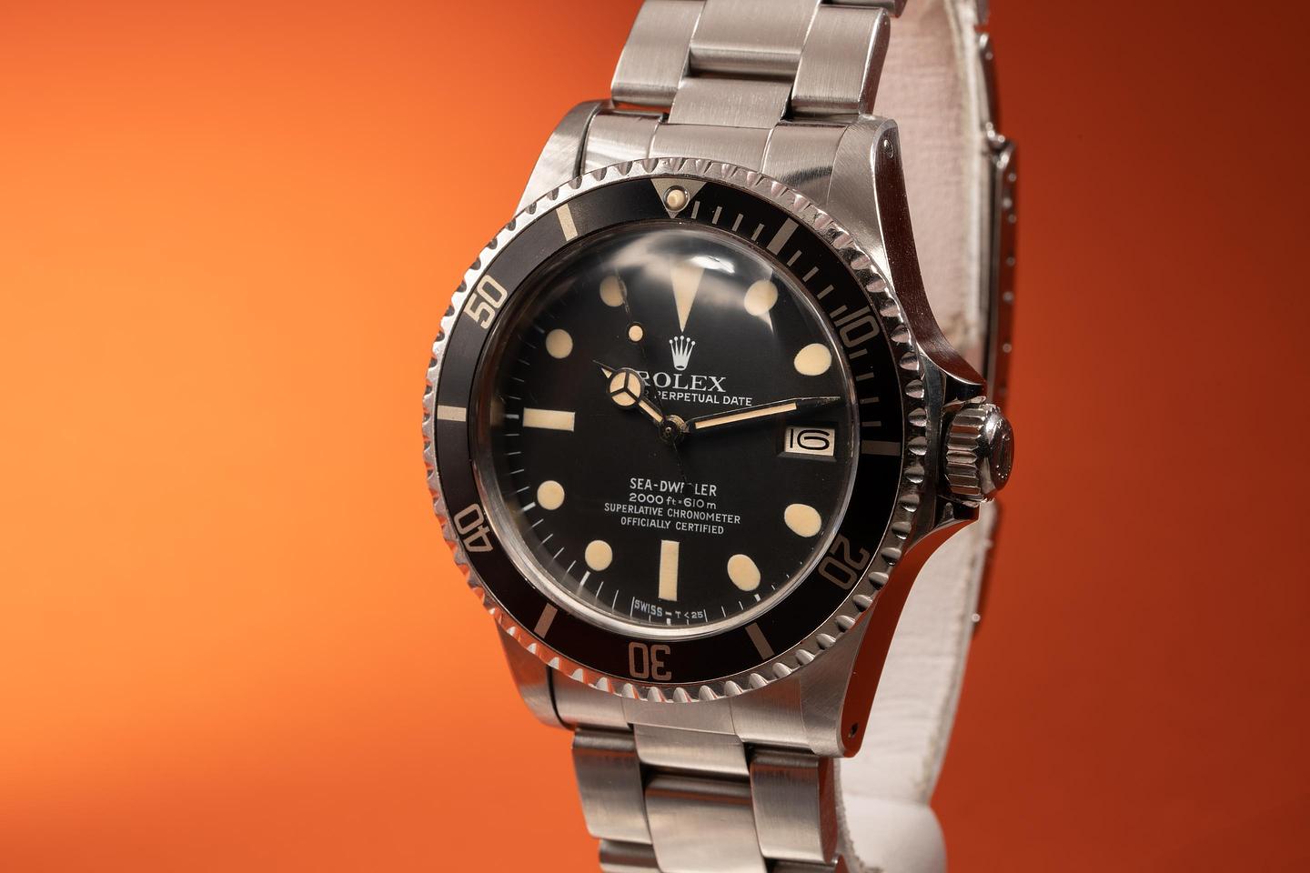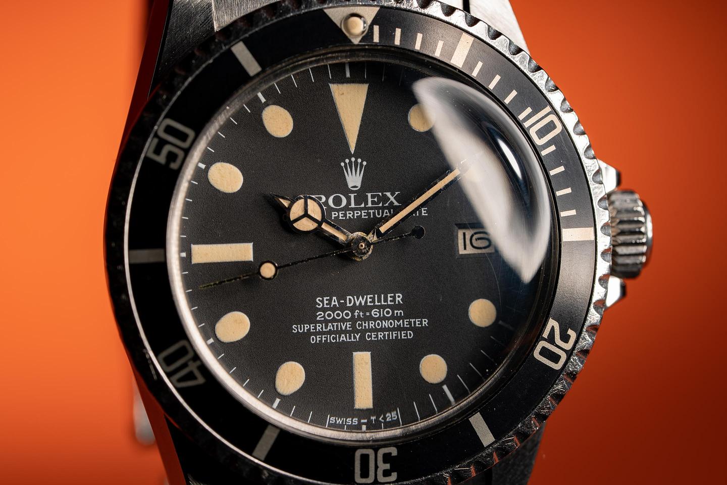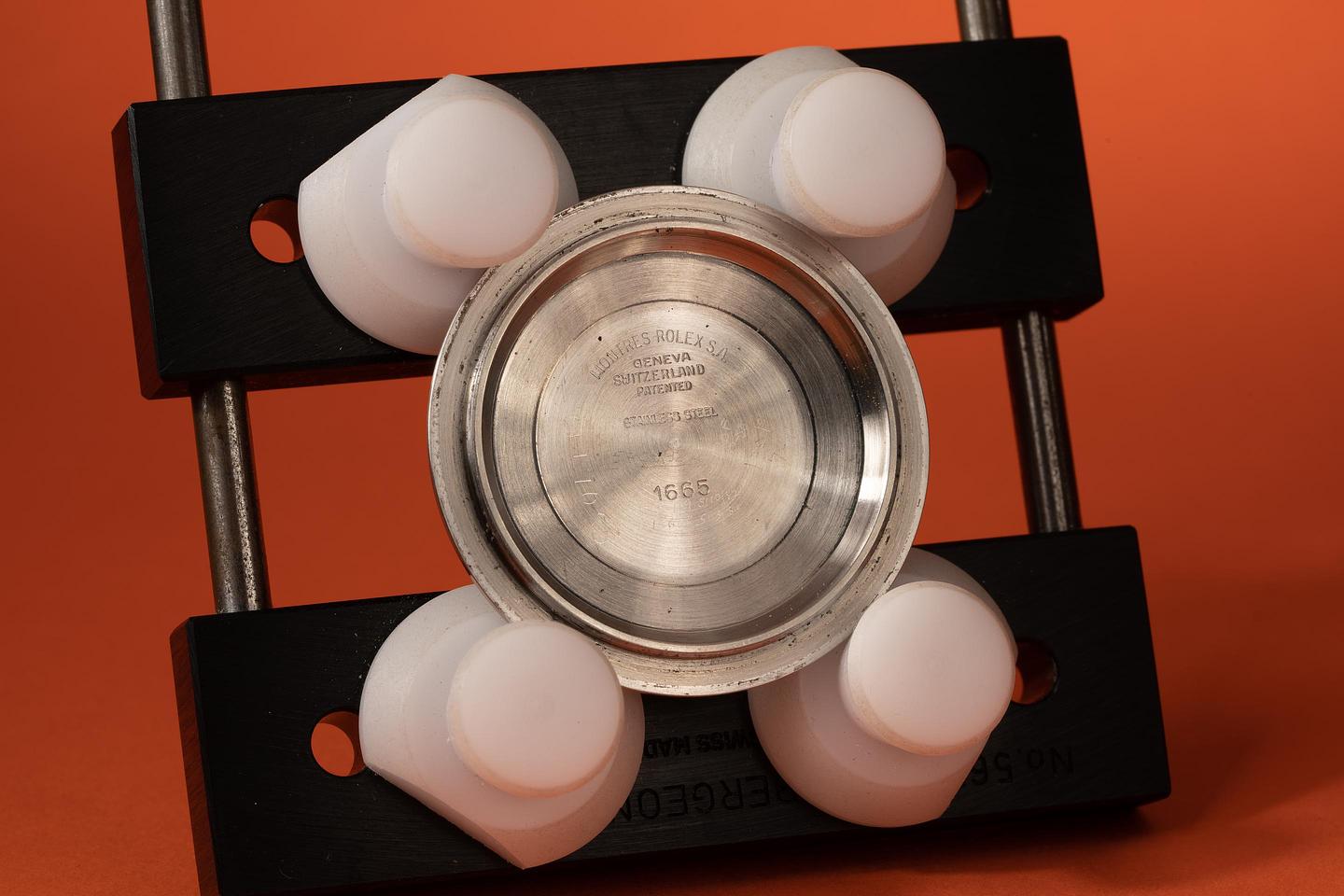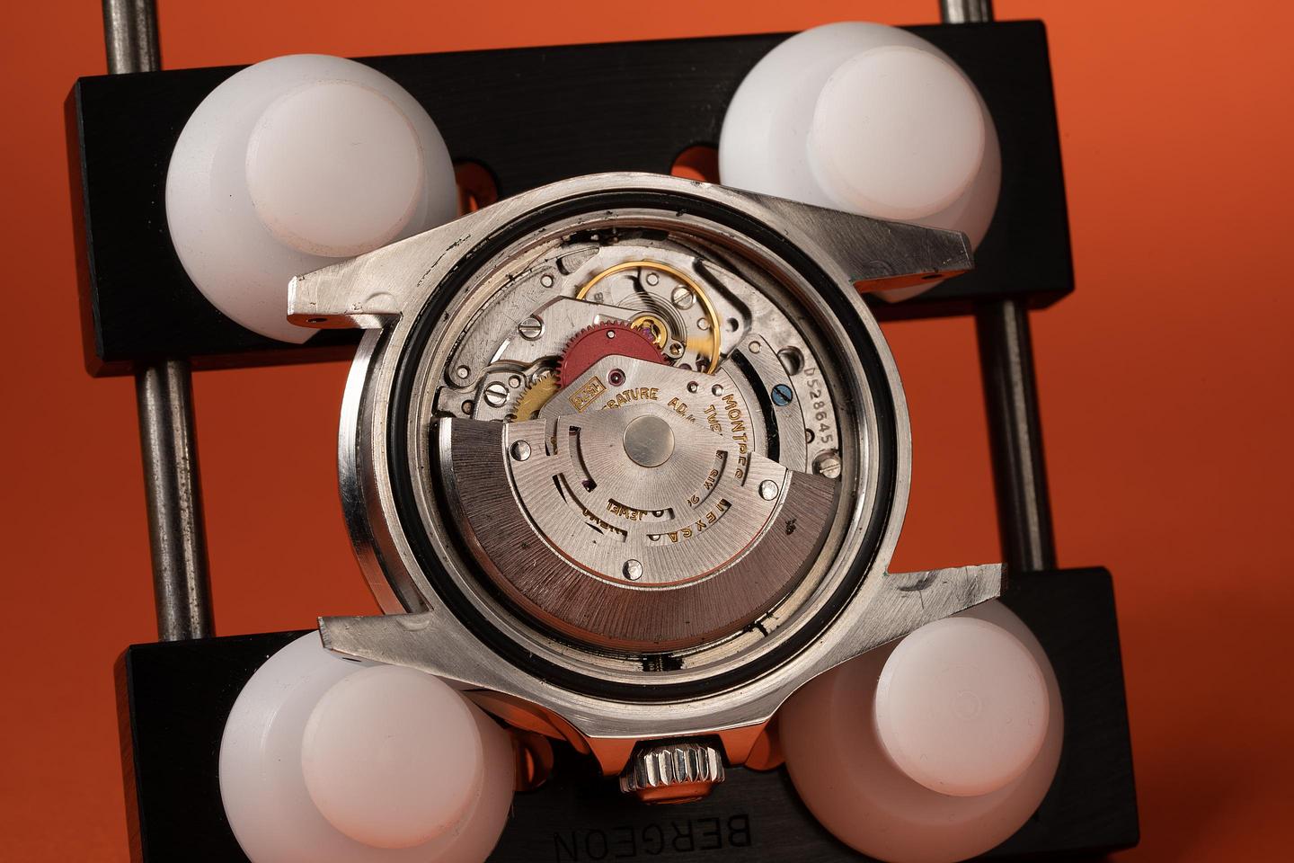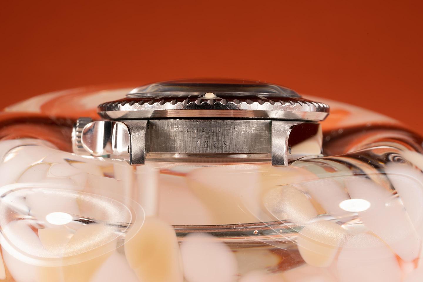 Case: The recently polished case is excellent featuring sharp and prominent bevels. The black bezel insert is also in excellent condition and has aged to a satin black finish.