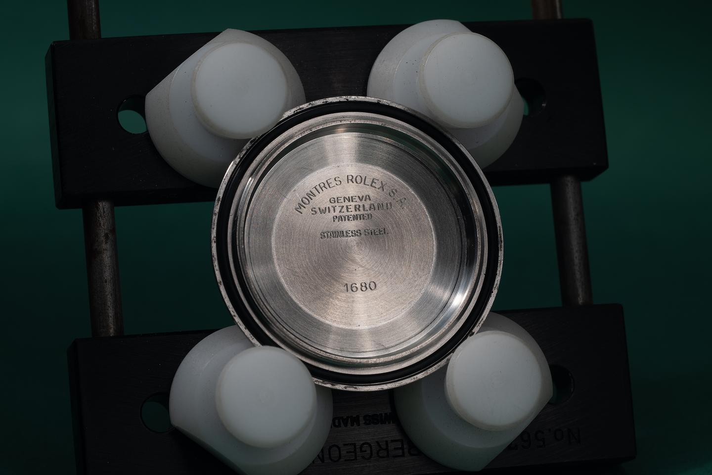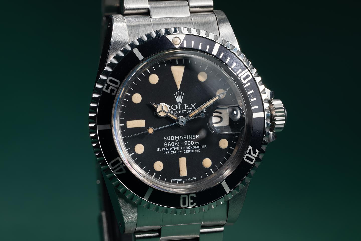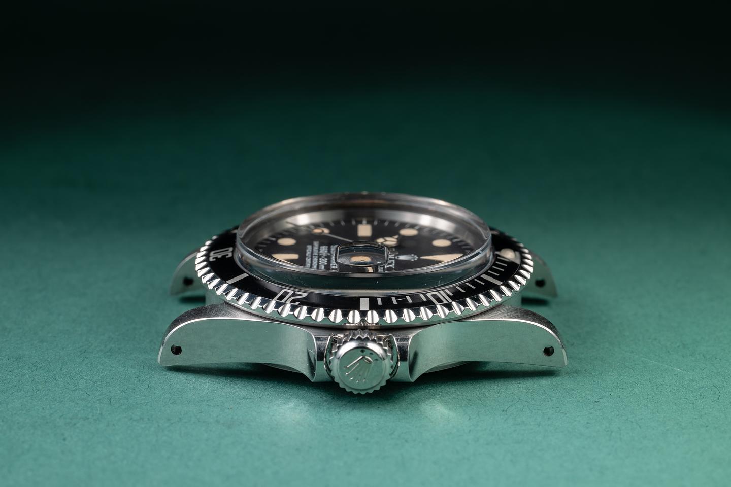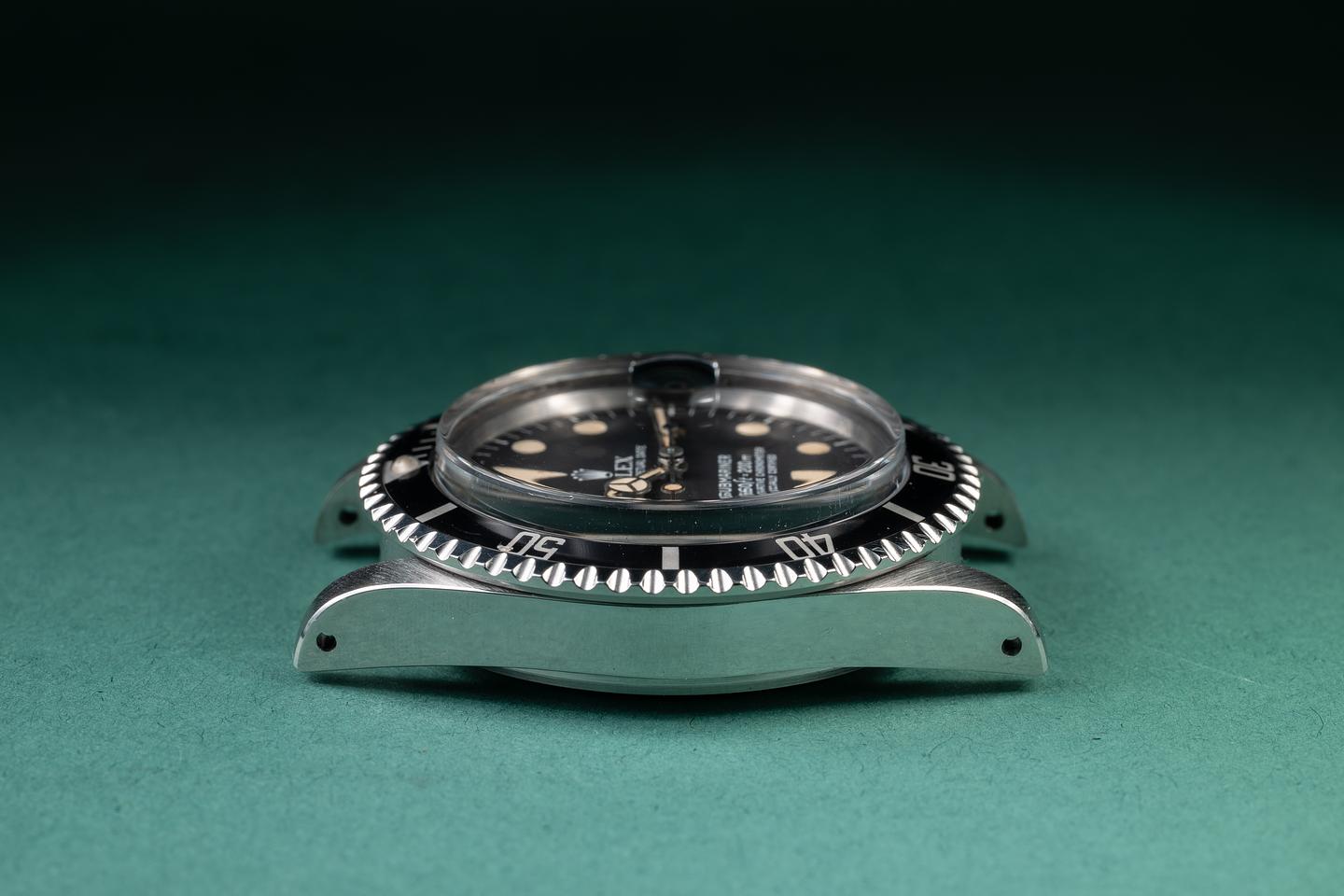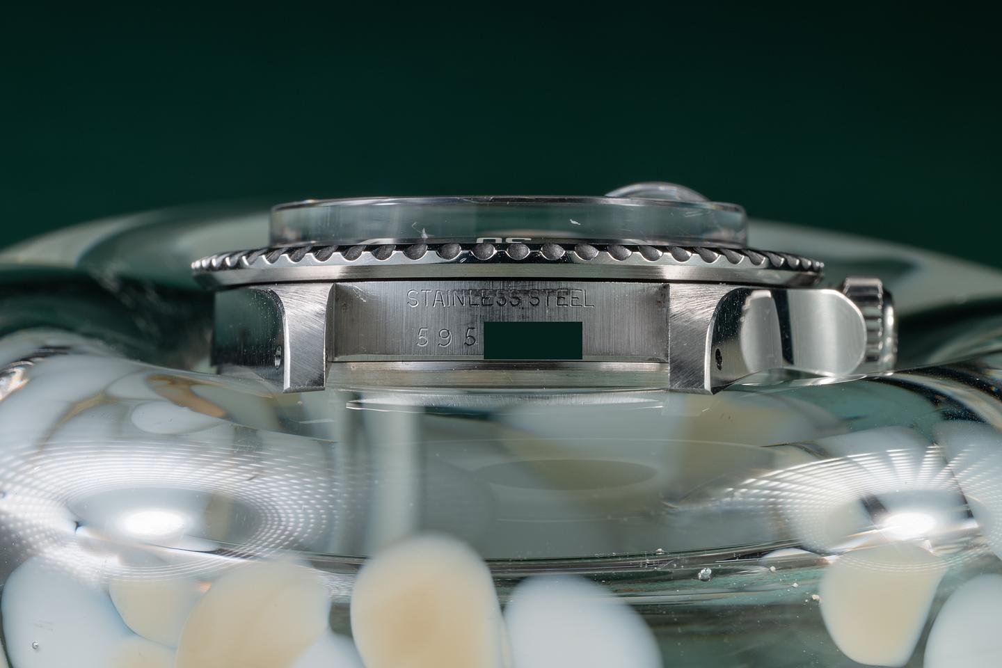 Case: The recently polished case is excellent, showing sharp, prominent bevels and only very light wear. The black bezel insert is also in excellent condition, showing only very light wear from use.
