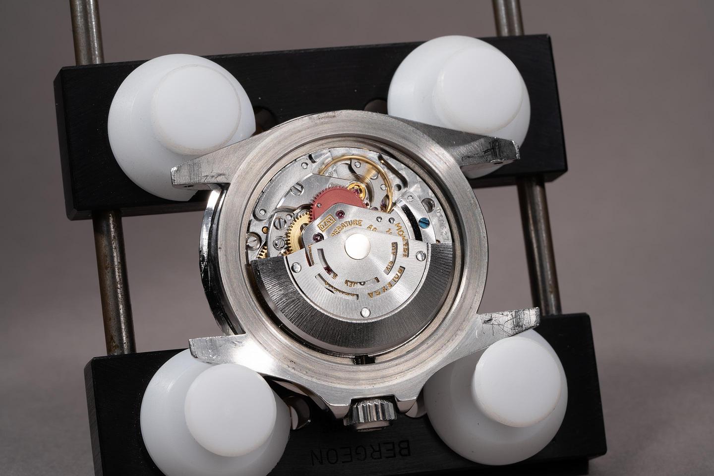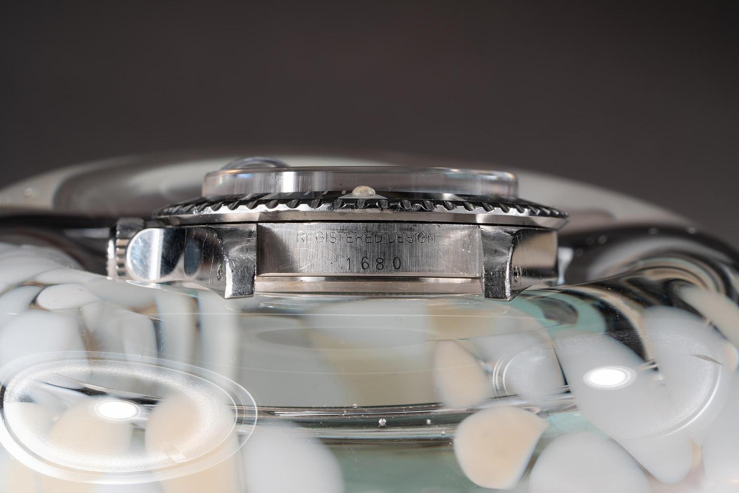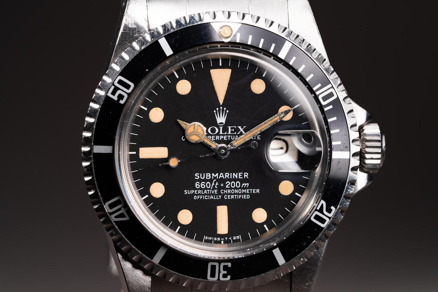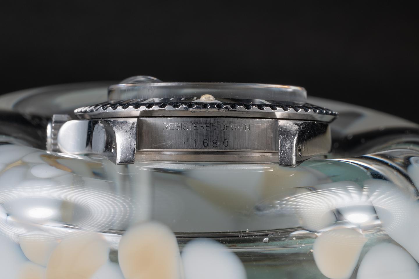 Case: The unpolished case is excellent showing thick prominent factory bevels and overall light wear from use. There is a small ding on the underside of the 7 o'clock lug. The black bezel insert is also in excellent condition showing only very light wear from use.