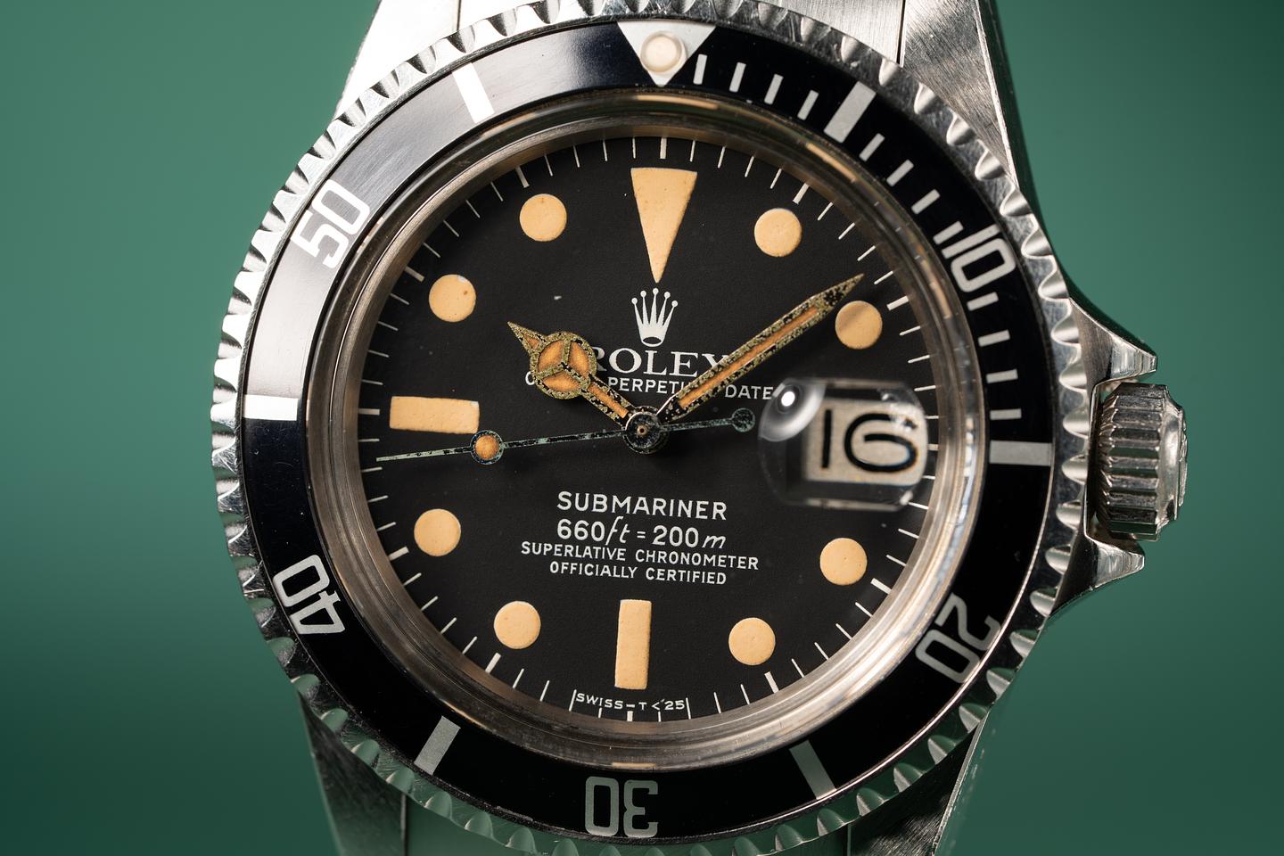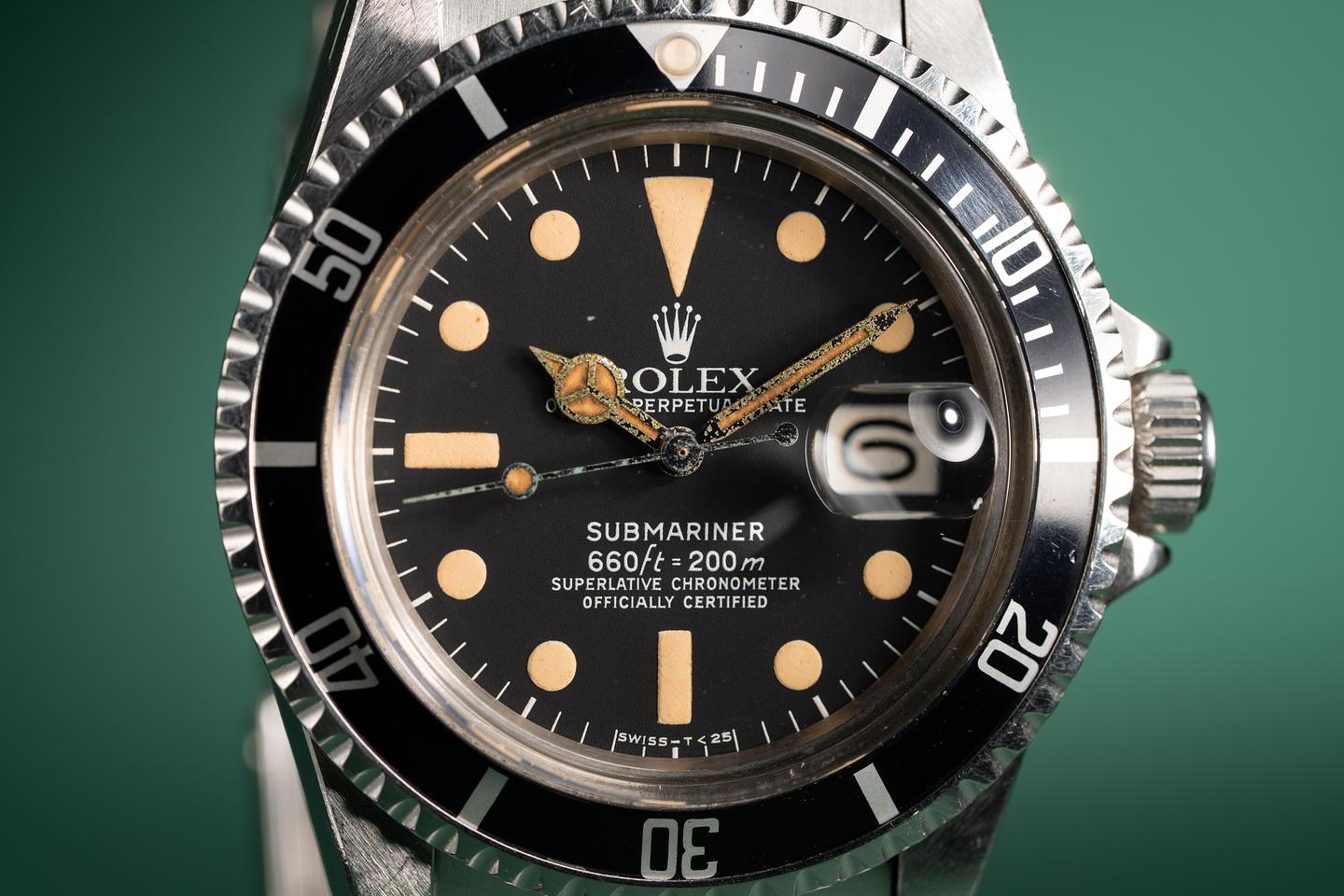 Dial: The matte black dial is excellent showing little if any signs of wear. The lume has aged to a pumpkin hue and the hands have aged several shades darker than the dial.