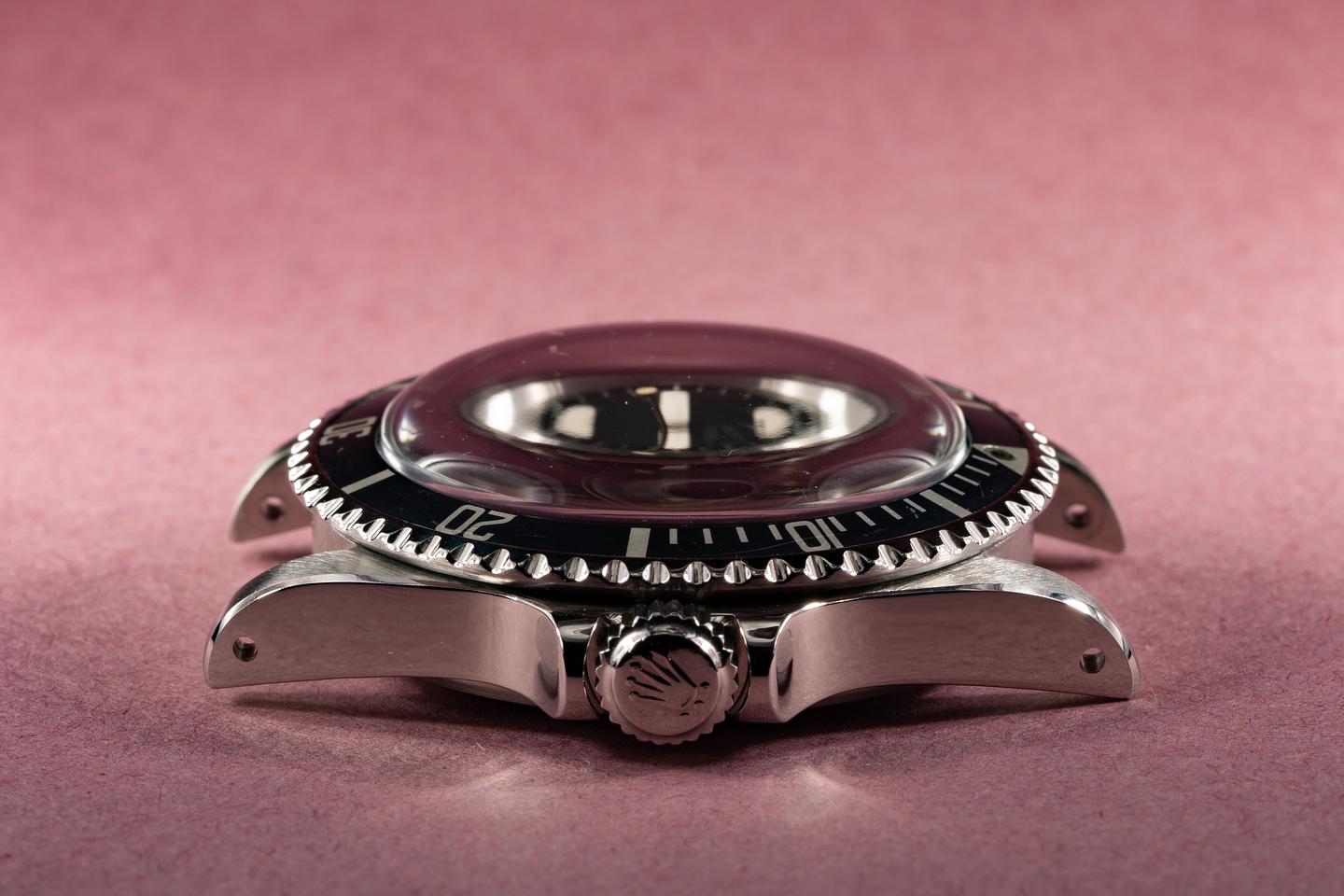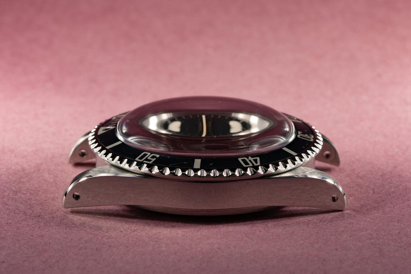 Case: Excellent case that has just returned from polishing with sharp prominent bevels. The bezel is fading to a glossy dark navy blue hue and shows some wear from use.
