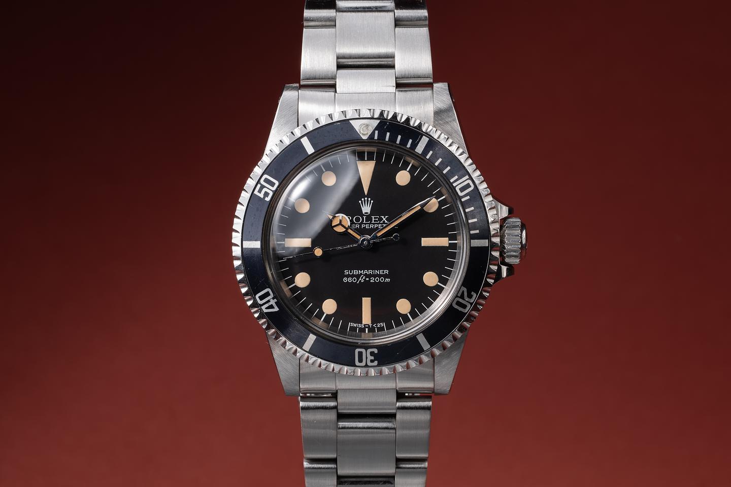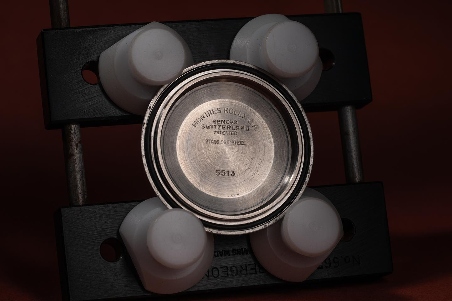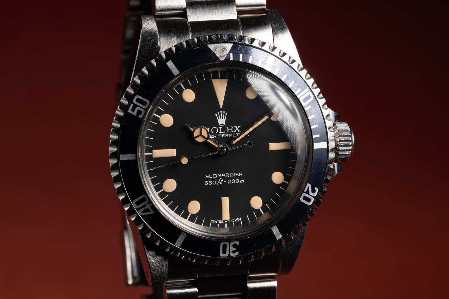 Case: The previously polished case is excellent, showing sharp, prominent bevels and only light wear from use. The bezel insert is also in excellent condition and has aged to a dark navy blue hue, showing only light wear from use.