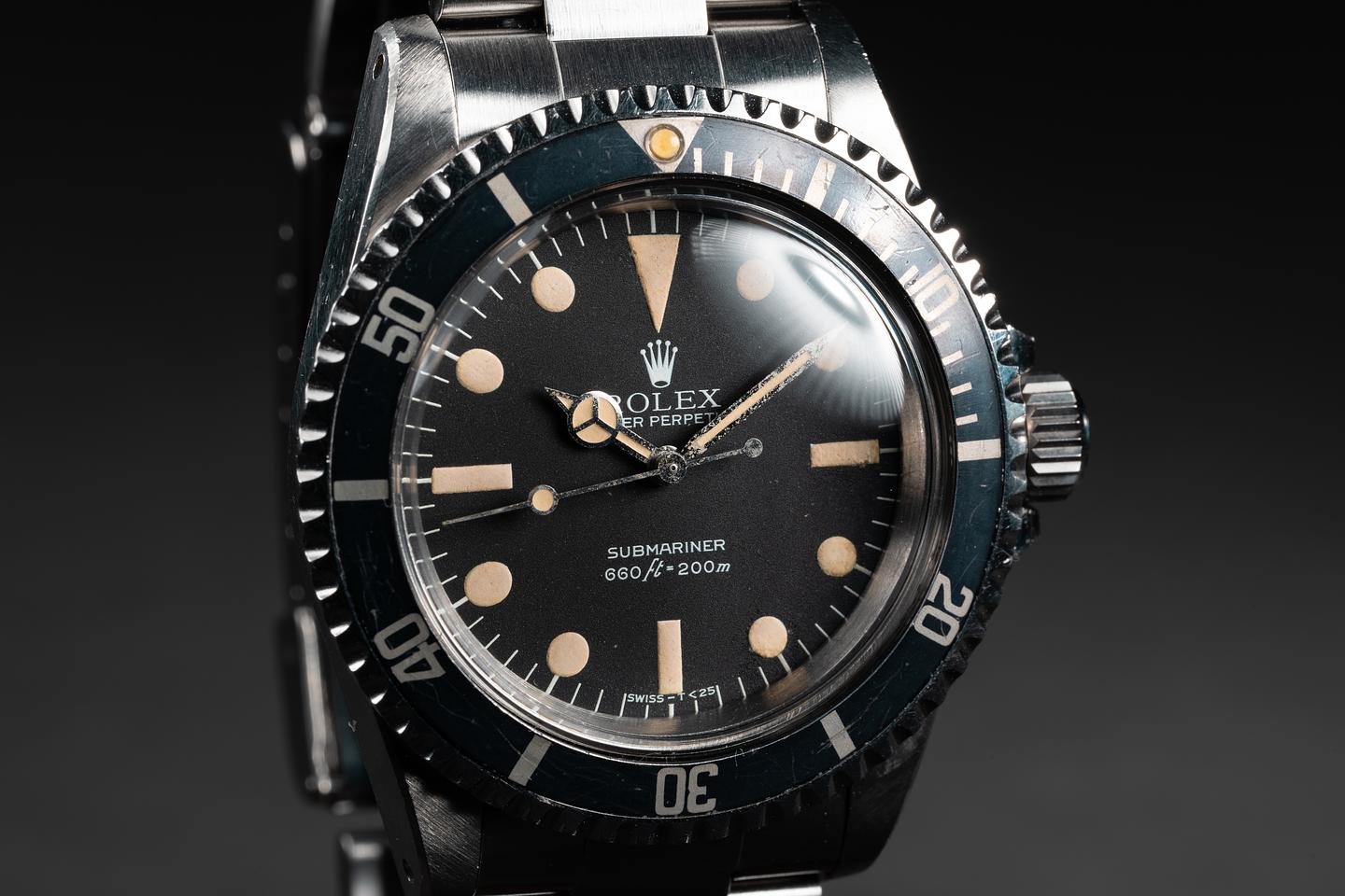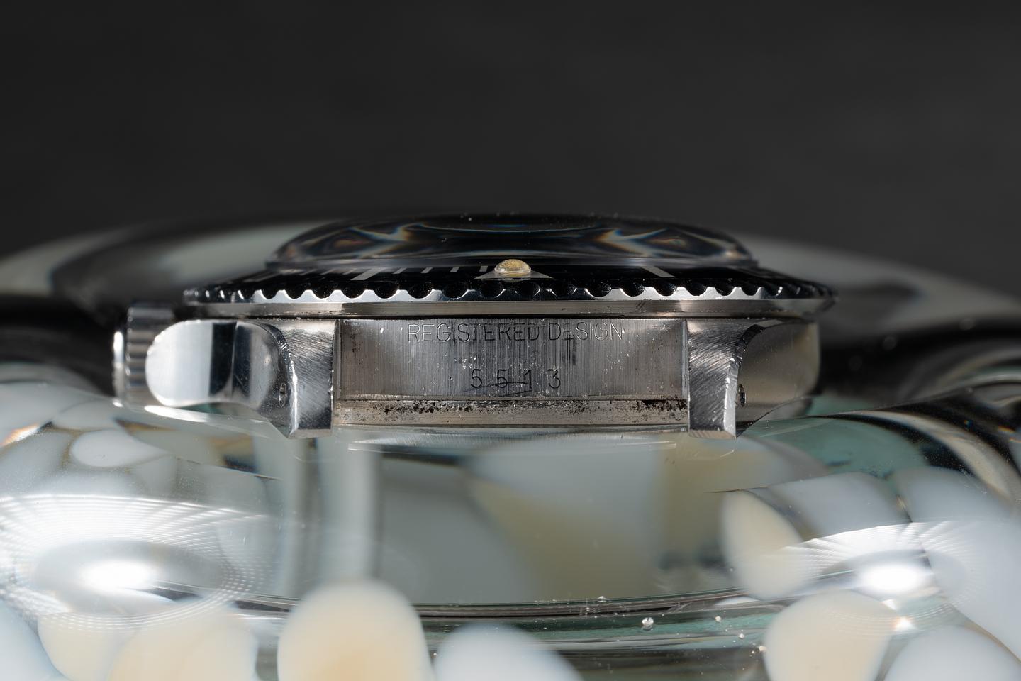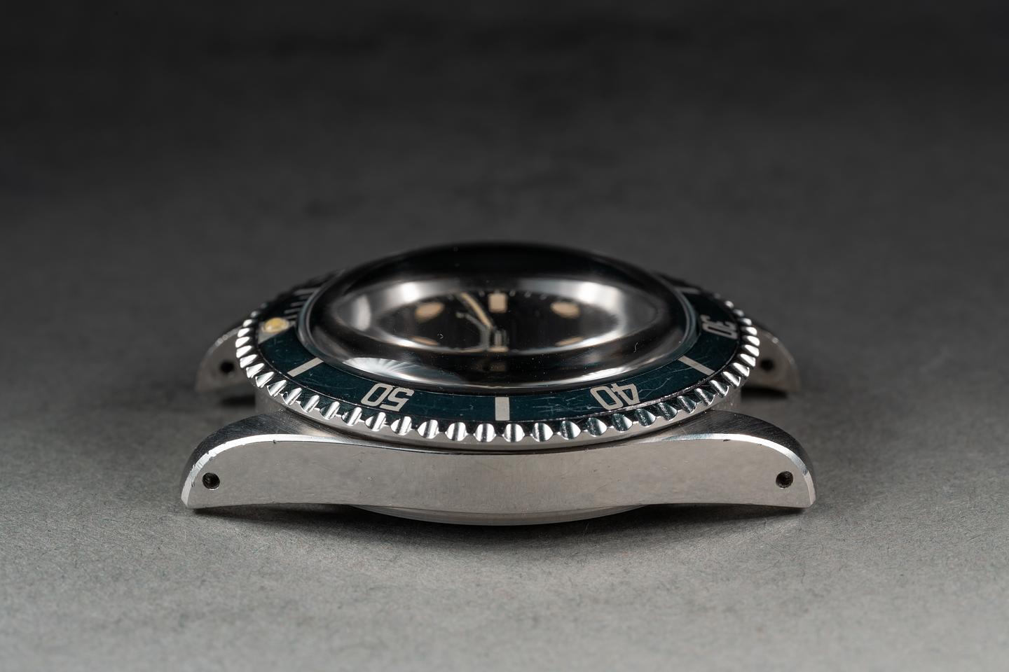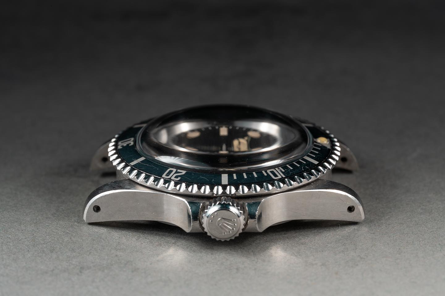 Case: The previously polished case is excellent showing wide sharp prominent bevels that closely resemble the factory profile. The case shows some light wear from use. The bezel insert is also in excellent condition and has aged to a blue hue showing some light wear from use.