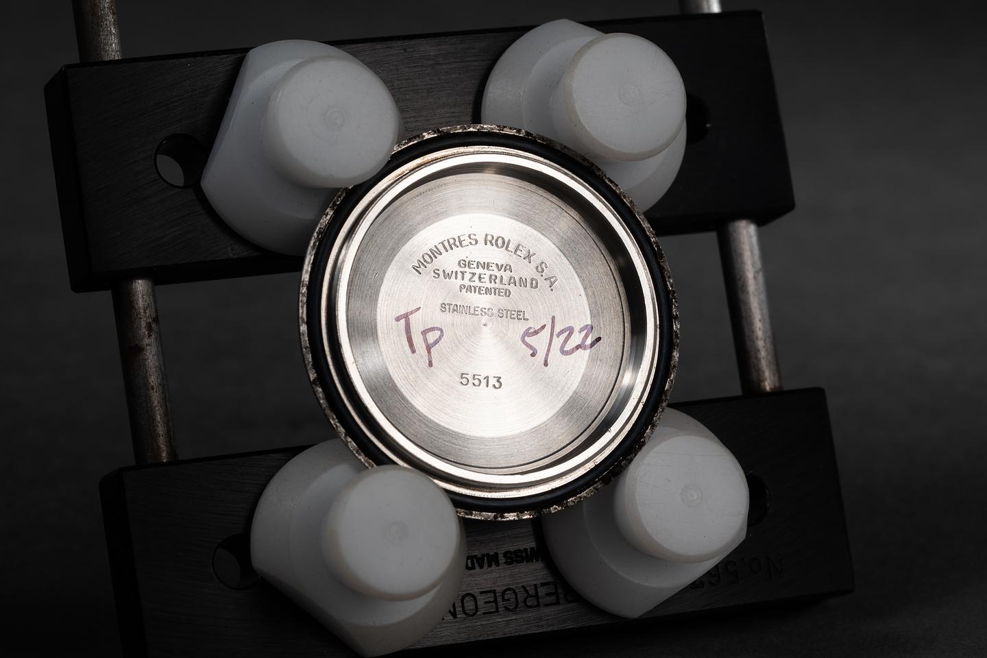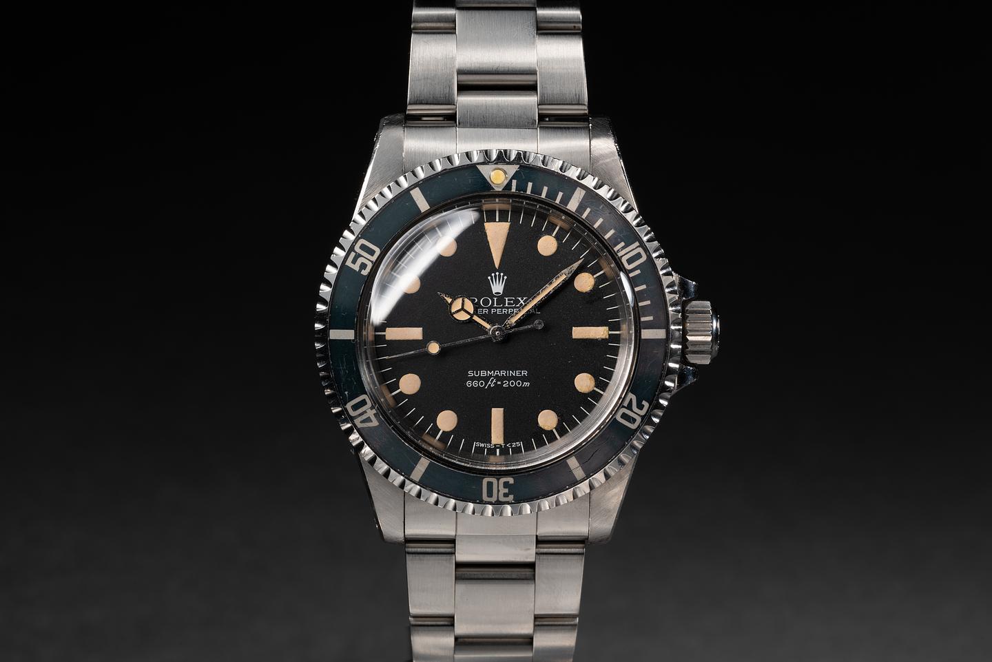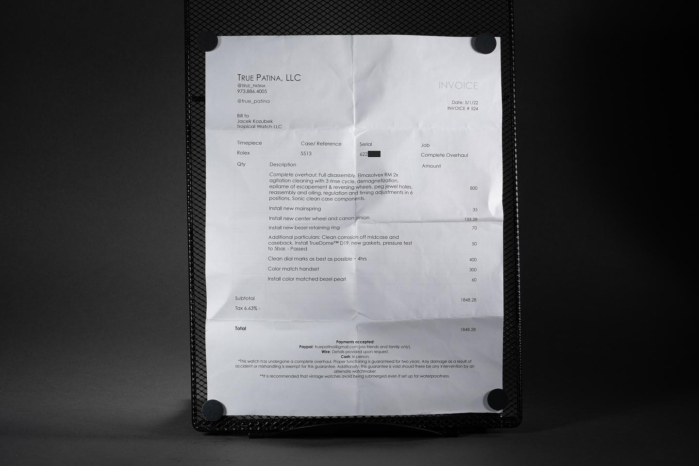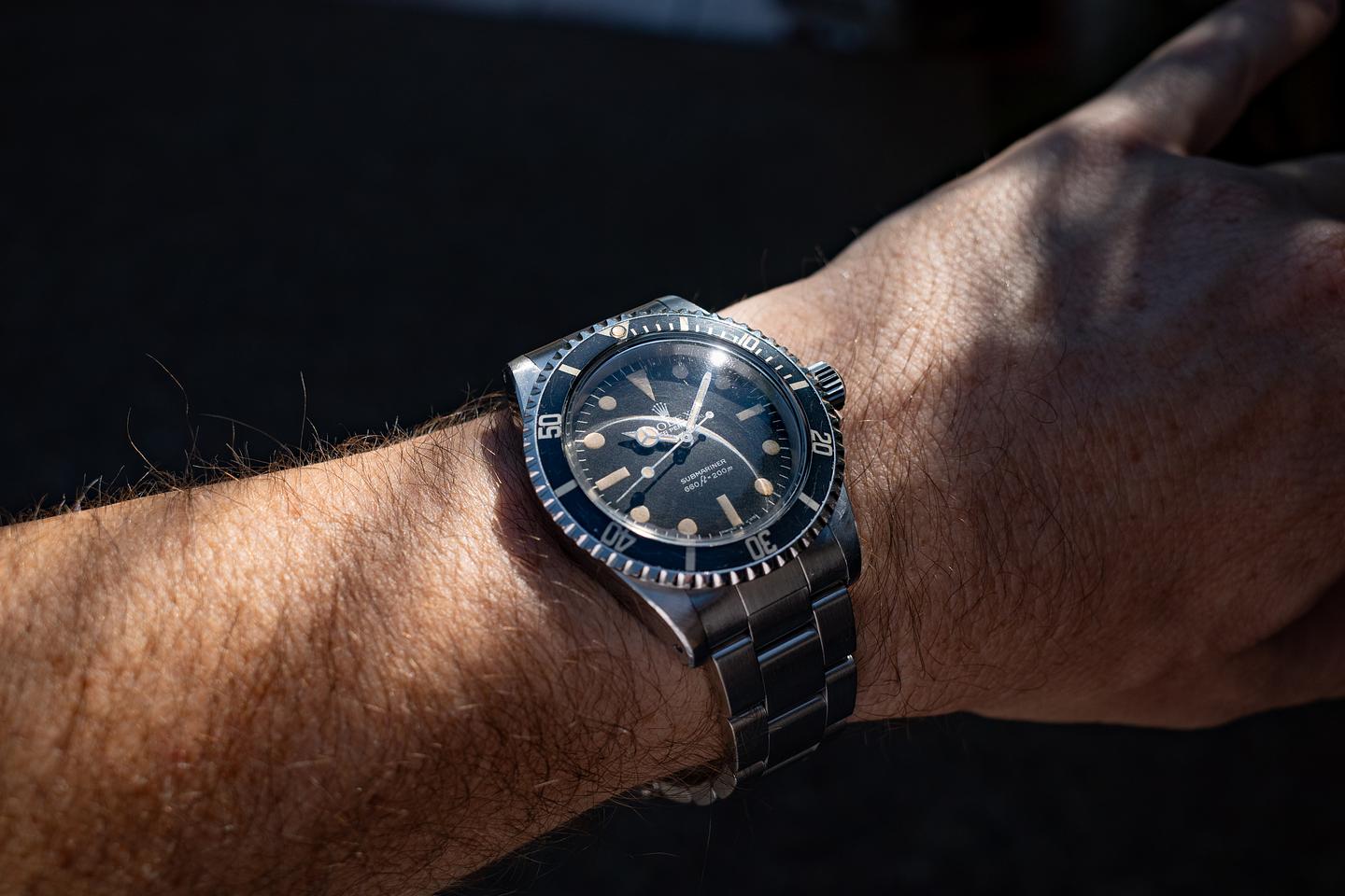 Case: The previously polished case is excellent showing wide sharp prominent bevels that closely resemble the factory profile. The case shows some light wear from use. The bezel insert is also in excellent condition and has aged to a blue hue showing some light wear from use.