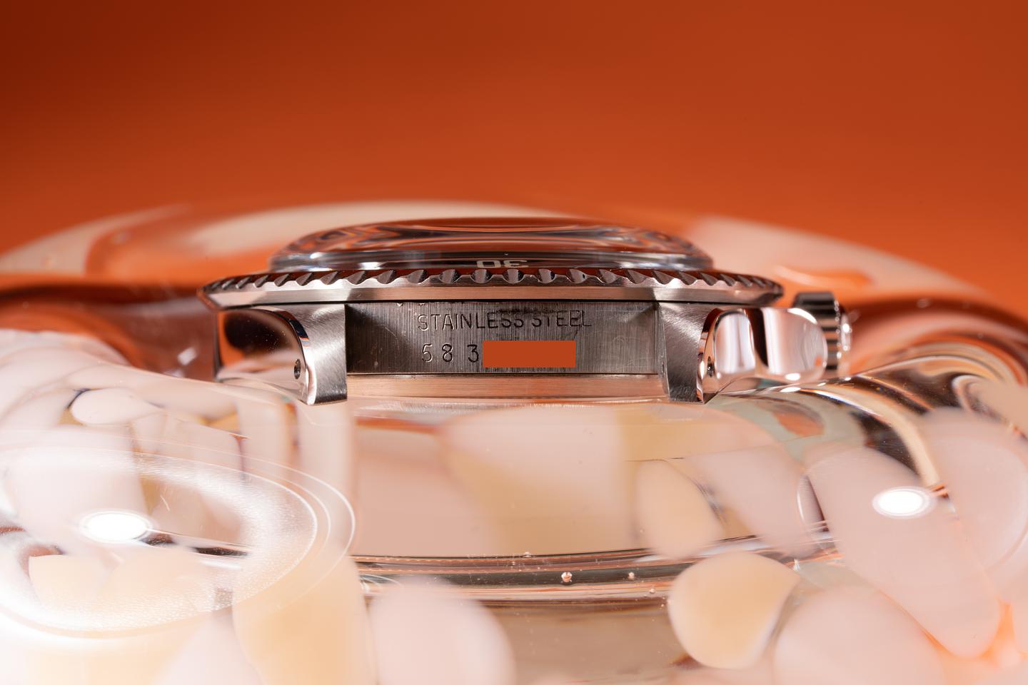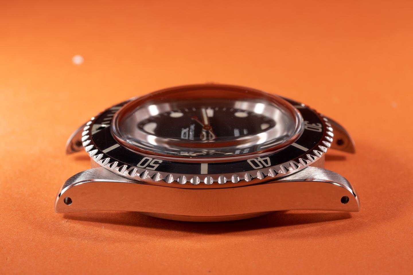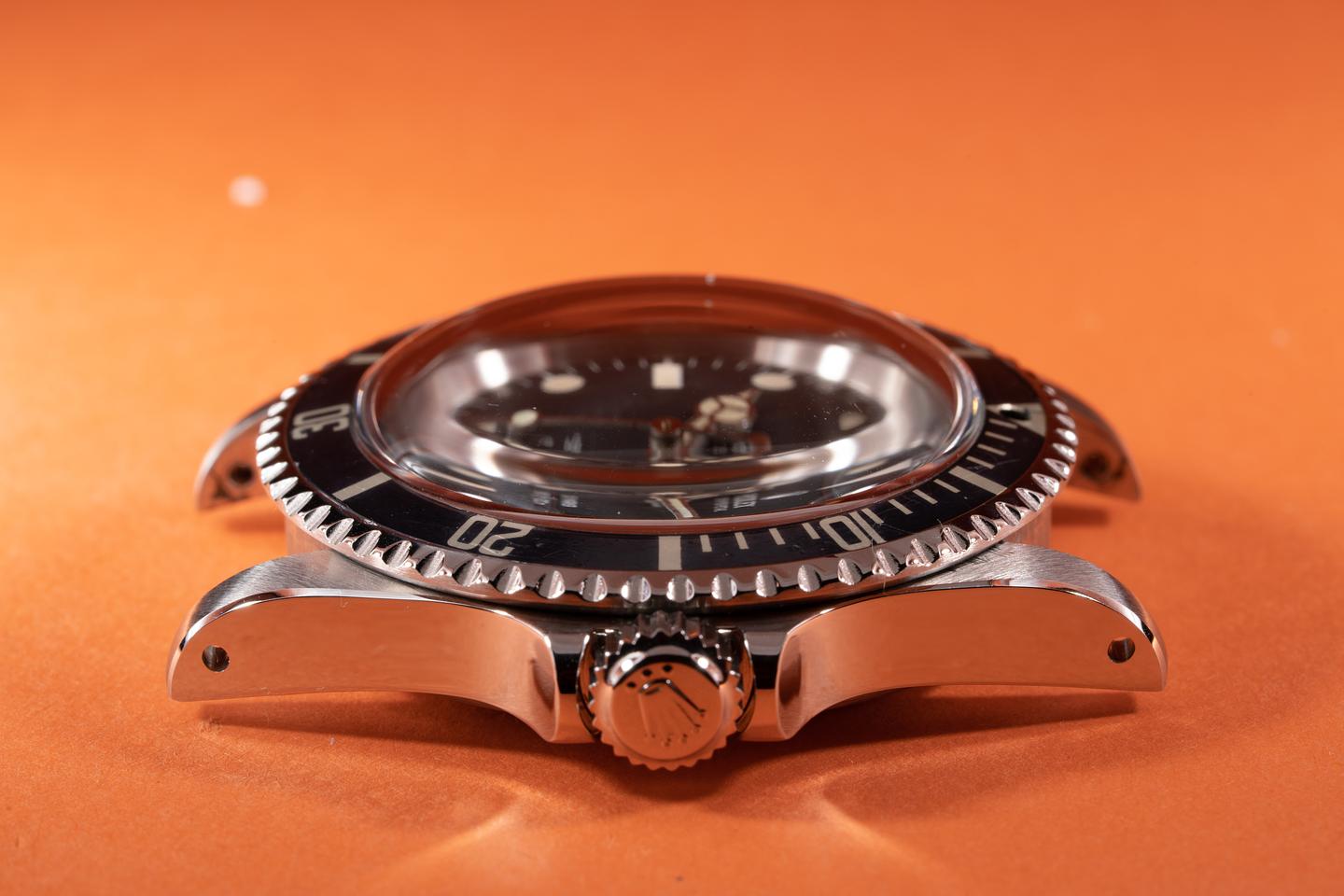Case: The case has just returned from polishing showing sharp prominent bevels. The black bezel insert has faded to a silvery navy blue hue and shows some light wear.