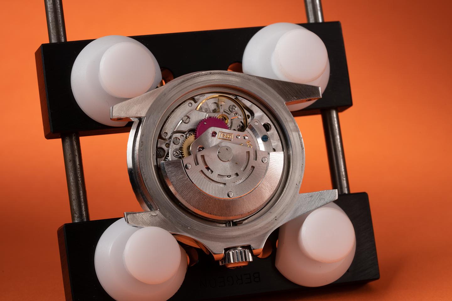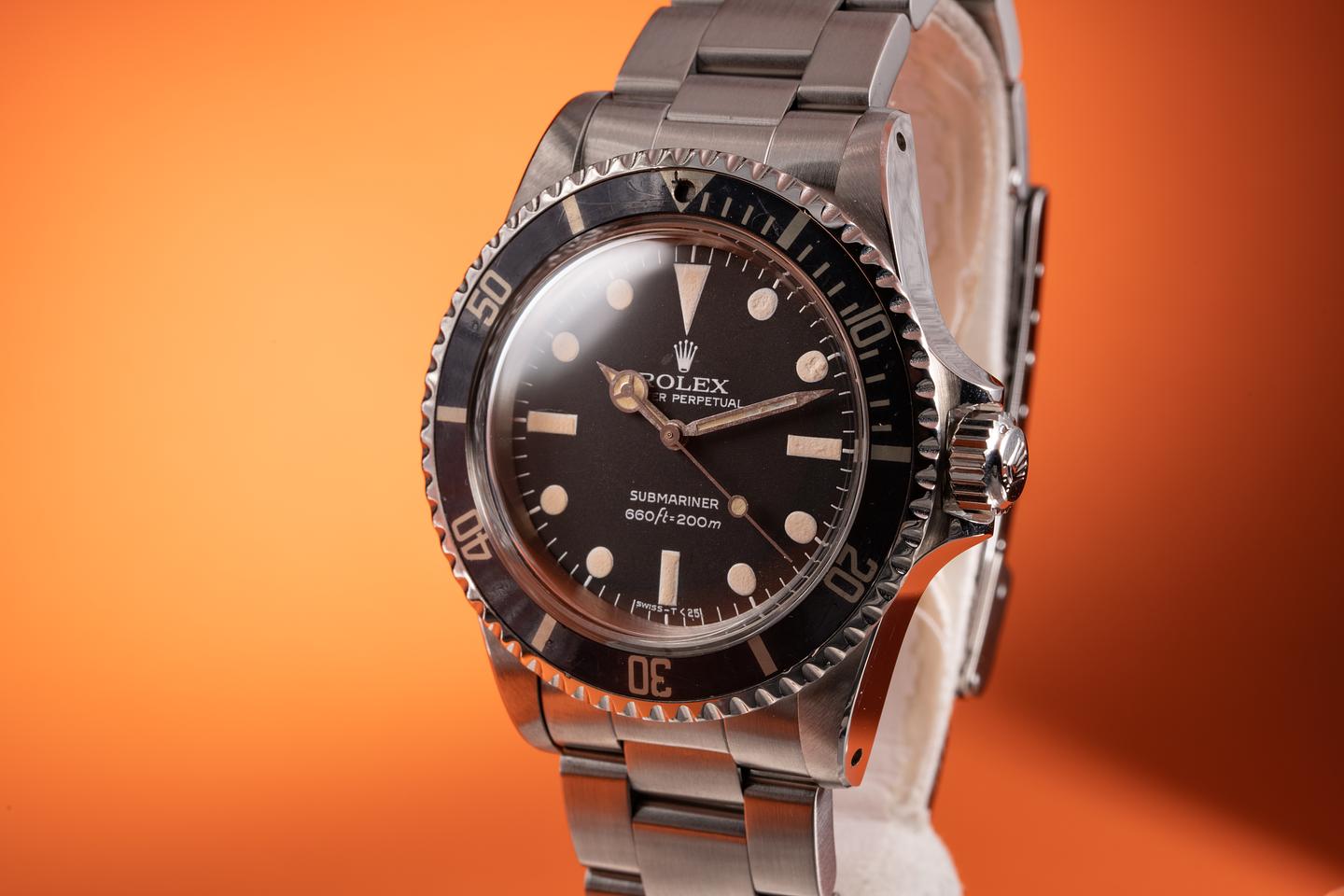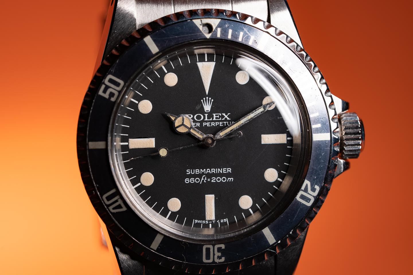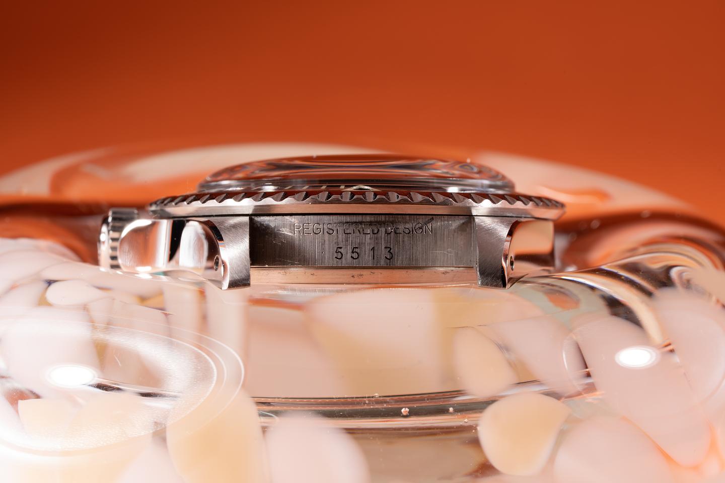 Case: The case has just returned from polishing showing sharp prominent bevels. The black bezel insert has faded to a silvery navy blue hue and shows some light wear.