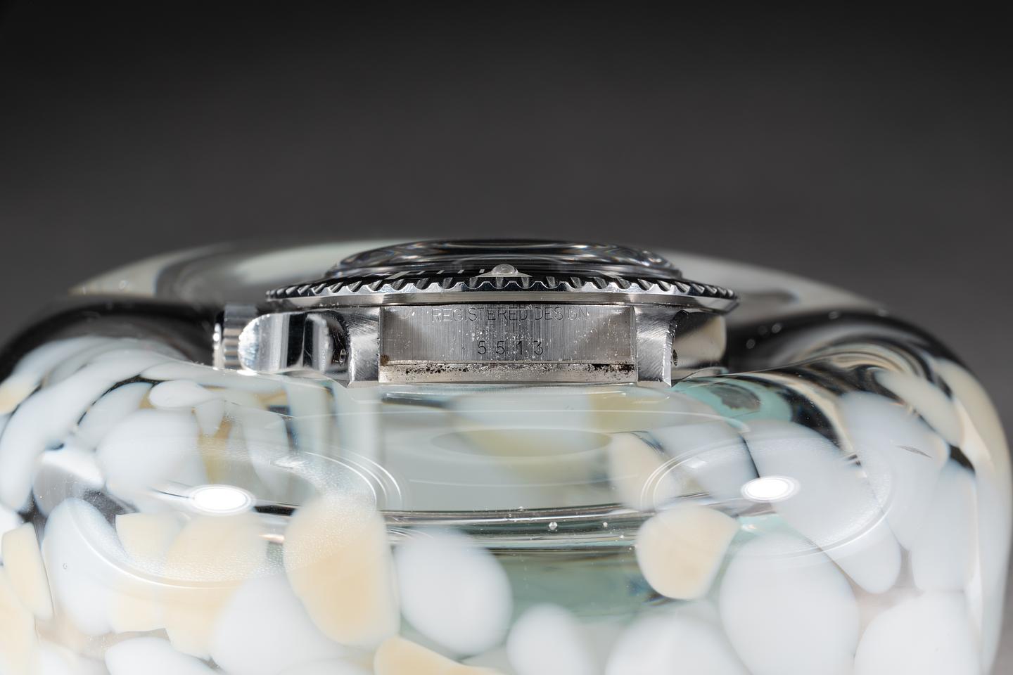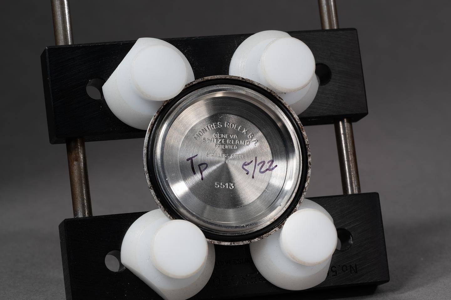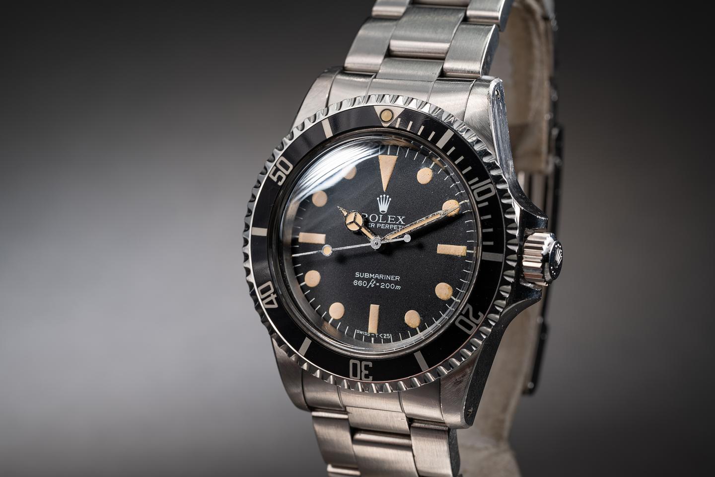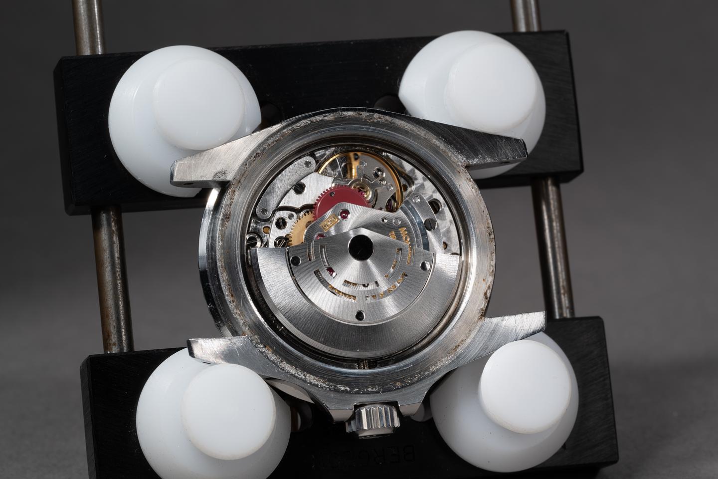 Case: The previously polished case is excellent showing wide sharp prominent bevels that closely resemble the factory profile. The case shows some light wear from use. The black bezel insert is also in excellent condition showing only very light wear from use.