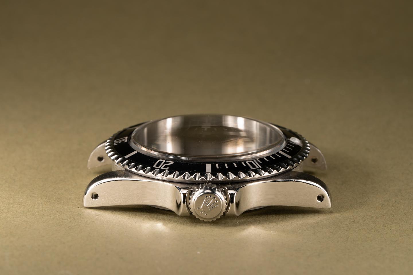 Case: Excellent and thick case that has been polished in the past. The black bezel insert is fading to a dark blue hue and shows light wear.