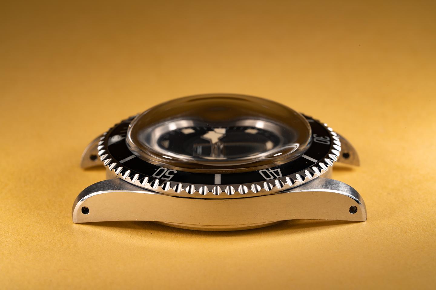 Case: The previously polished case is excellent and features sharp, wide, and prominent bevels and showing only light wear from use. The black bezel insert is also in excellent condition and shows light wear.