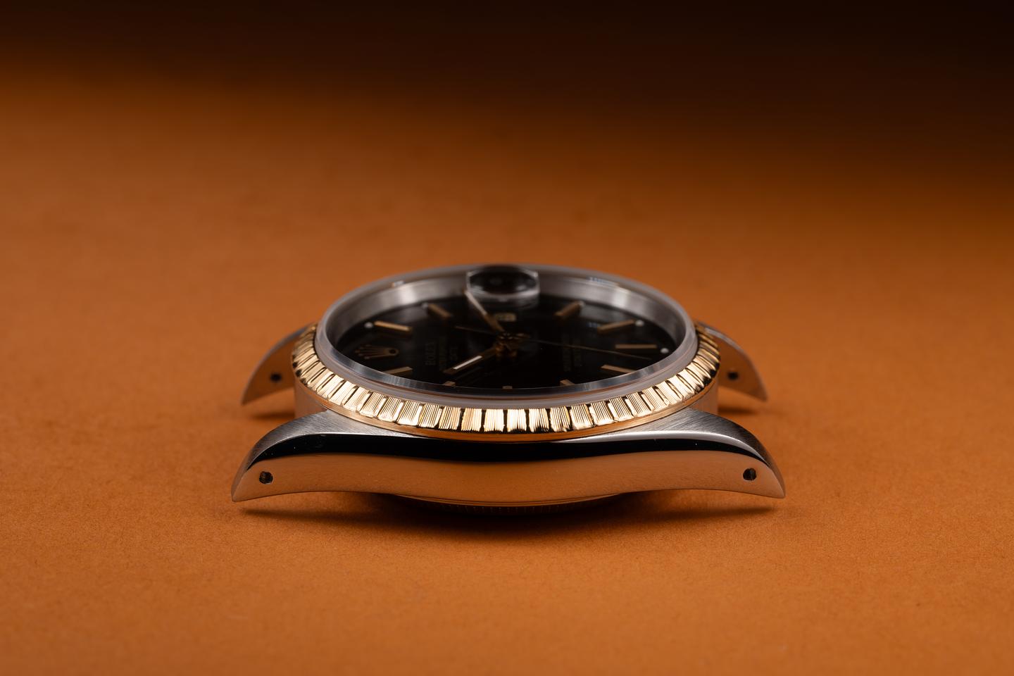 Case: The 34mm case is excellent, showing only light wear from use. The sharp 18K yellow gold fluted bezel is also in excellent condition, showing only light wear from use.