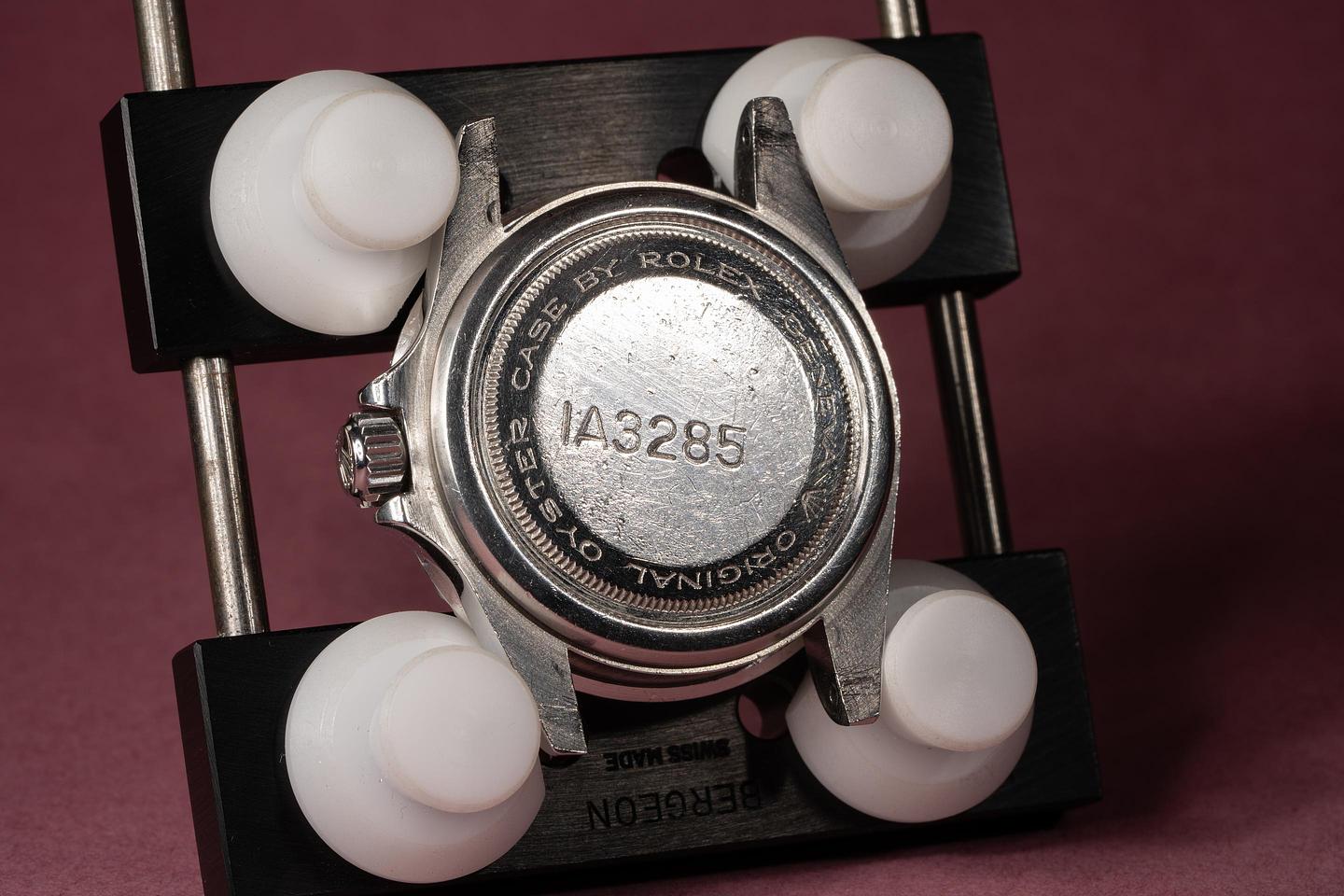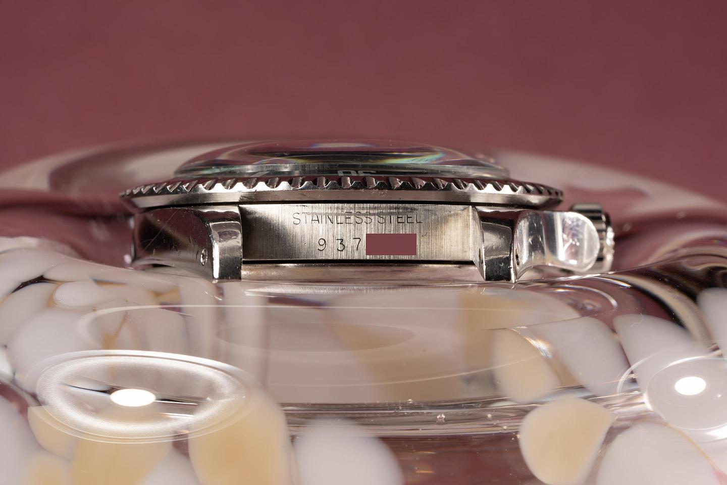 Case: Excellent and fat case that has prominent bevels and a sleeve polished appearance. The black bezel insert has faded to a medium grey and is in excellent condition showing very light wear. The engraving on the caseback looks to be military in origin but a similar example denoting the exact origin has not yet been found.