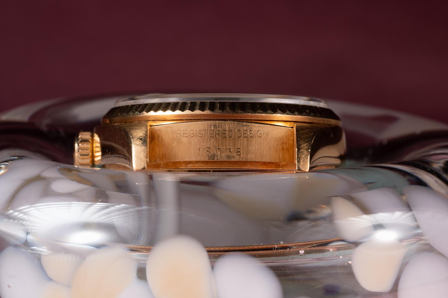 Case: The 18k yellow gold case is excellent showing a warm rosy patina and some light wear from use. The sharp 18k yellow gold fluted bezel is also in excellent condition showing a warm rosy patin and some light wear from use.