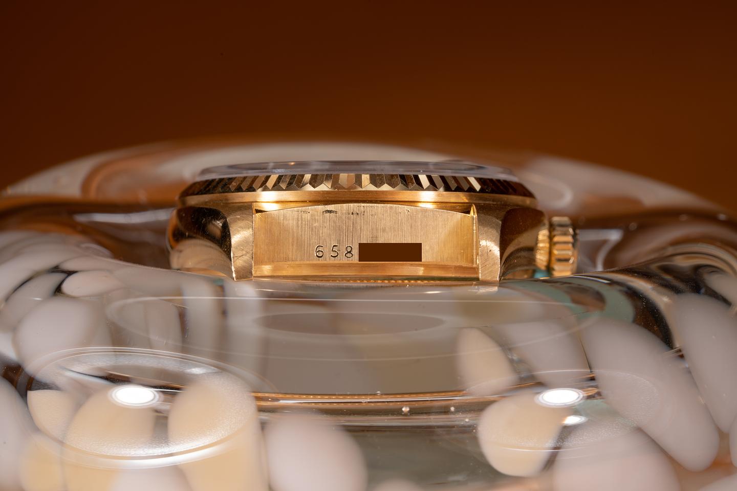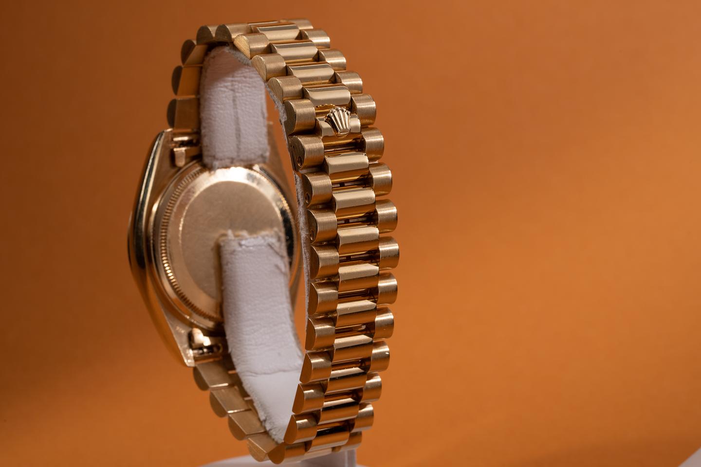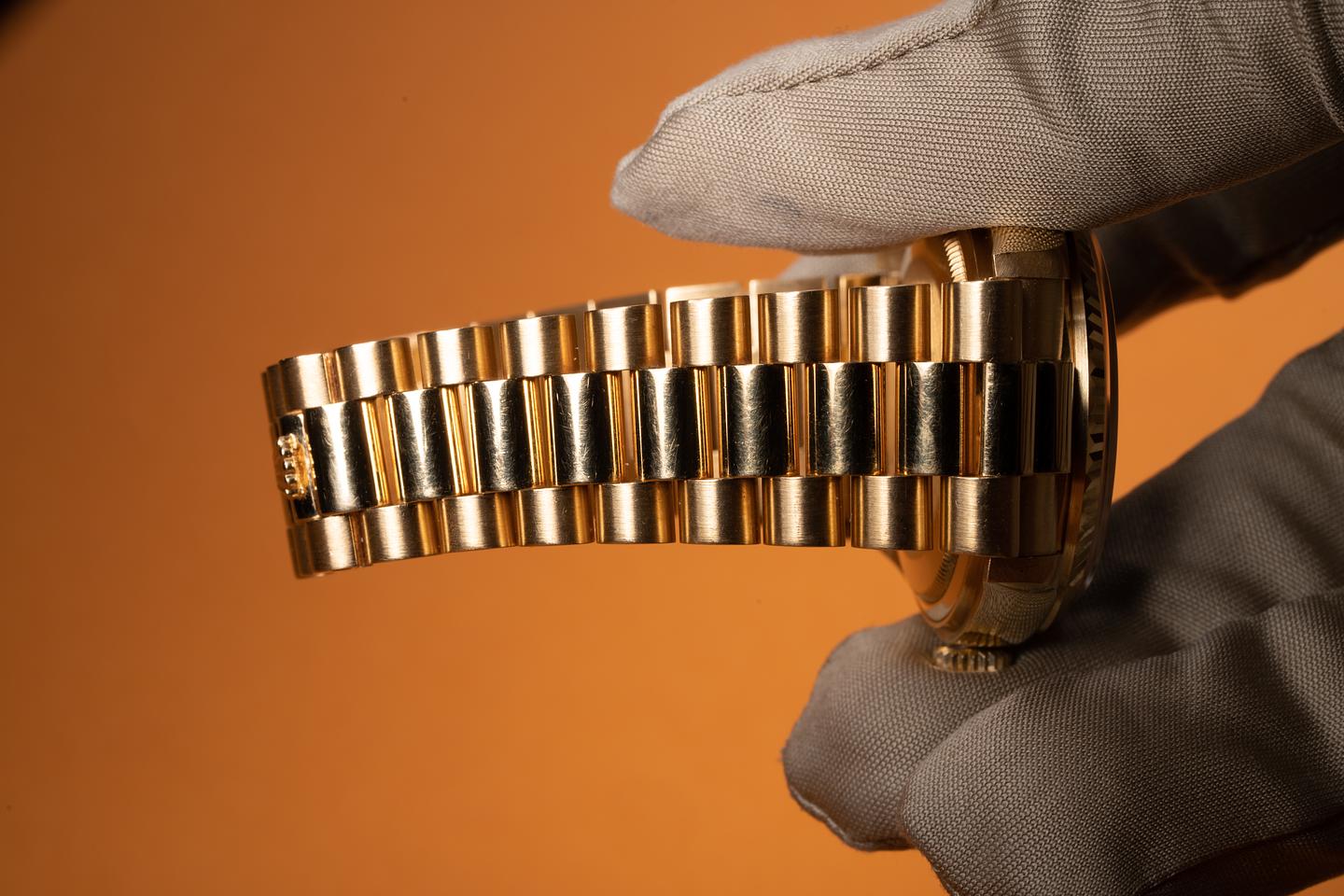 Bracelet: The 23 link 18k yellow gold President bracelet is excellent showing only very light stretch for its age. The clasp is stamped with a 1980 date code.