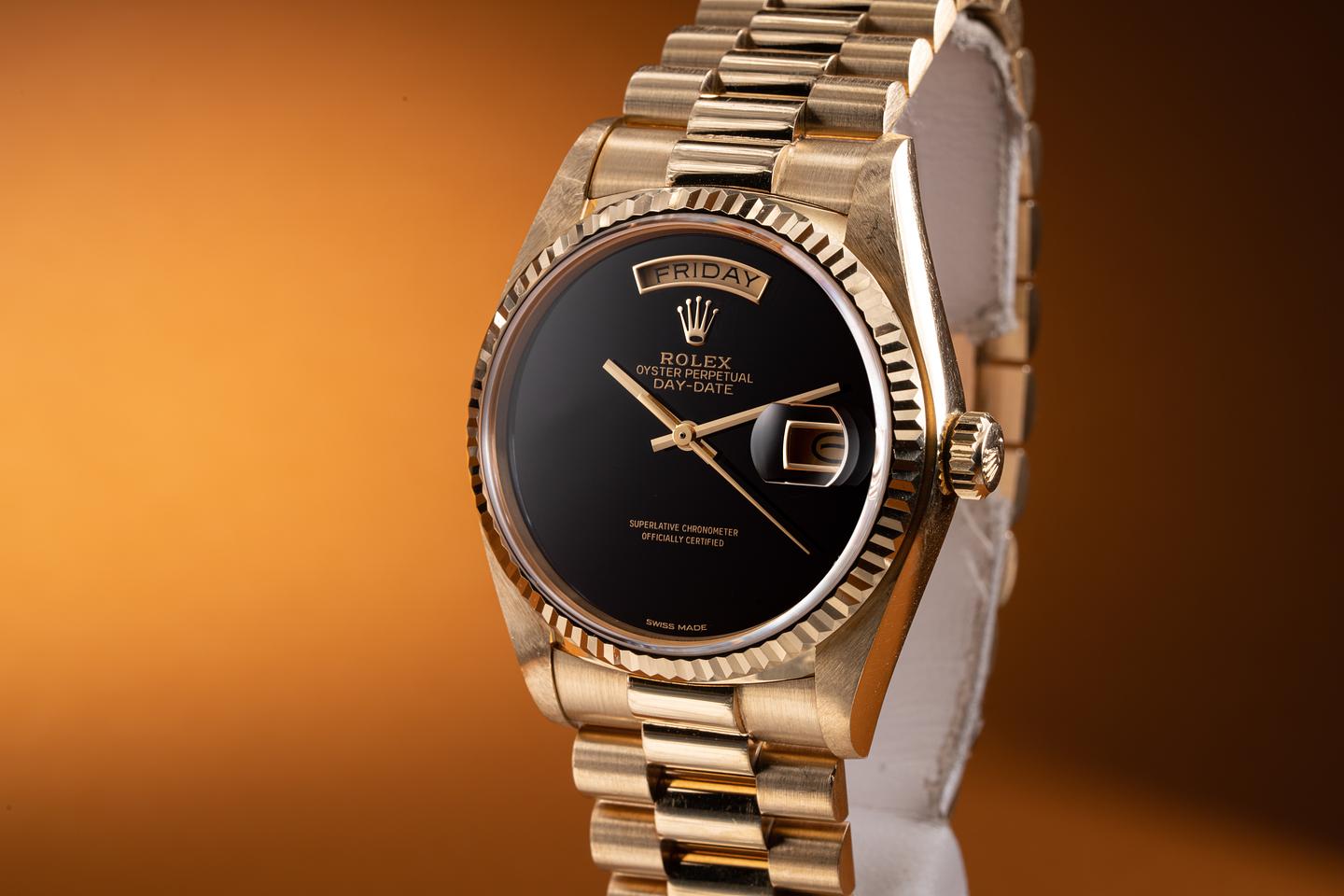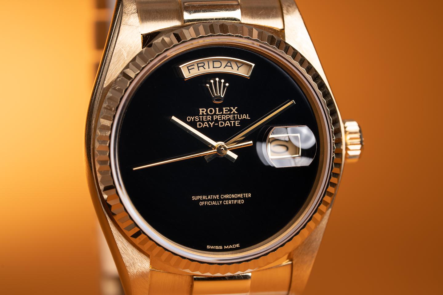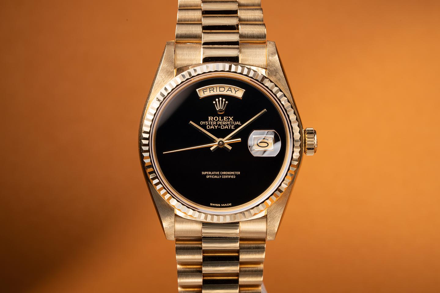 Bracelet: The 23 link 18k yellow gold President bracelet is excellent showing only very light stretch for its age. The clasp is stamped with a 1980 date code.
