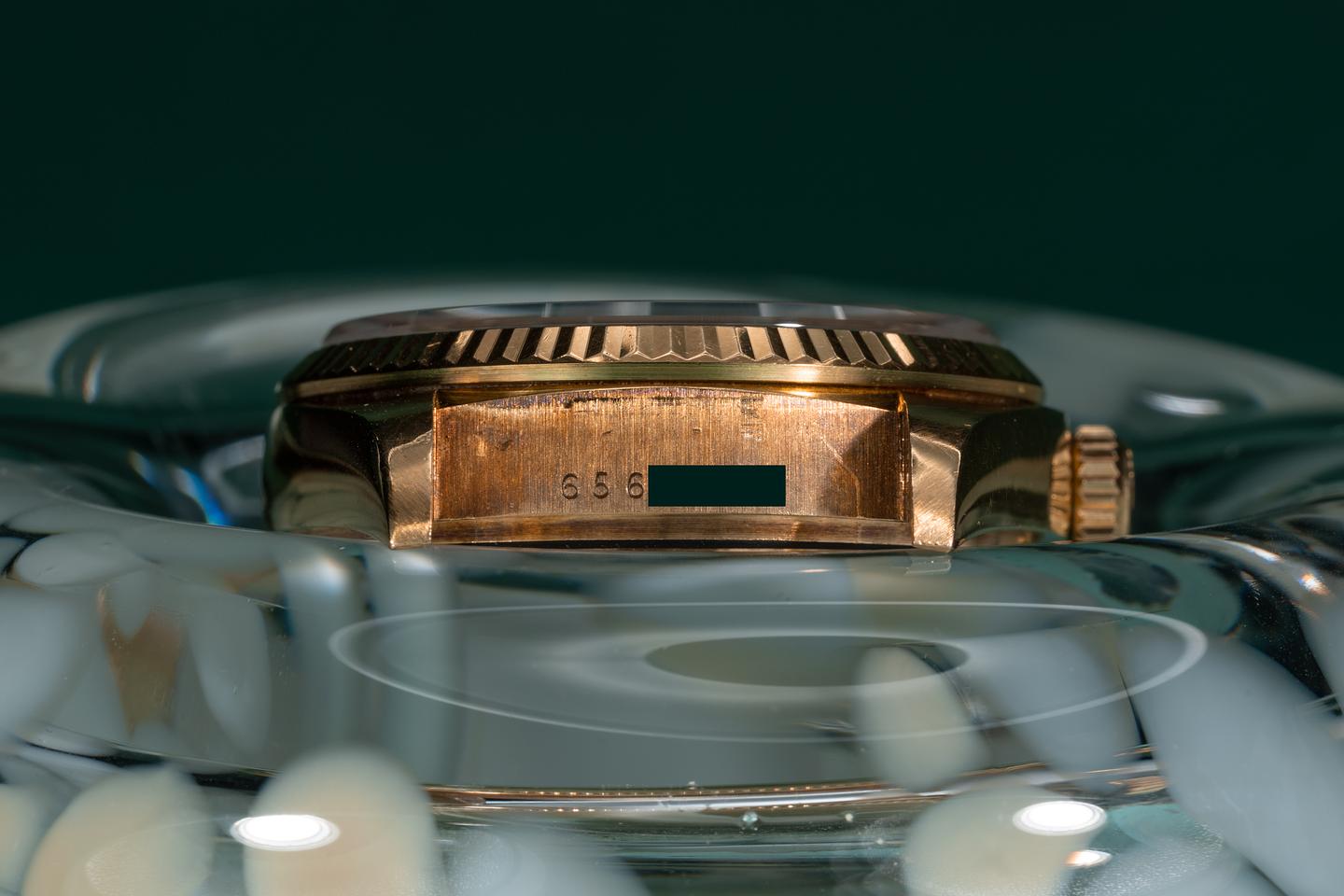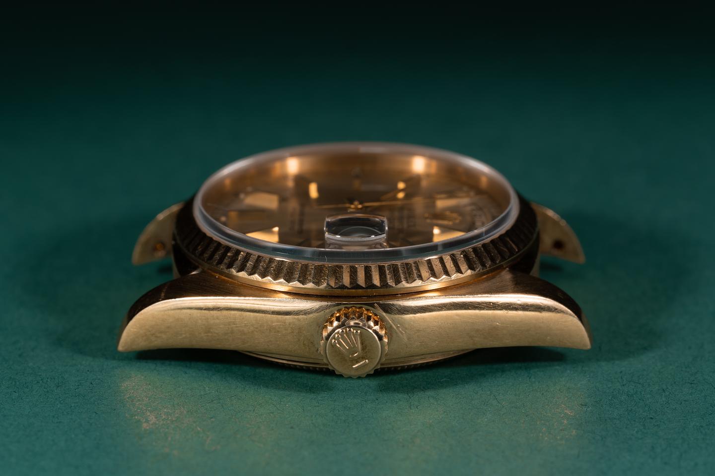 Case: The thick 18k yellow gold case has been polished in the past showing average wear from use. The sharp 18k yellow gold fluted bezel is also in excellent condition showing some light wear for its age.