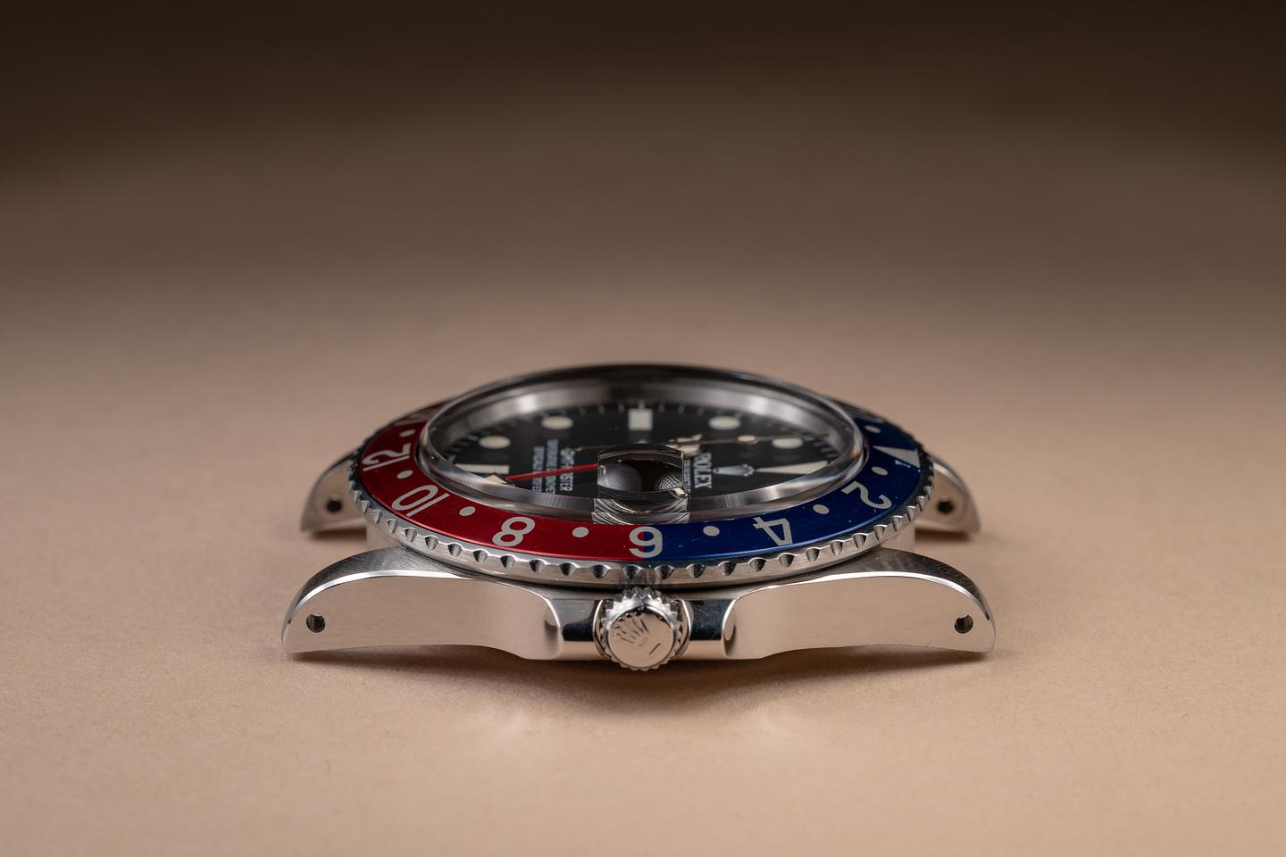 Case: The freshly polished case is excellent, showing sharp, prominent bevels. The blue and red "Pepsi" bezel insert is also in excellent condition, showing only very light wear from use.