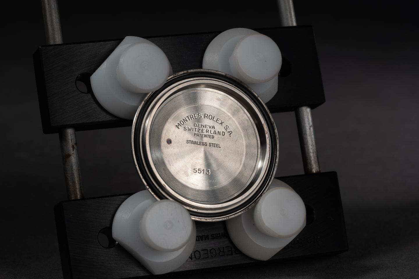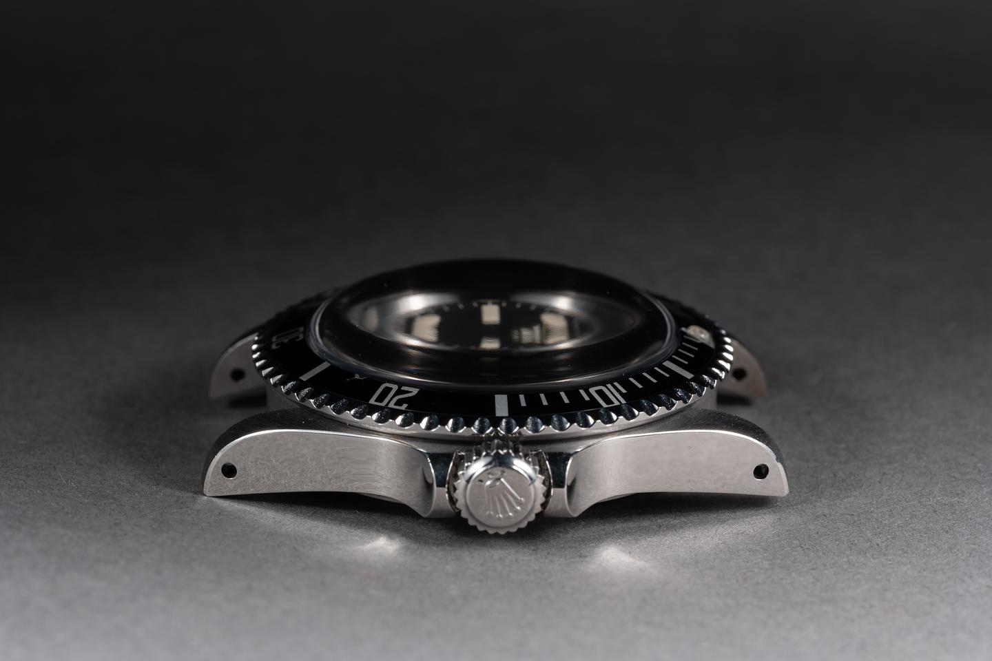 Case: The thick and even case is excellent showing sharp prominent bevels and only light wear from use. The black bezel insert is also in excellent condition showing only light wear from use.