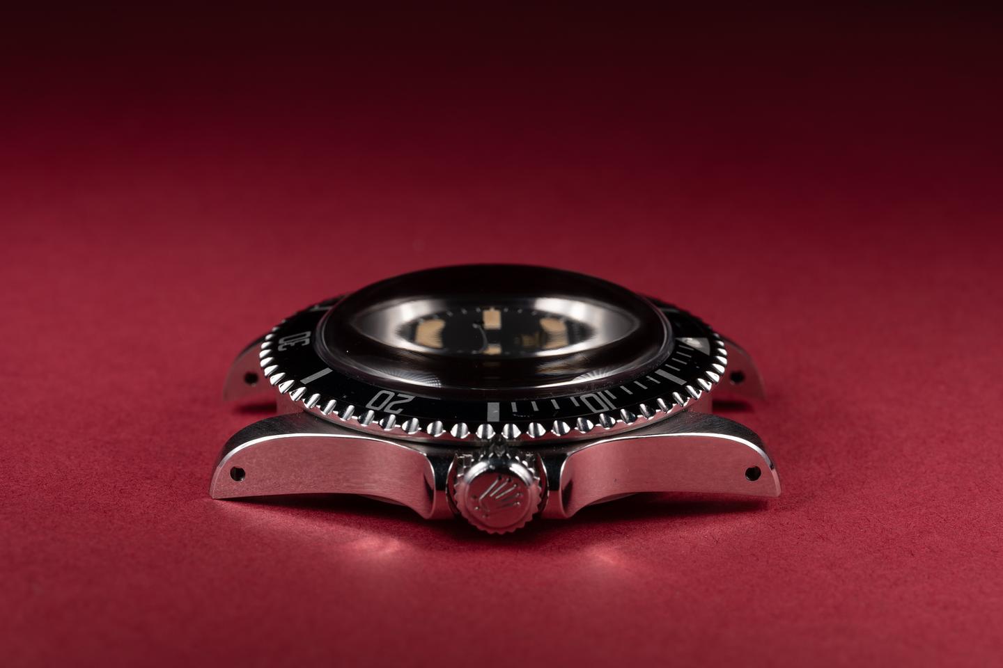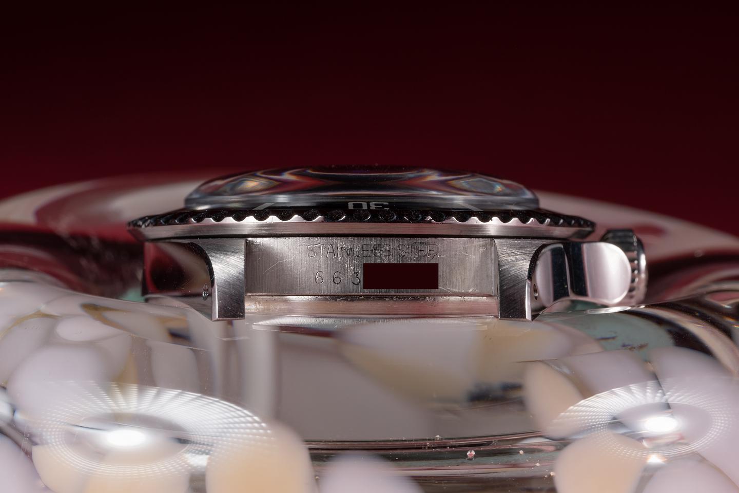 Case: The thick and even case is excellent showing sharp prominent bevels and only very light wear. Their bezel insert is also in excellent condition showing some light wear from use.