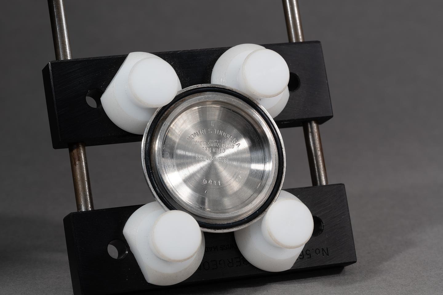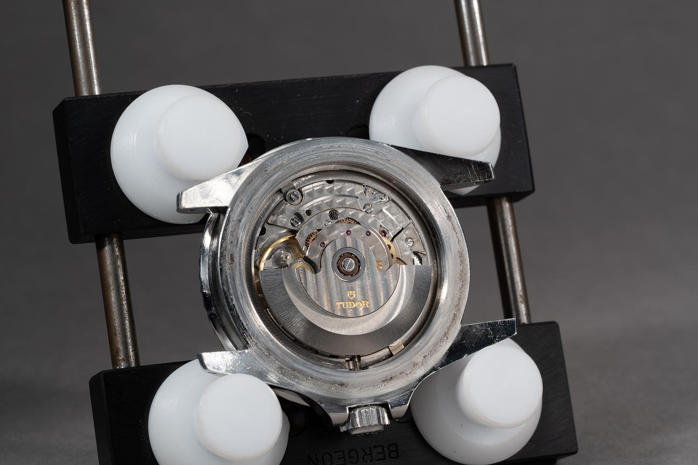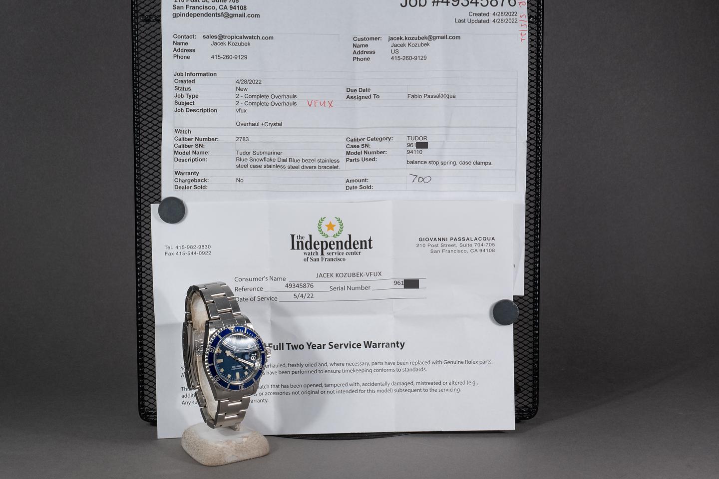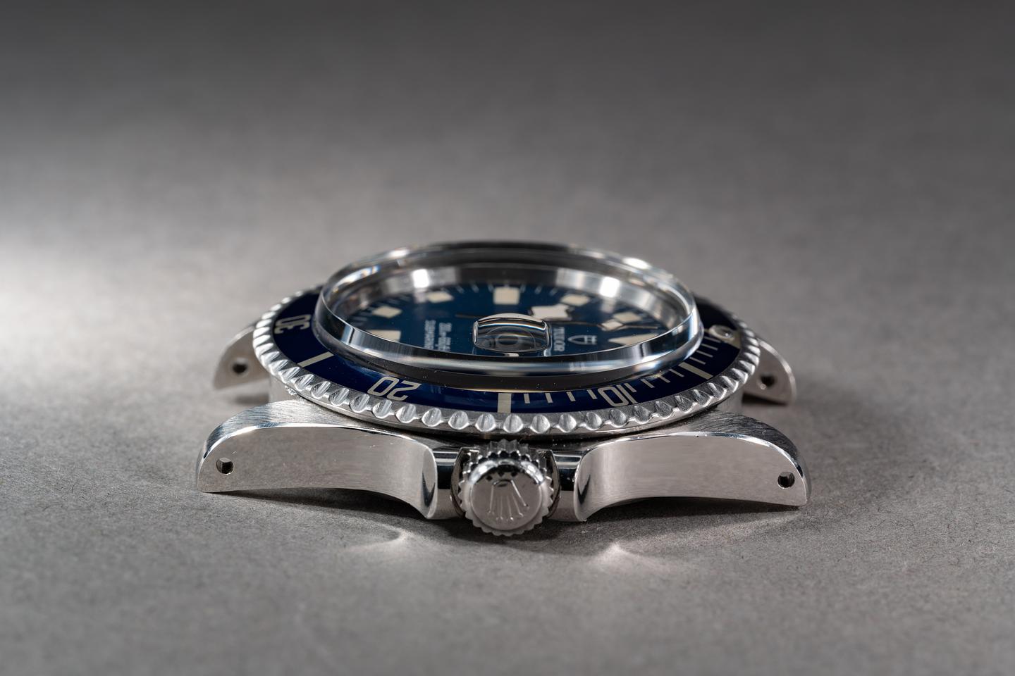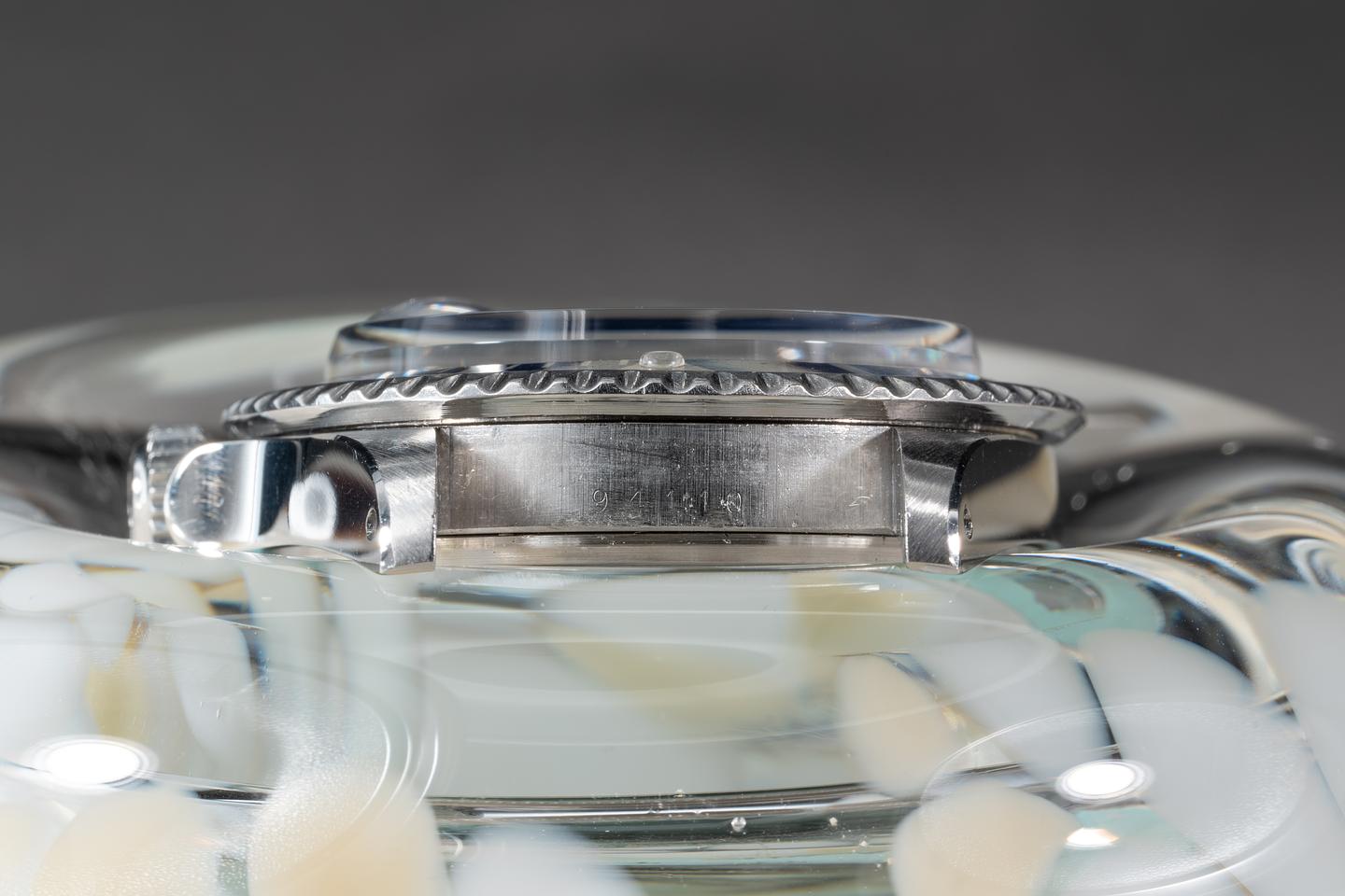 Case: The thick and even case has recently been polished showing sharp prominent bevels and only very light wear from use. The blue bezel insert is also in excellent condition showing only very light wear from use.