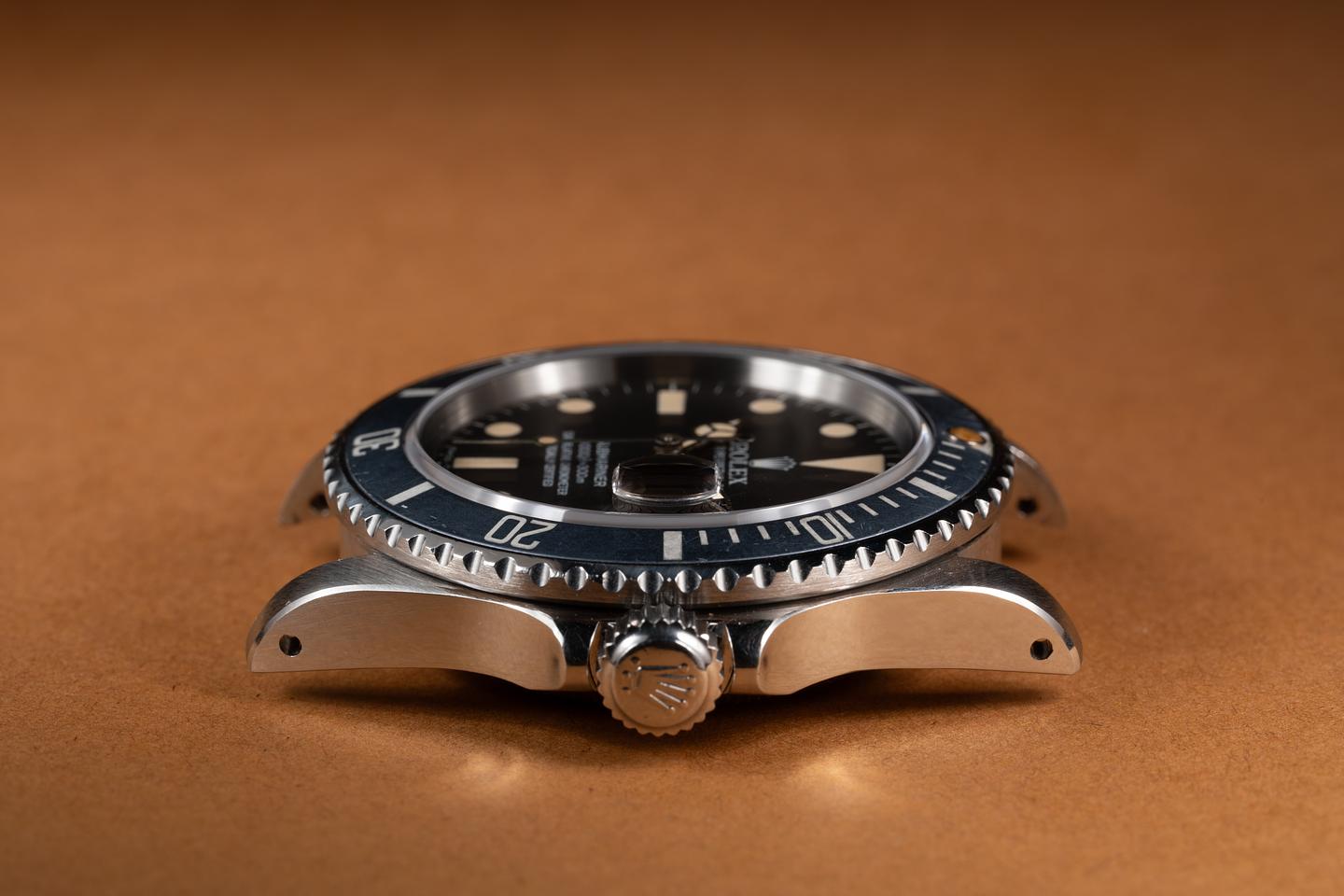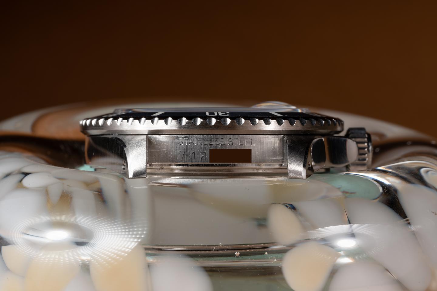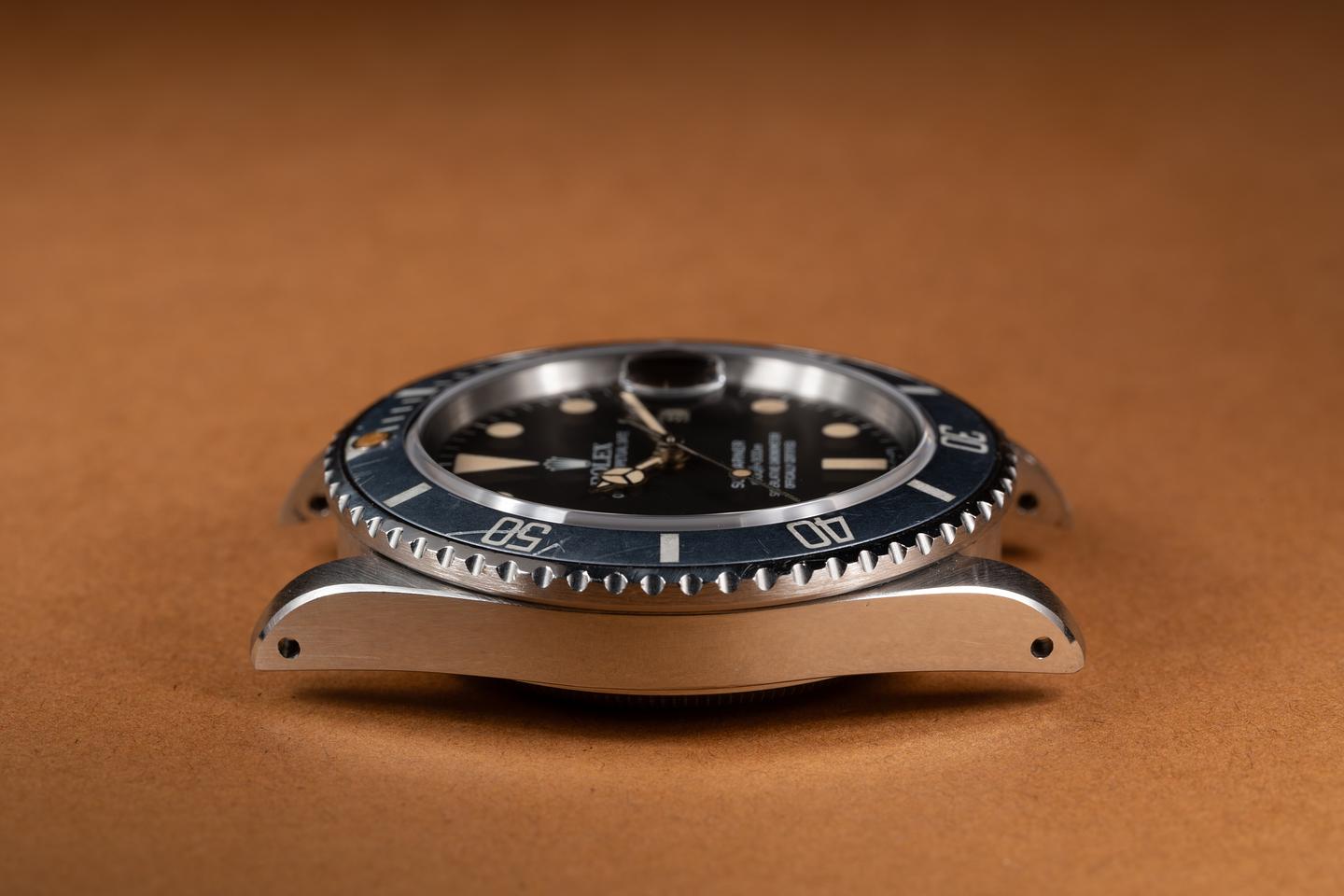 Case: The recently polished case is excellent showing sharp prominent bevels and only very light wear from use. The bezel insert has faded to a light denim blue hue and shows only very light wear from use.