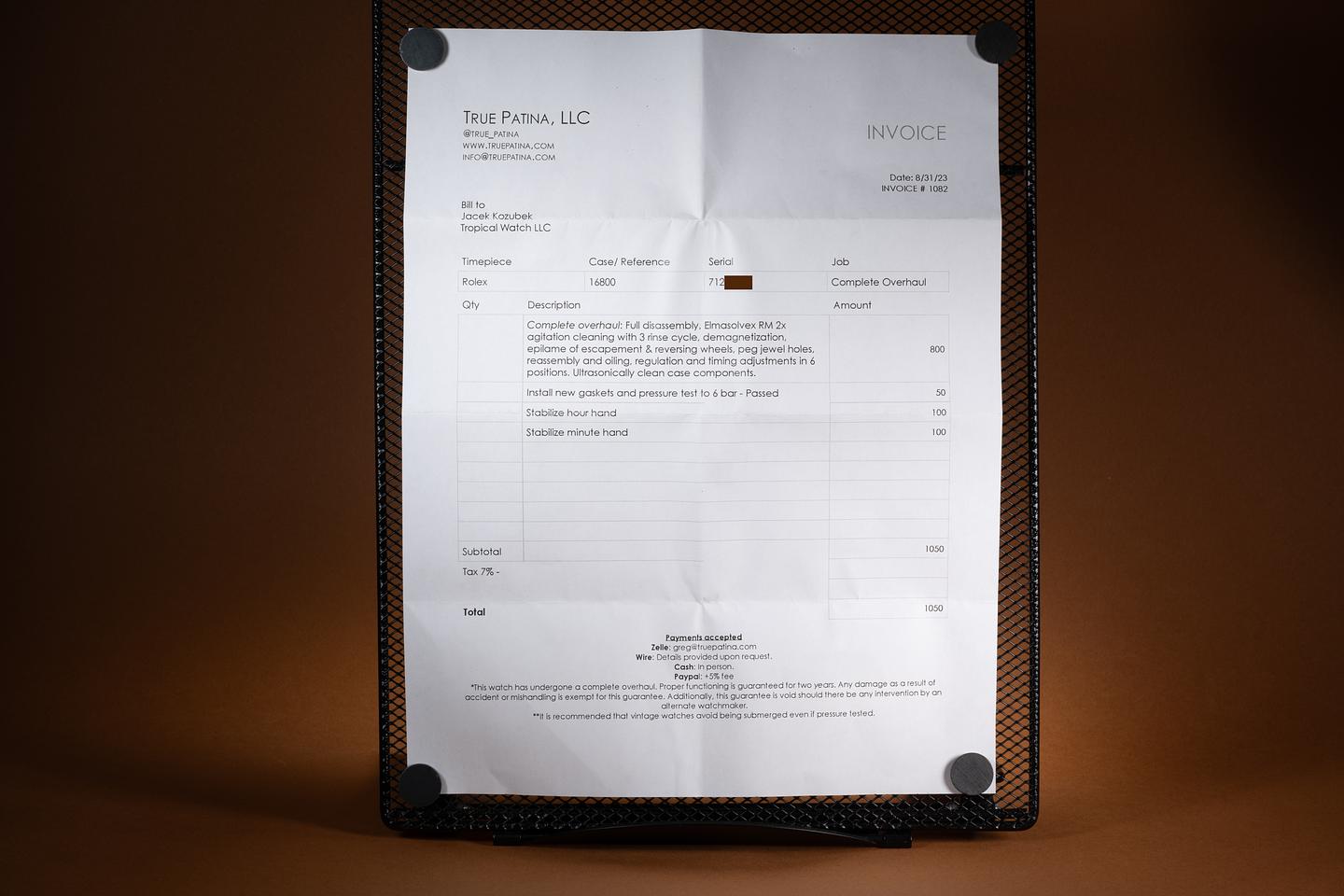 Bracelet: The 11 link Oyster bracelet is excellent showing only light stretch for its age. The clasp is stamped with a matching 1982 date code.