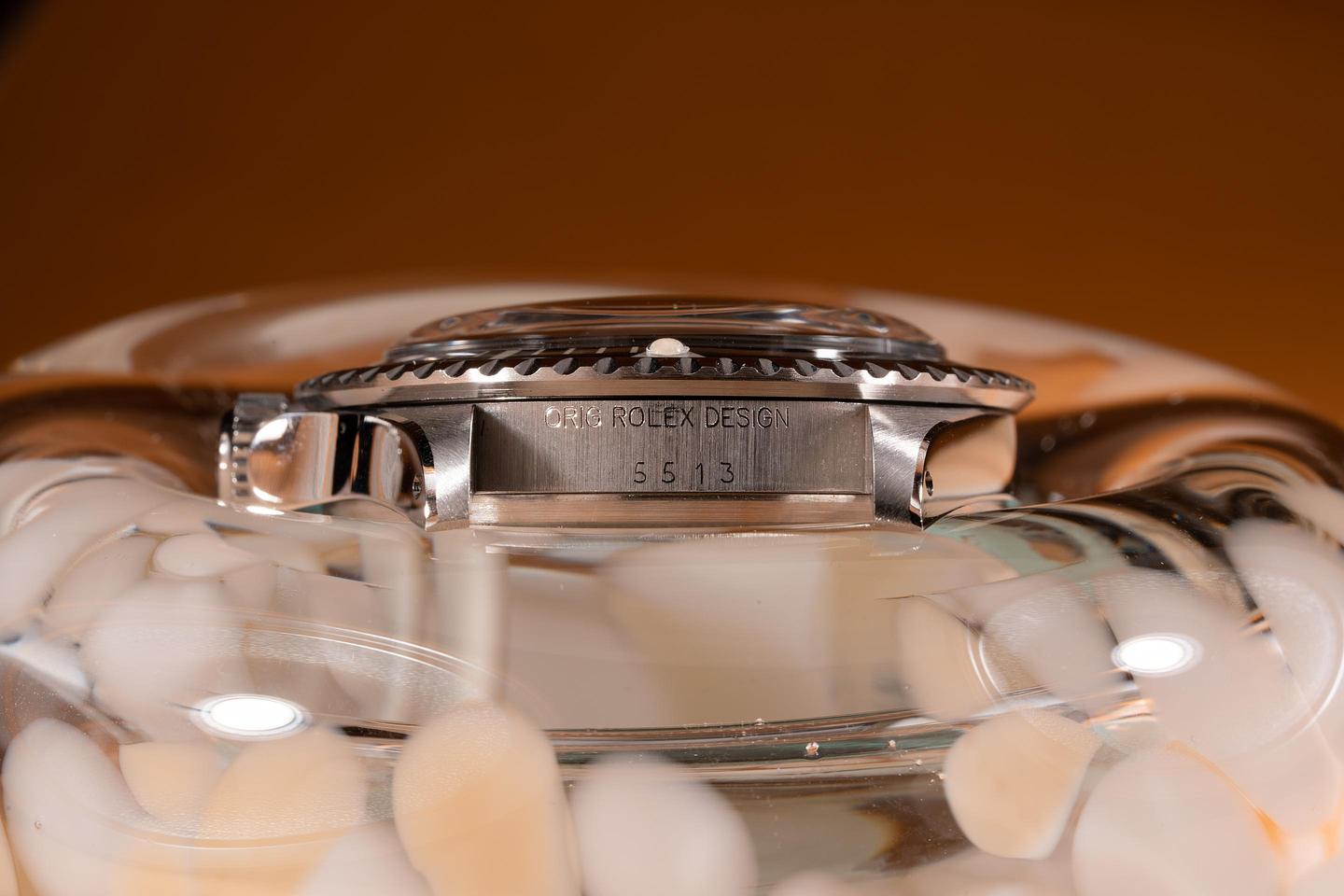 Case: The case has just returned from polishing showing sharp prominent bevels. The black bezel insert is also in excellent condition and shows some light wear from use.