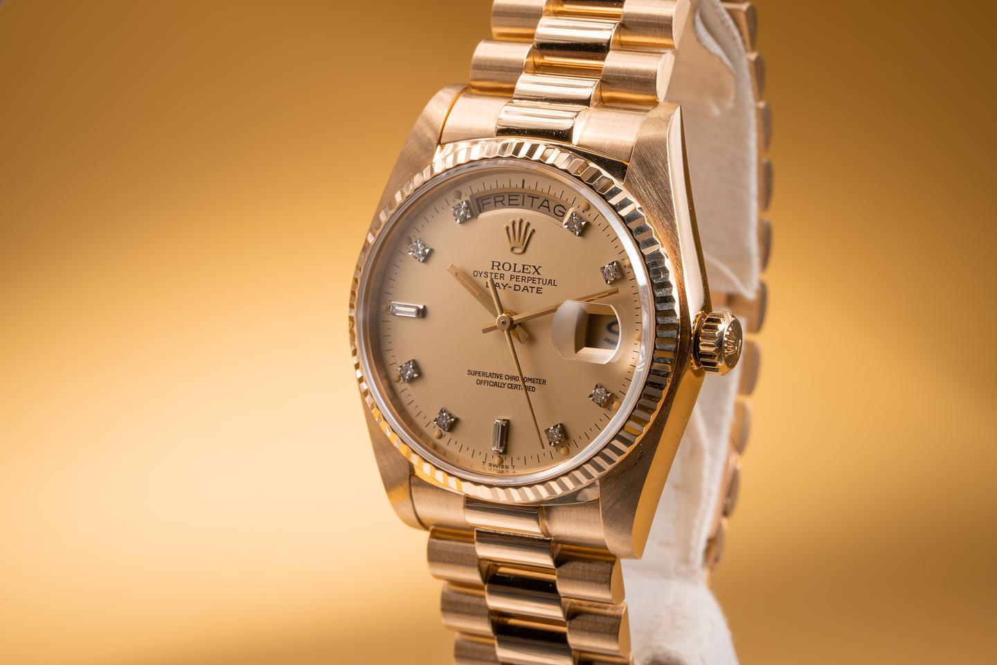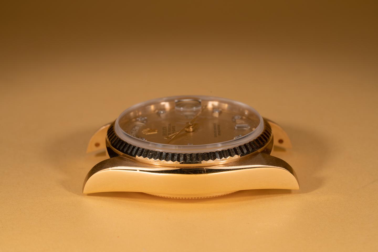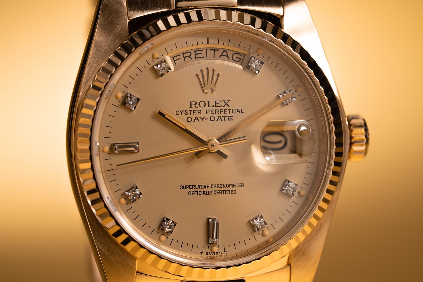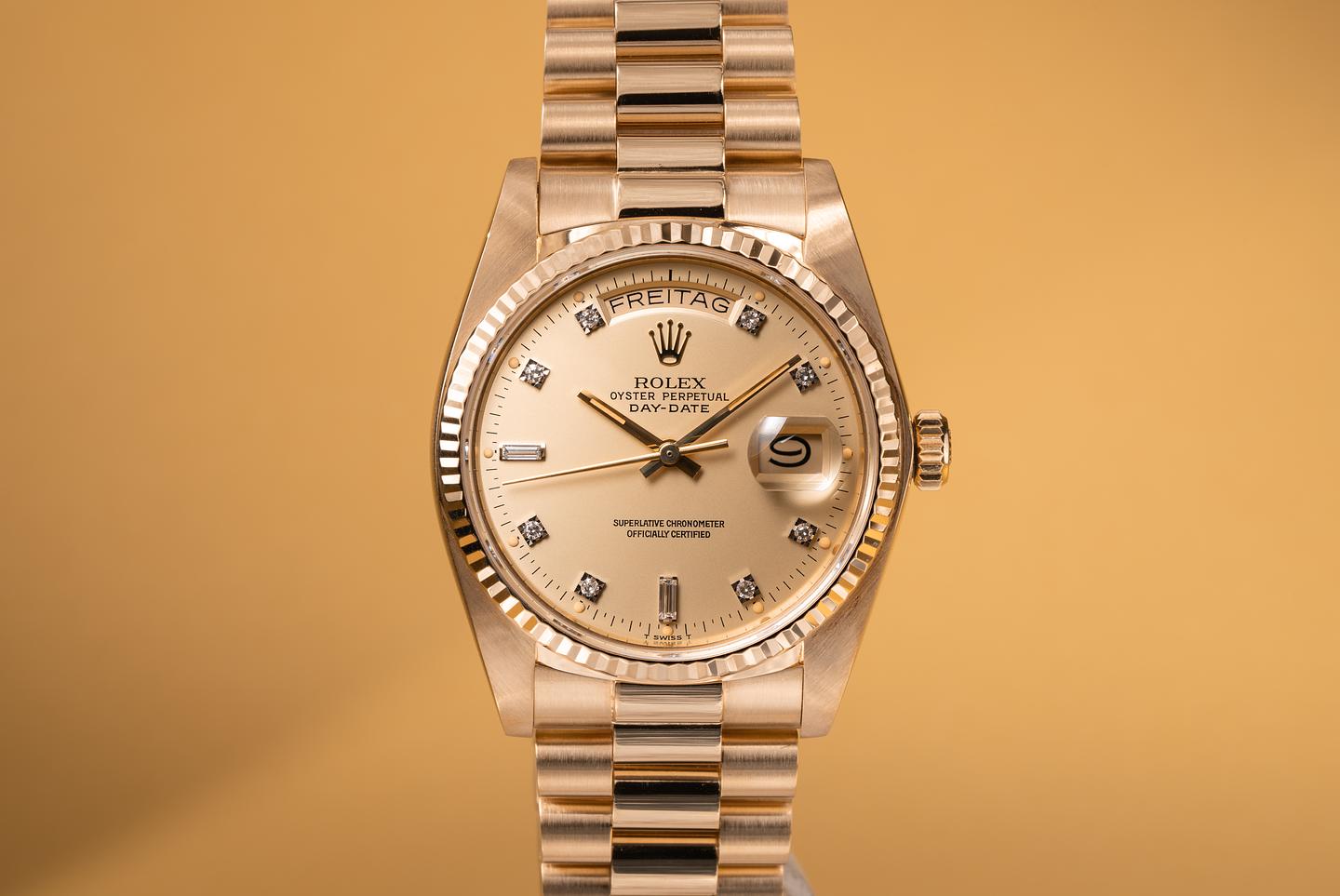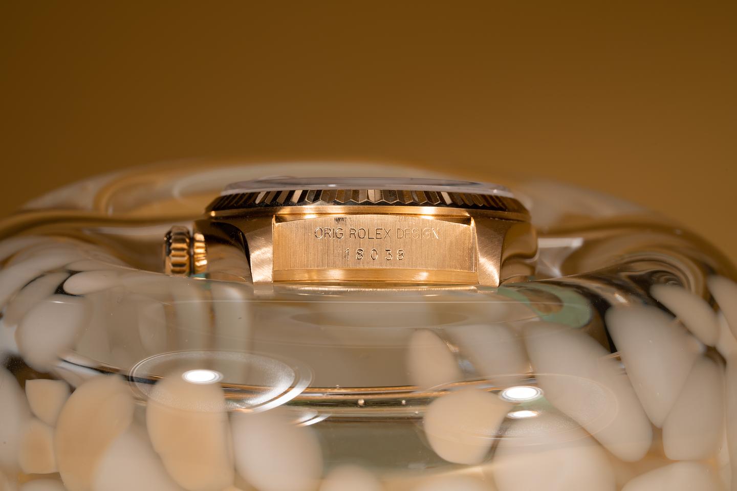 Notes: The tall puffy golden lume plots jump of the dial of this incredible 18238.