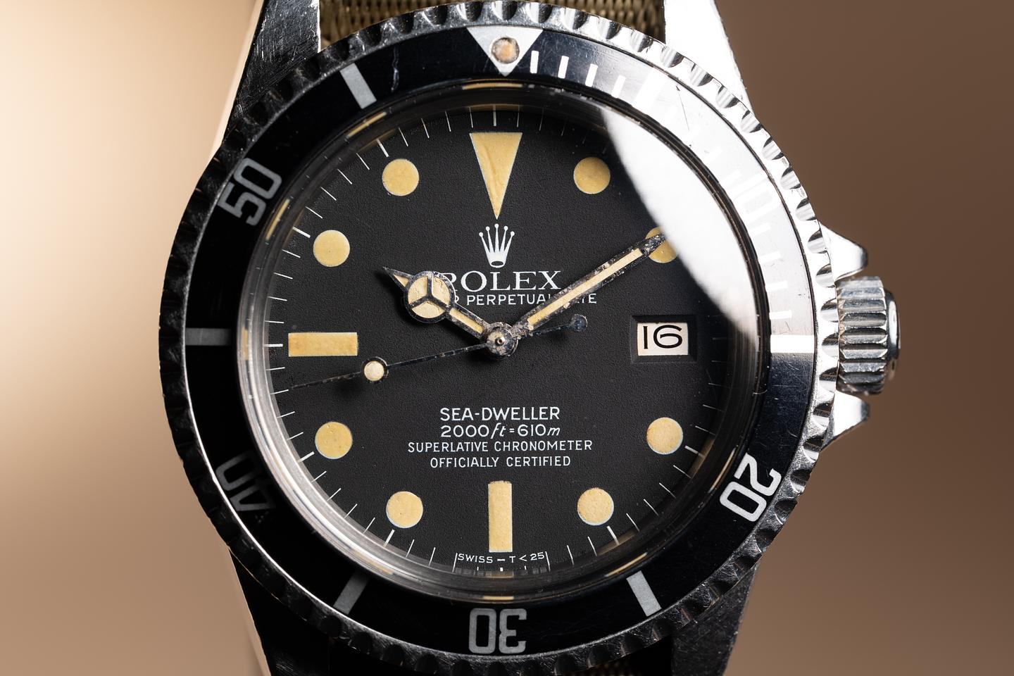 Dial: The matte black MK 4 "Great White" dial is excellent showing only very light wear for its age. The lume has aged to a creamy hue and the hands have been relumed and appear slightly lighter than the dial.