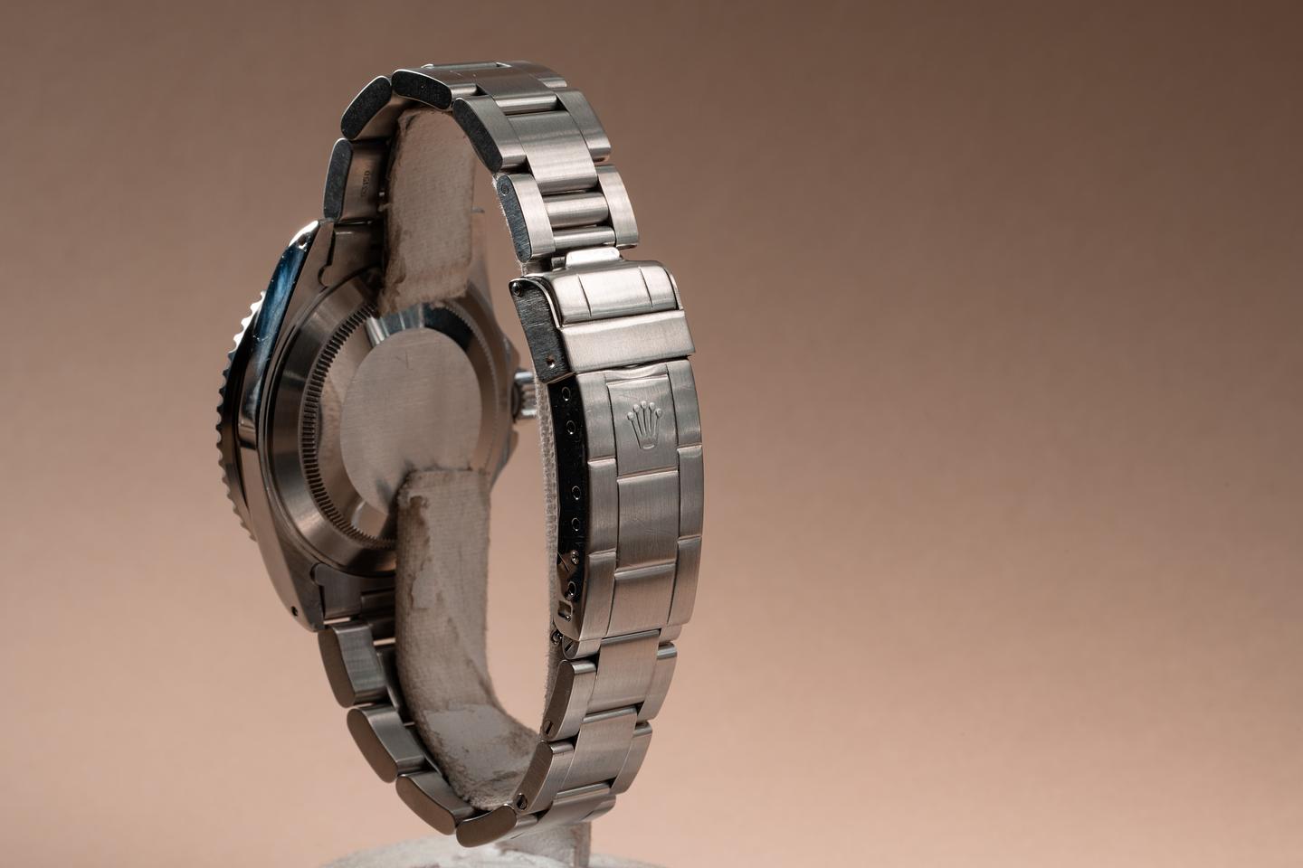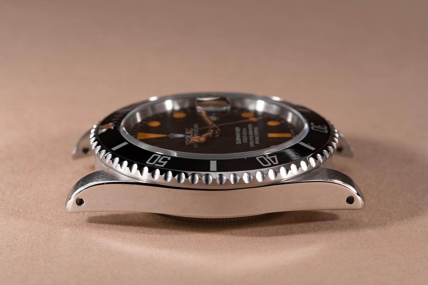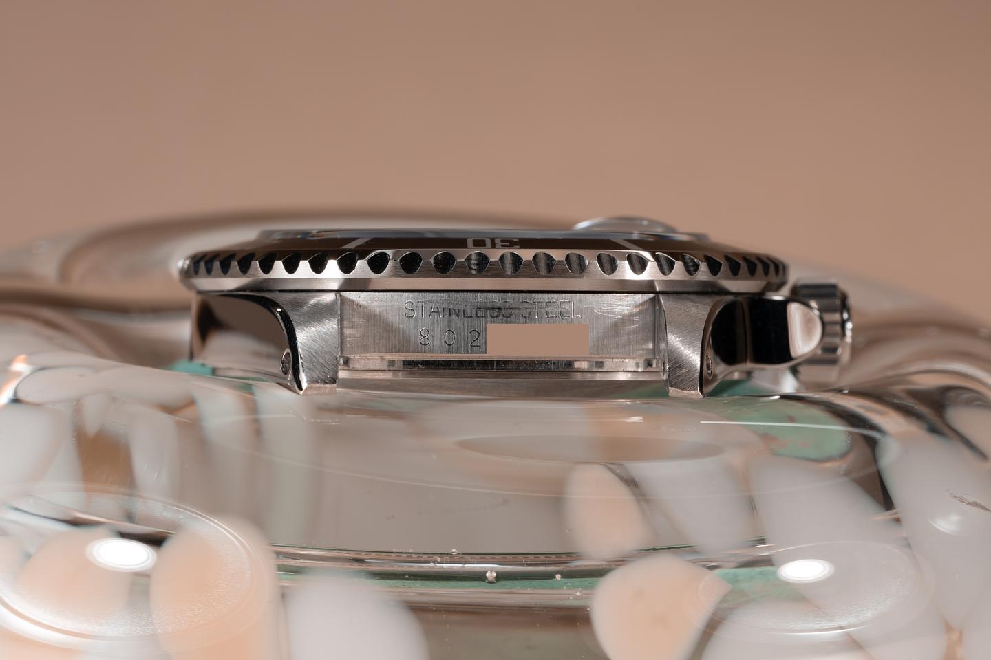 Case: The previously polished case is excellent showing prominent bevels and only light wear from use. The black bezel insert is also in excellent condition showing only light wear from use.