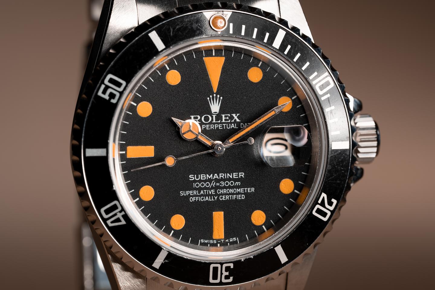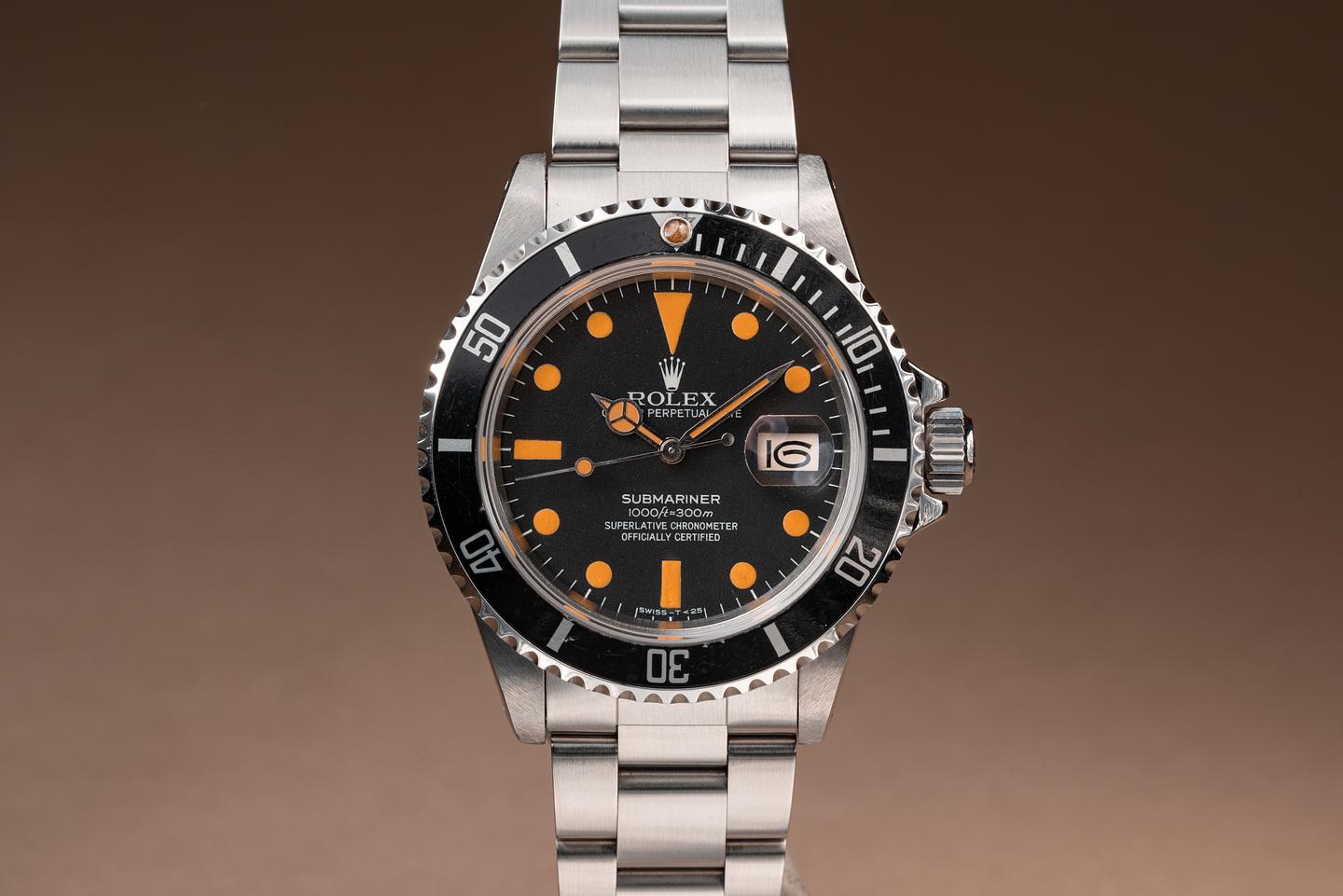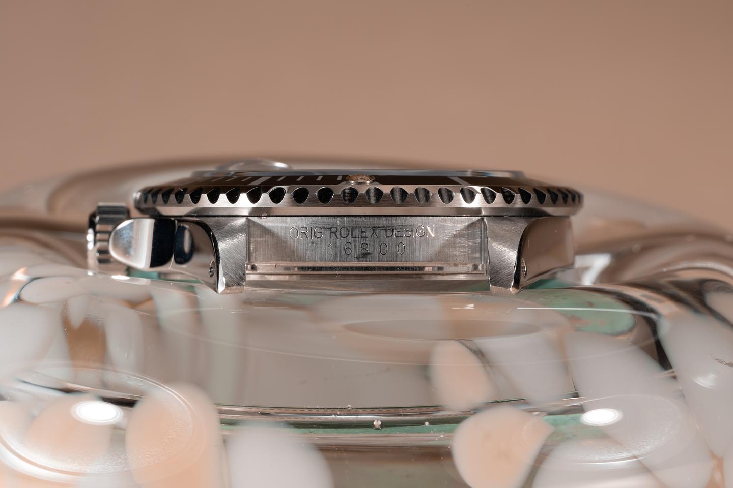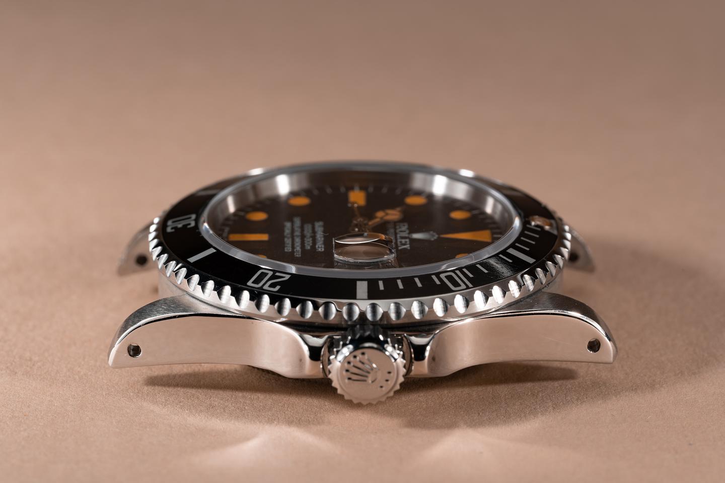 Case: The previously polished case is excellent showing prominent bevels and only light wear from use. The black bezel insert is also in excellent condition showing only light wear from use.