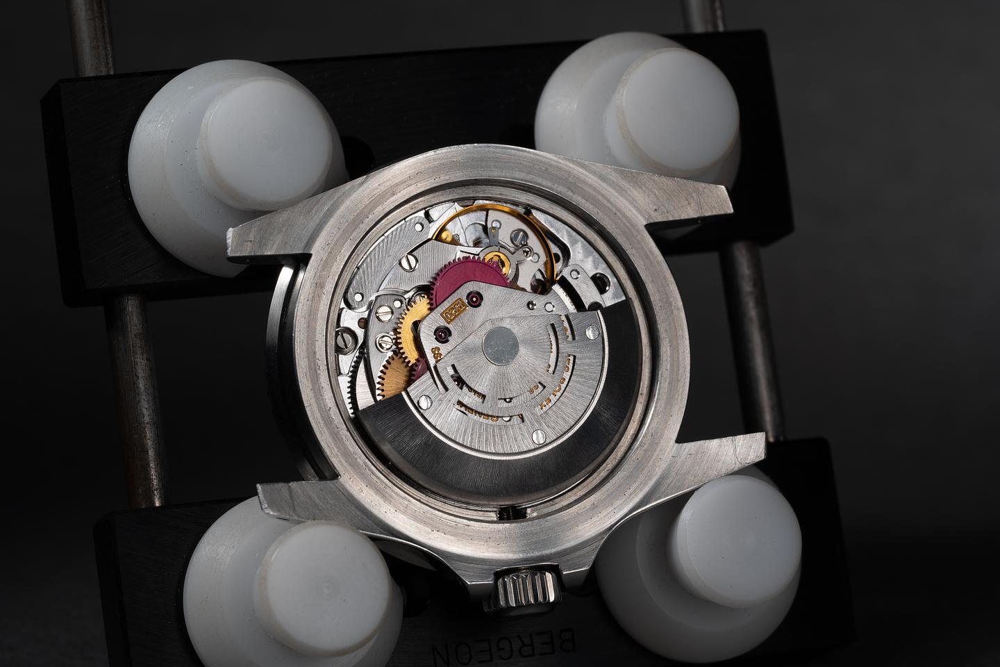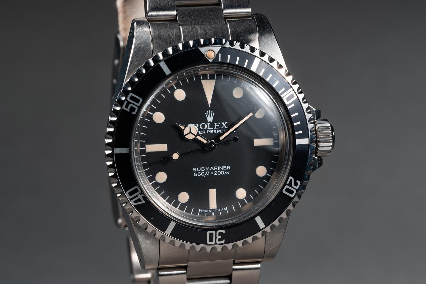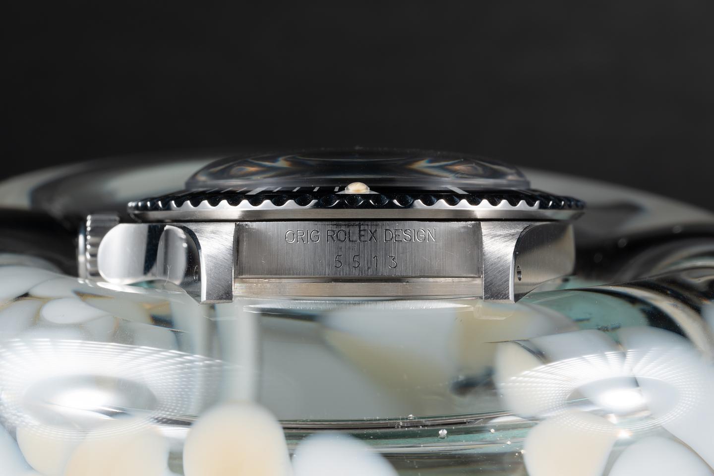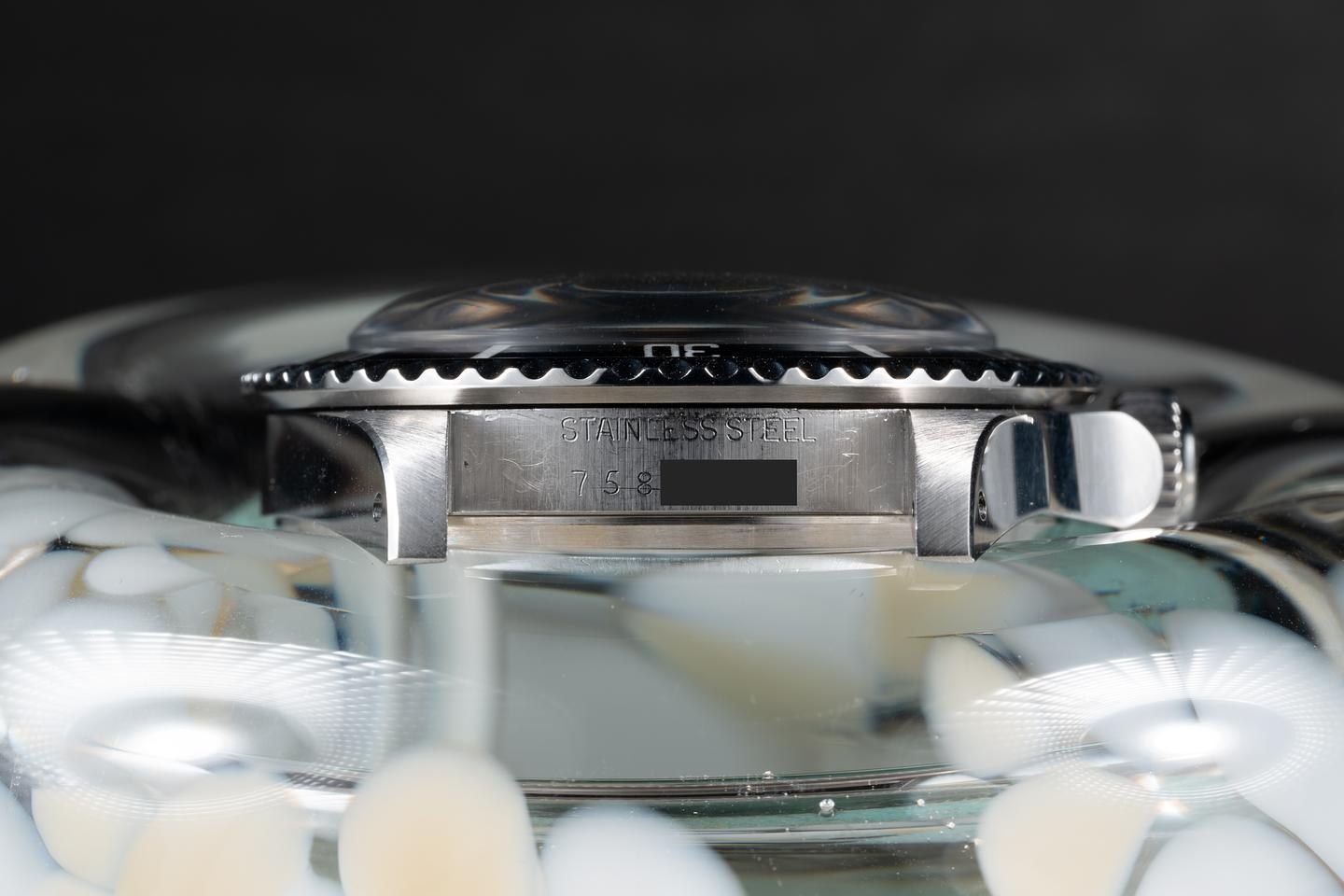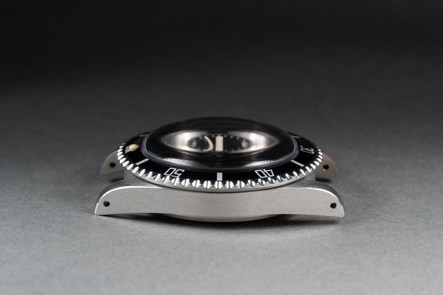 Case: The thick and even case is excellent showing sharp prominent bevels and only very light wear. The black bezel insert is also in excellent condition and has aged to a dark grey tone.