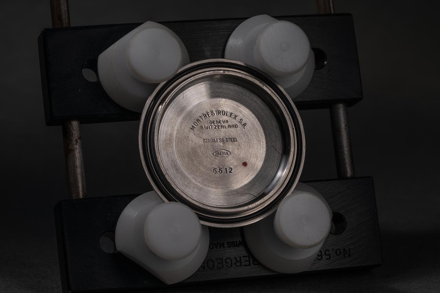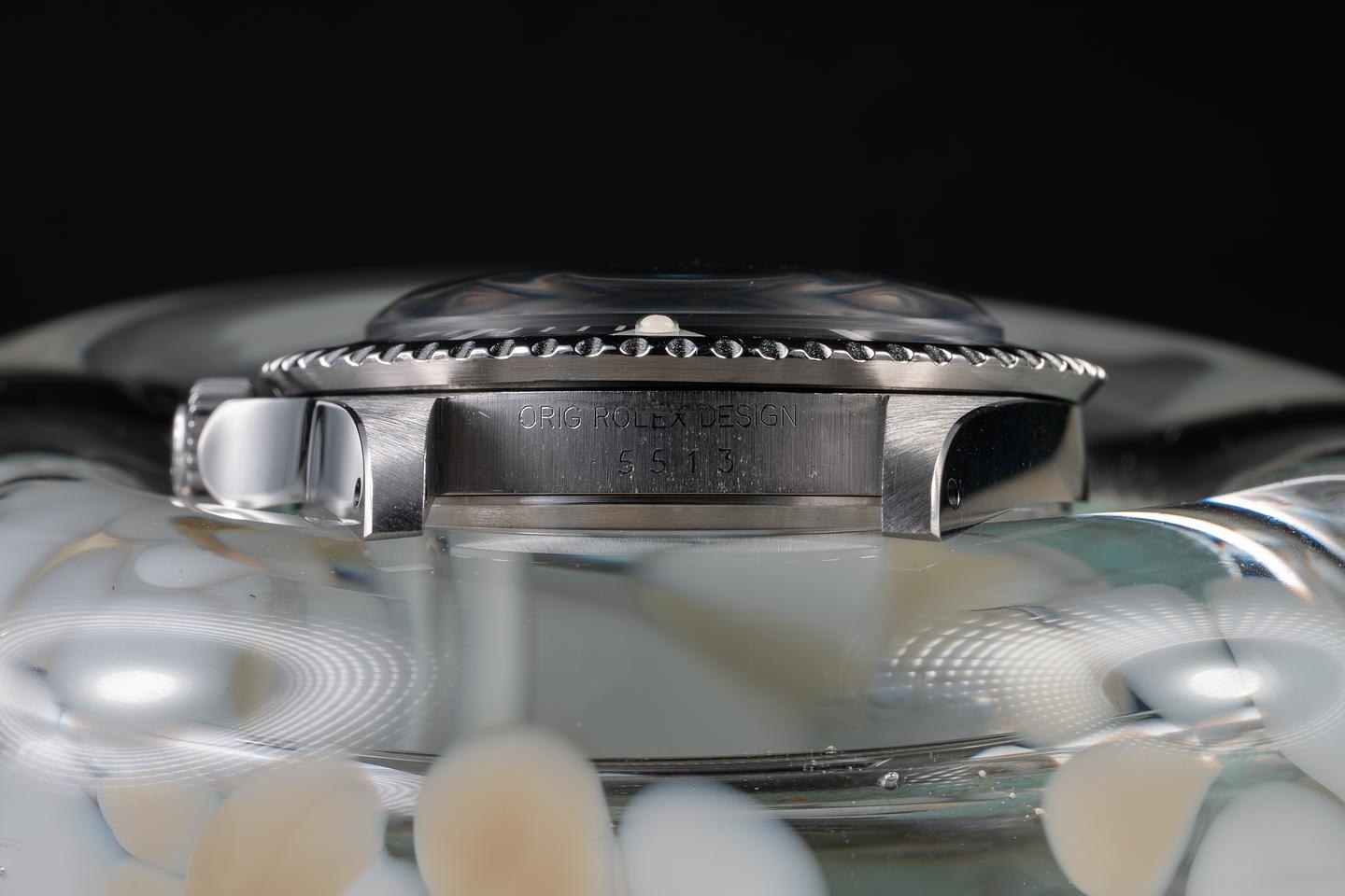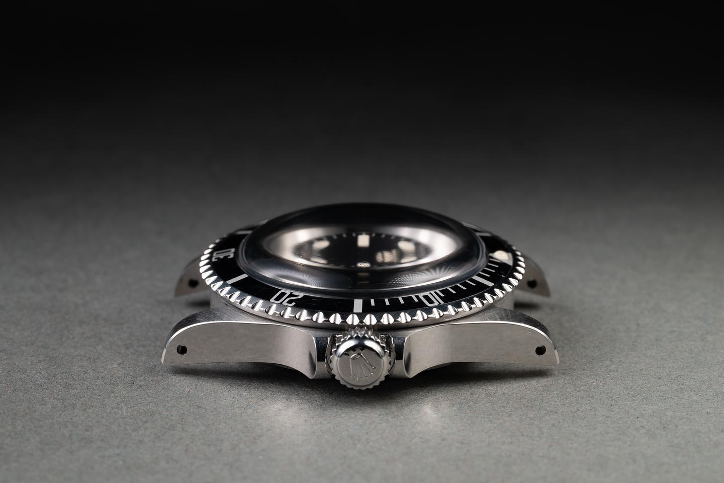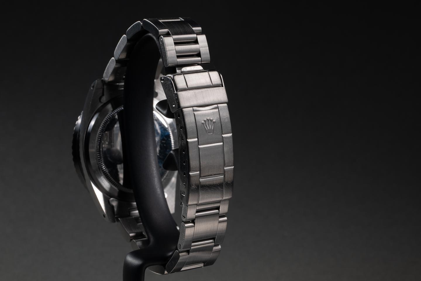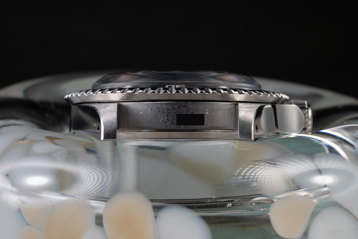 Case: The recently polished case is excellent, showing sharp, prominent bevels and only very light wear from use. The black bezel insert is also in excellent condition, showing only light wear from use.