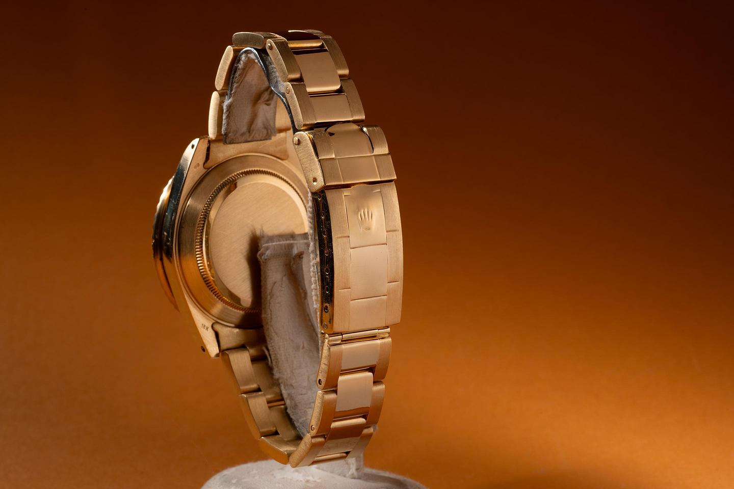 Bracelet: The 11 link 18K yellow-gold Oyster bracelet is excellent showing no perceivable stretch. The clasp is stamped with a 1977 date code.