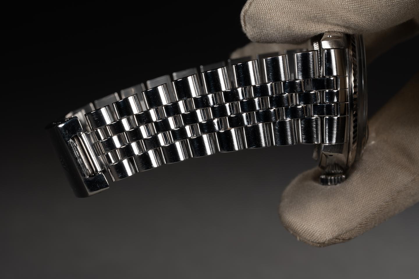 Case: The 36mm case is excellent showing average wear from use. The 18k white gold fluted bezel is also in excellent condition showing only light wear from use.