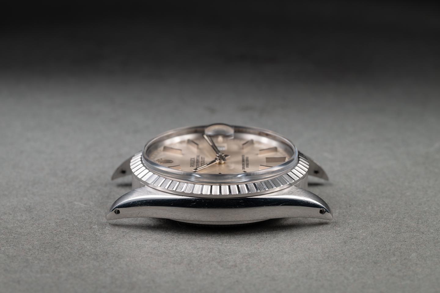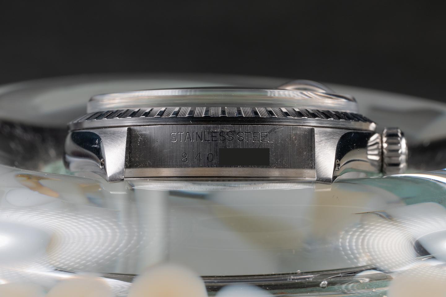 Case: The previously polished case is excellent, showing only light wear from use. The stainless engine-turned bezel is also in excellent condition, showing only light wear from use.