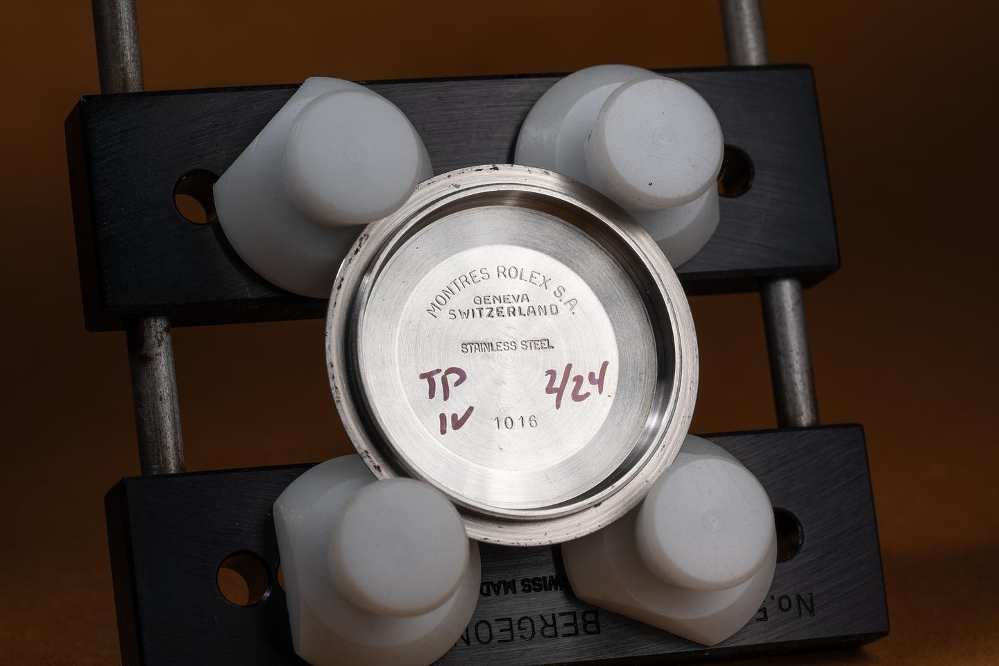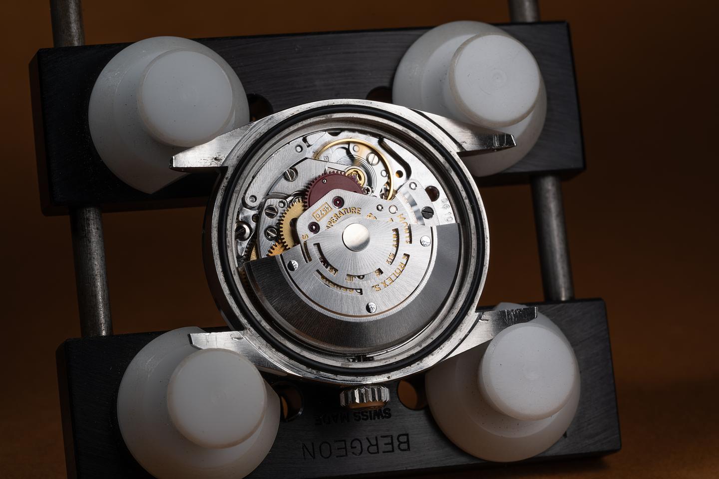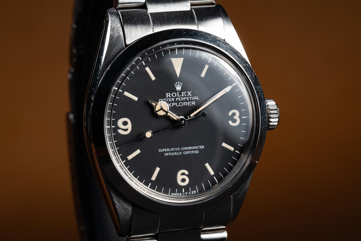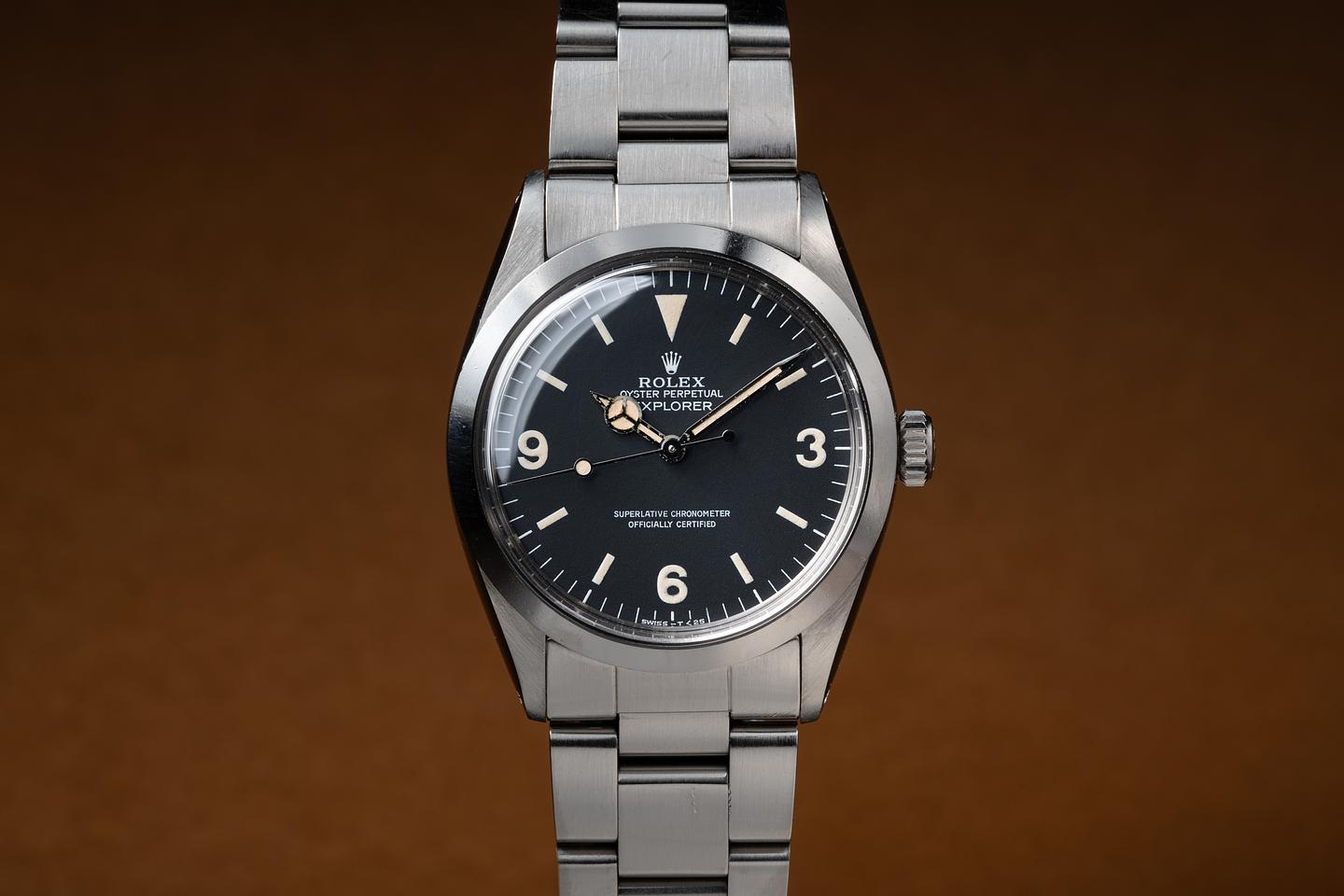 Notes: The remarkably clean dial with its warm, clean, creamy lume plots sits inside a razor sharp and likely unpolished case.