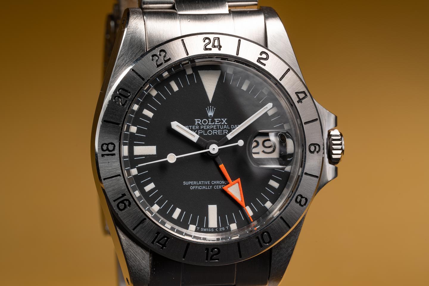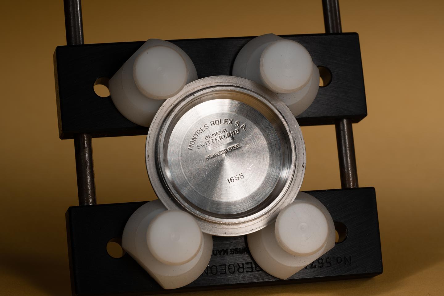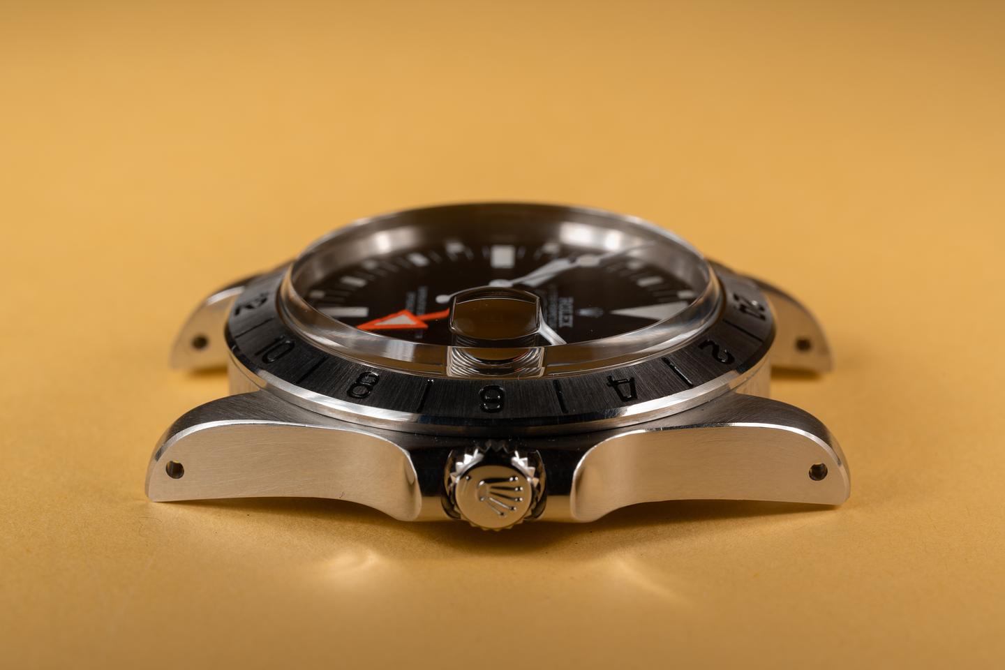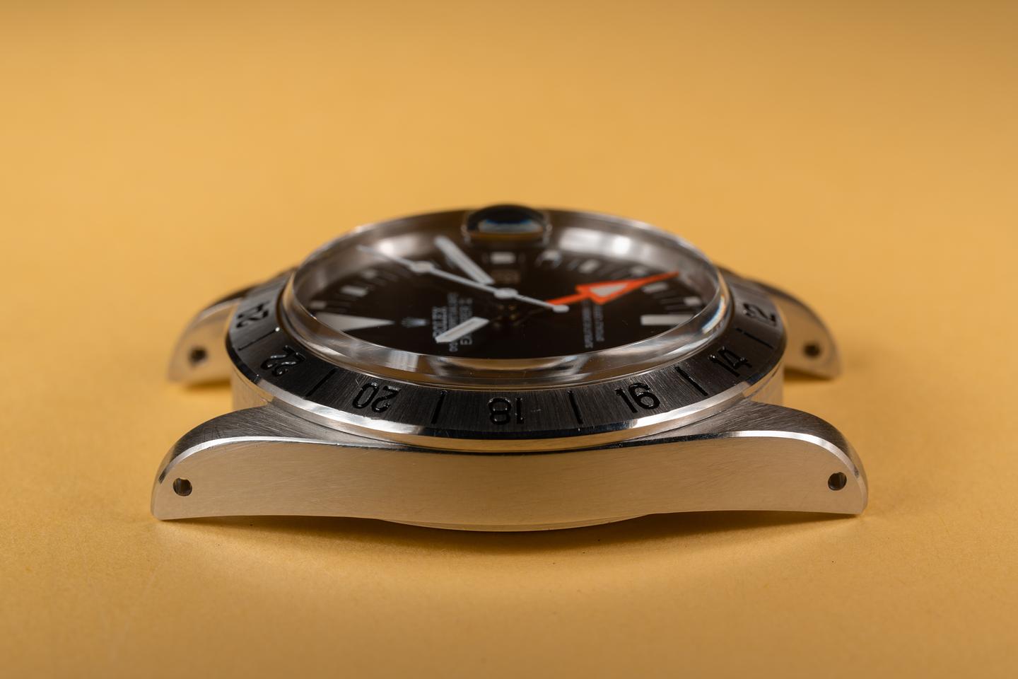 Case: The recently polished case is excellent showing sharp prominent bevels and only light wear from use. The stainless bezel is also in excellent condition showing only very light wear from use.