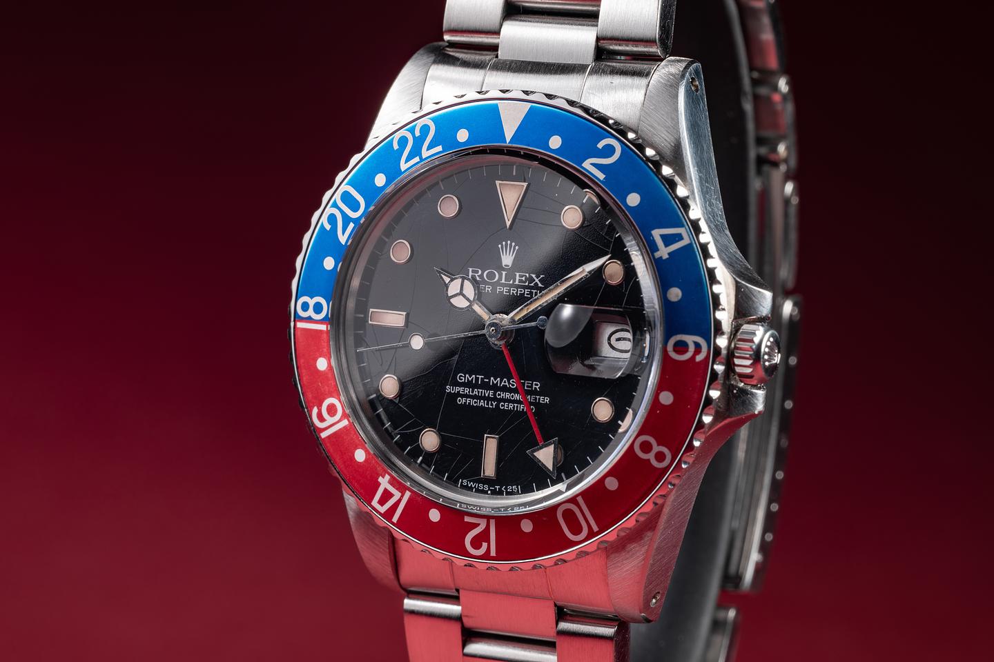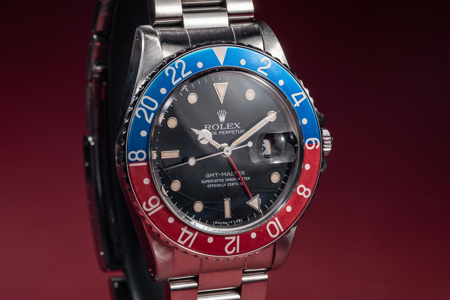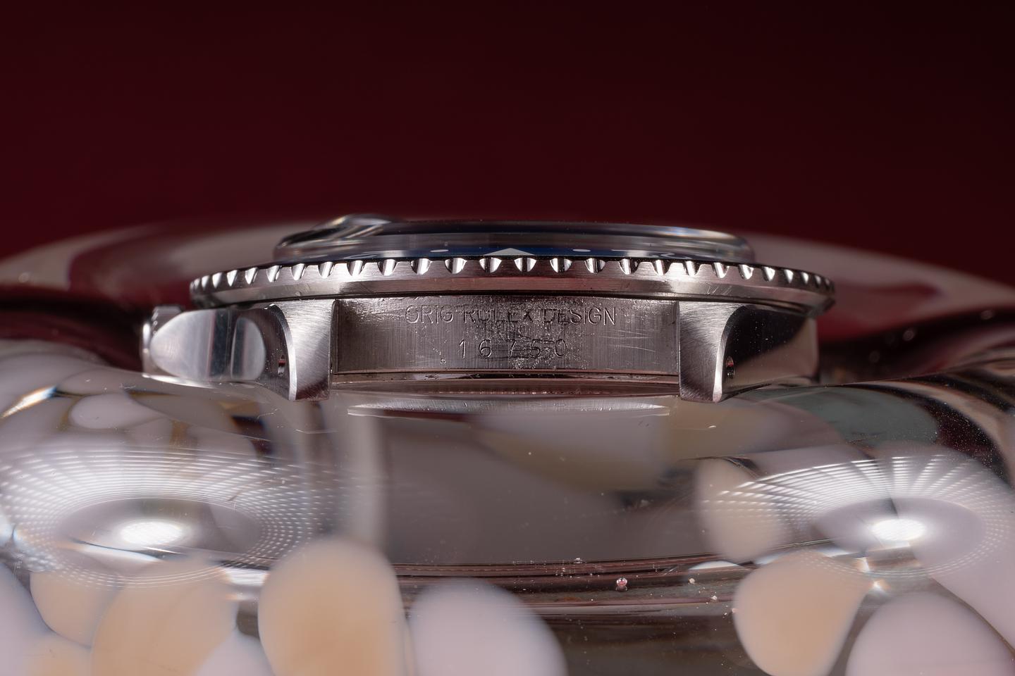 Case: The recently polished case is excellent, showing sharp, prominent bevels and only very light wear. The blue and red "Pepsi" bezel insert is also in excellent condition, showing some light fading to both portions of the insert.
