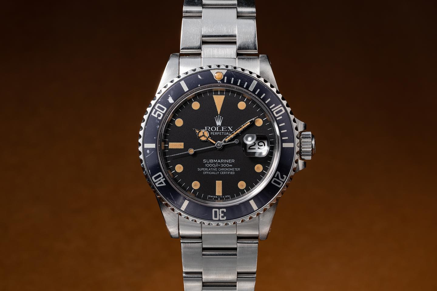 Dial: The matte black dial is excellent, showing little if any wear for its age. The lume has aged to a warm, vibrant goldenrod hue, and the hands match perfectly.