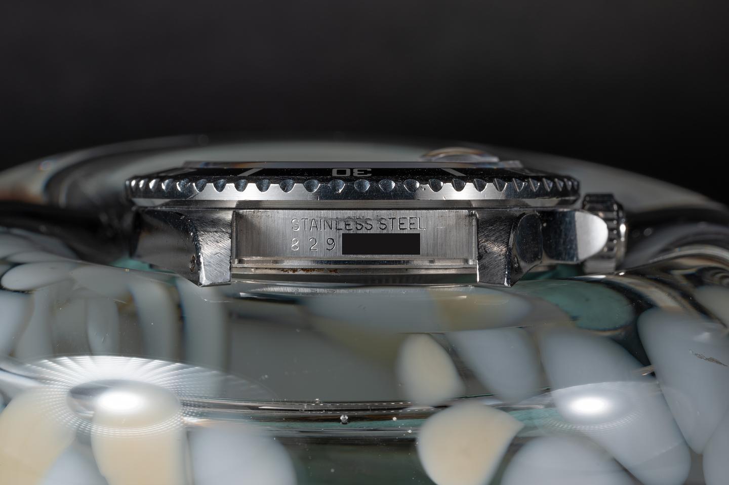 Case: The unpolished case is excellent showing prominent factory bevels and average wear from use. The black bezel insert is also in excellent condition showing only light wear from use.
